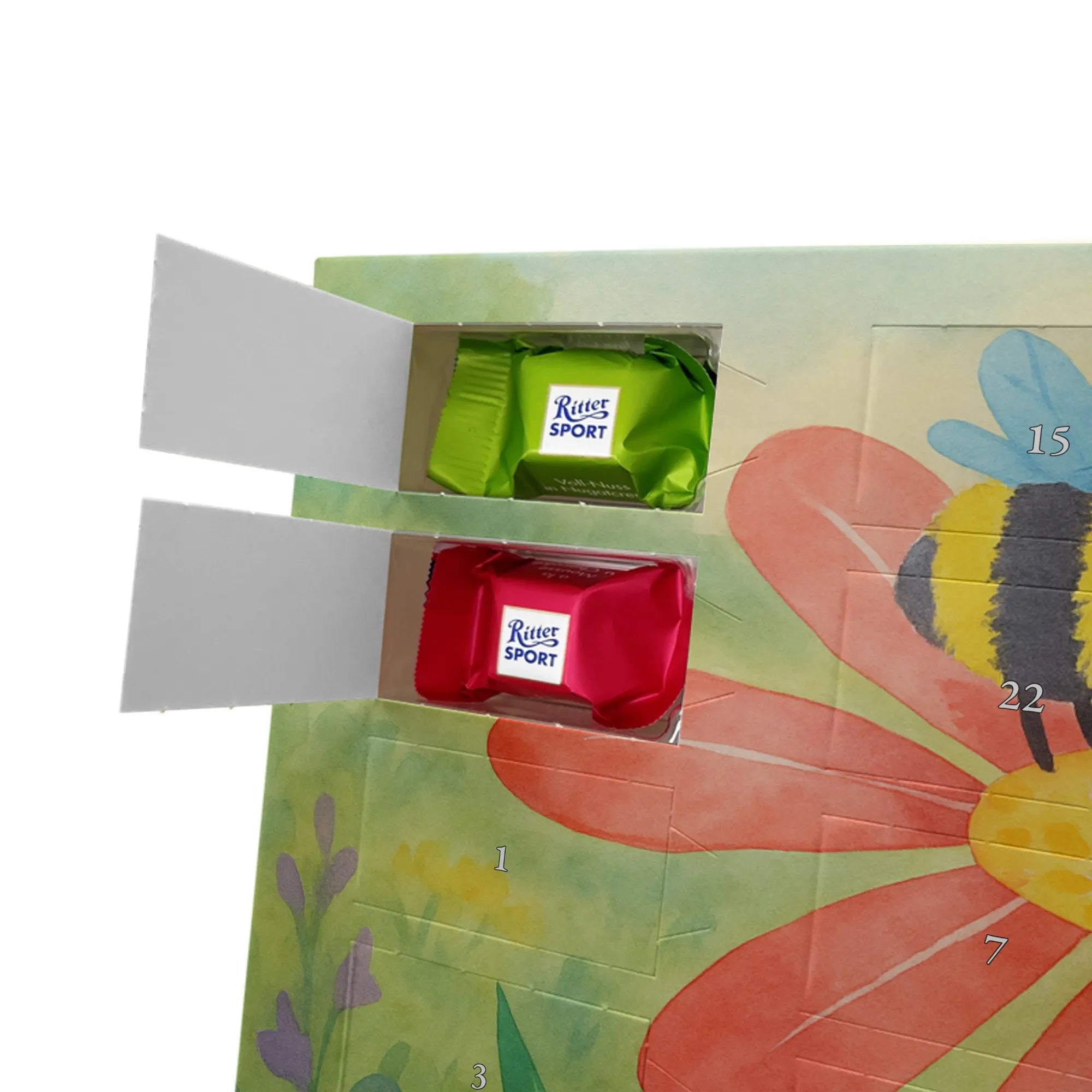 🐼 24 Türchen gefüllt mit Ritter Sport Schokowürfeln – perfekte Adventsüberraschungen.
