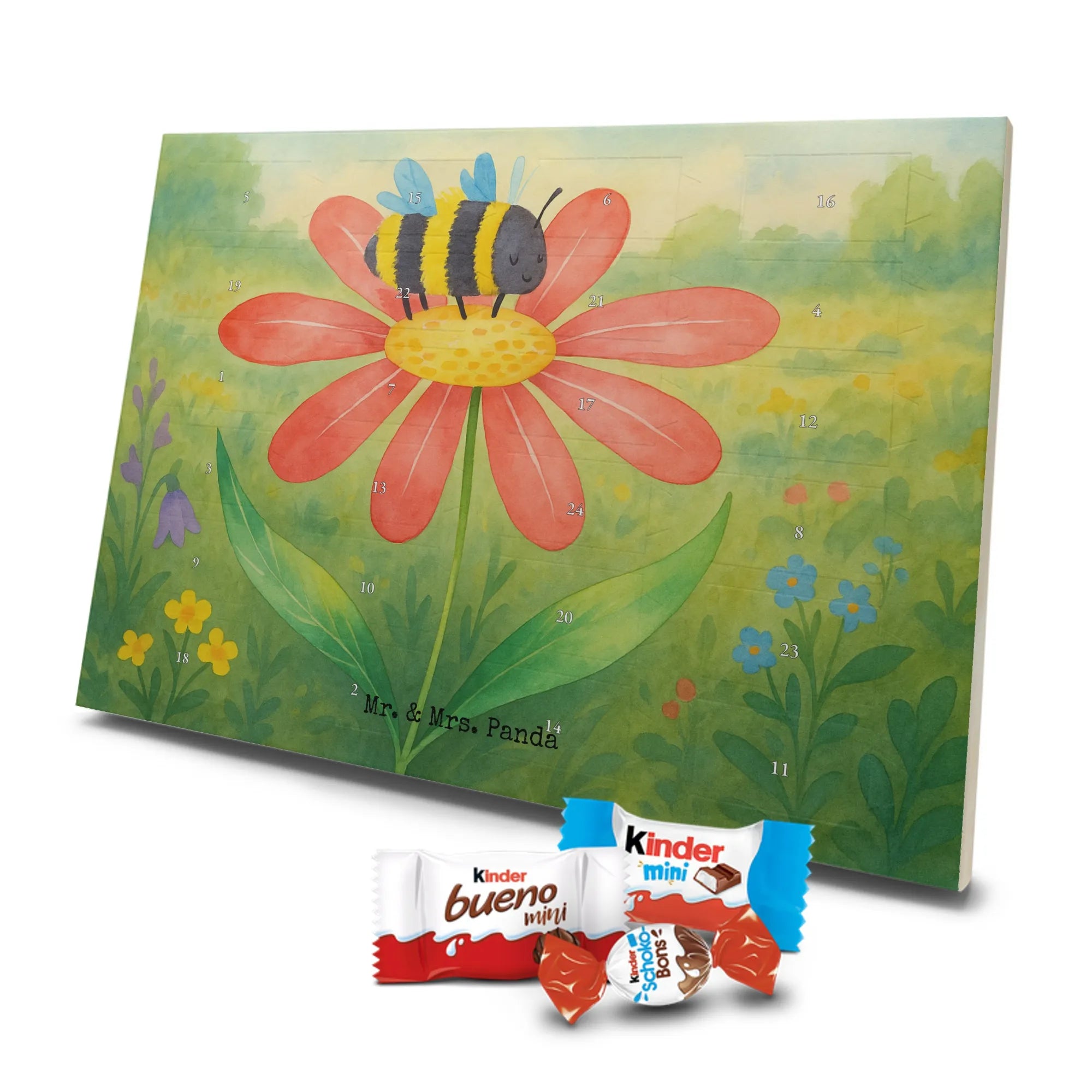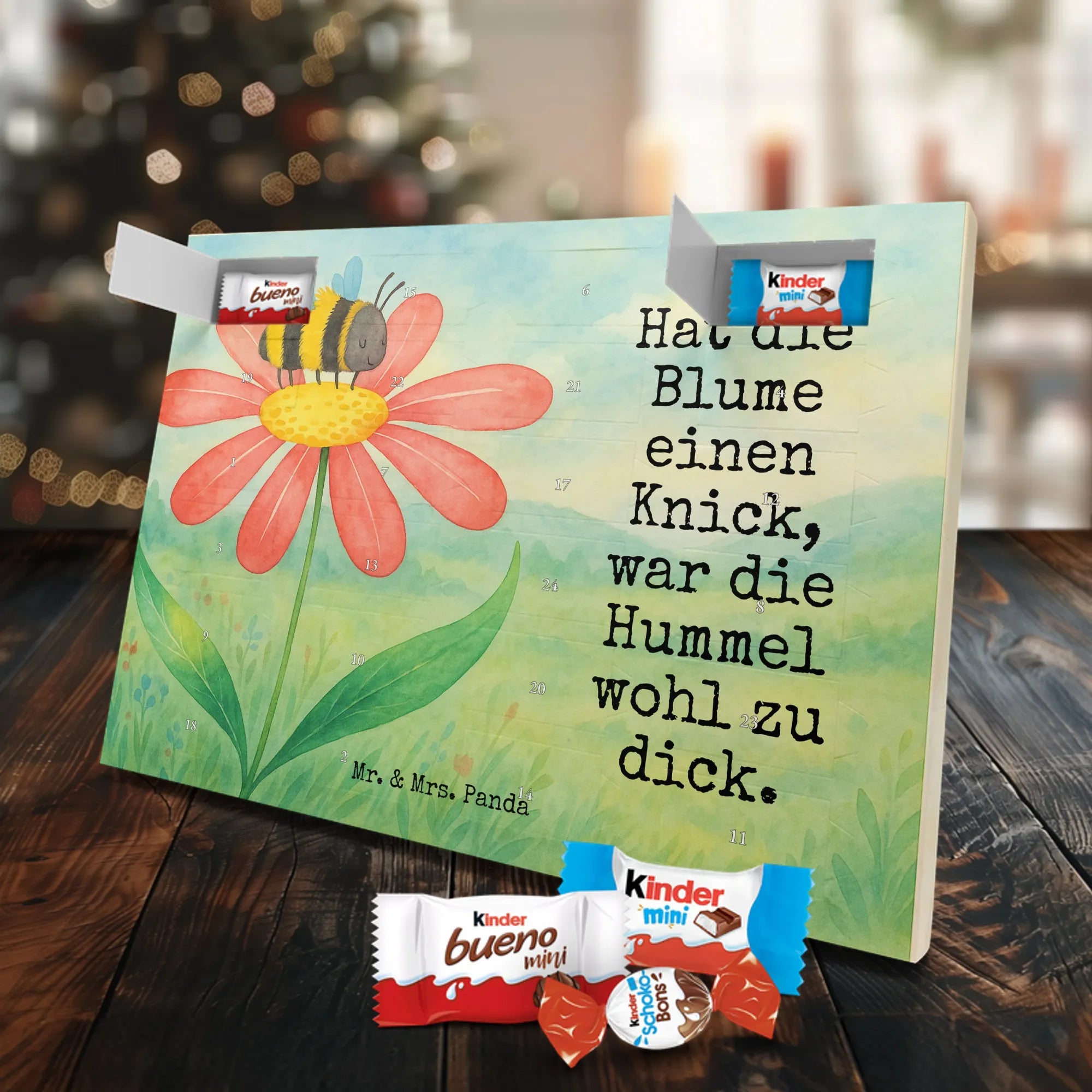 Adventskalender mit Schokolade – liebevoll gestaltet von Mr. & Mrs. Panda. Dieser niedliche Kalender ist bedruckt mit wunderschönen Motiven & Sprüchen von Mr. & Mrs. Panda und trotzdem nicht personalisierbar. Du bekommst brillante Druckqualität mit seidenmatter Oberflächenveredelung sowie bedruckte Seitenflächen, die dem Kalender ein hochwertiges Finish verleihen. Maße: 355 mm x 245 mm x 11 mm. Ein tolles Extra: kann aufgehängt oder aufgestellt werden, sodass du ihn flexibel platzieren kannst. Gefüllt mit Markenname Schokolade: Adventskalender gefüllt mit kinder® Schokolade. Inhalt: kinder® Schoko-Bons, kinder® Bueno mini und kinder® Schokolade mini. Die 24 Türchen sind liebevoll befüllt und sorgen jeden Tag für ein Lächeln – ideal für Kinder, Paare oder als kleines Geschenk für Freunde. Robust und dekorativ zugleich, bringt dieser Adventskalender süße Vorfreude in dein Zuhause. Verschenke oder genieße eine adventliche Zeit voller kleiner, schokoladiger Überraschungen!