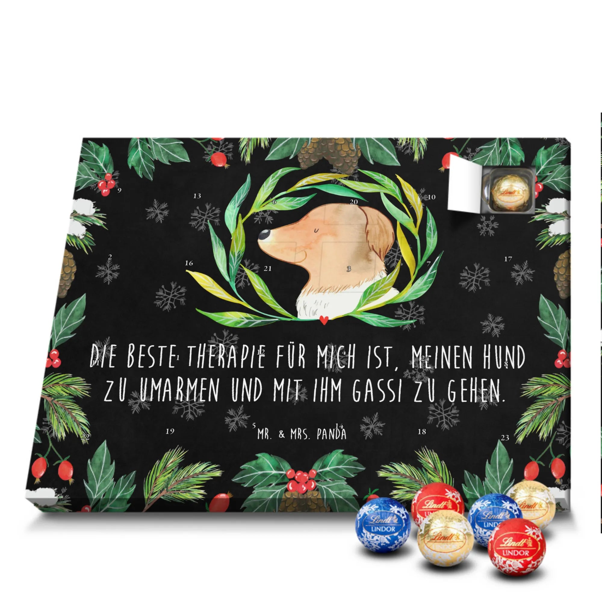 🐼 Schoko Adventskalender mit Lindt Lindor, 24 Kugeln, seidenmatter Druck, nicht personalisierbar.