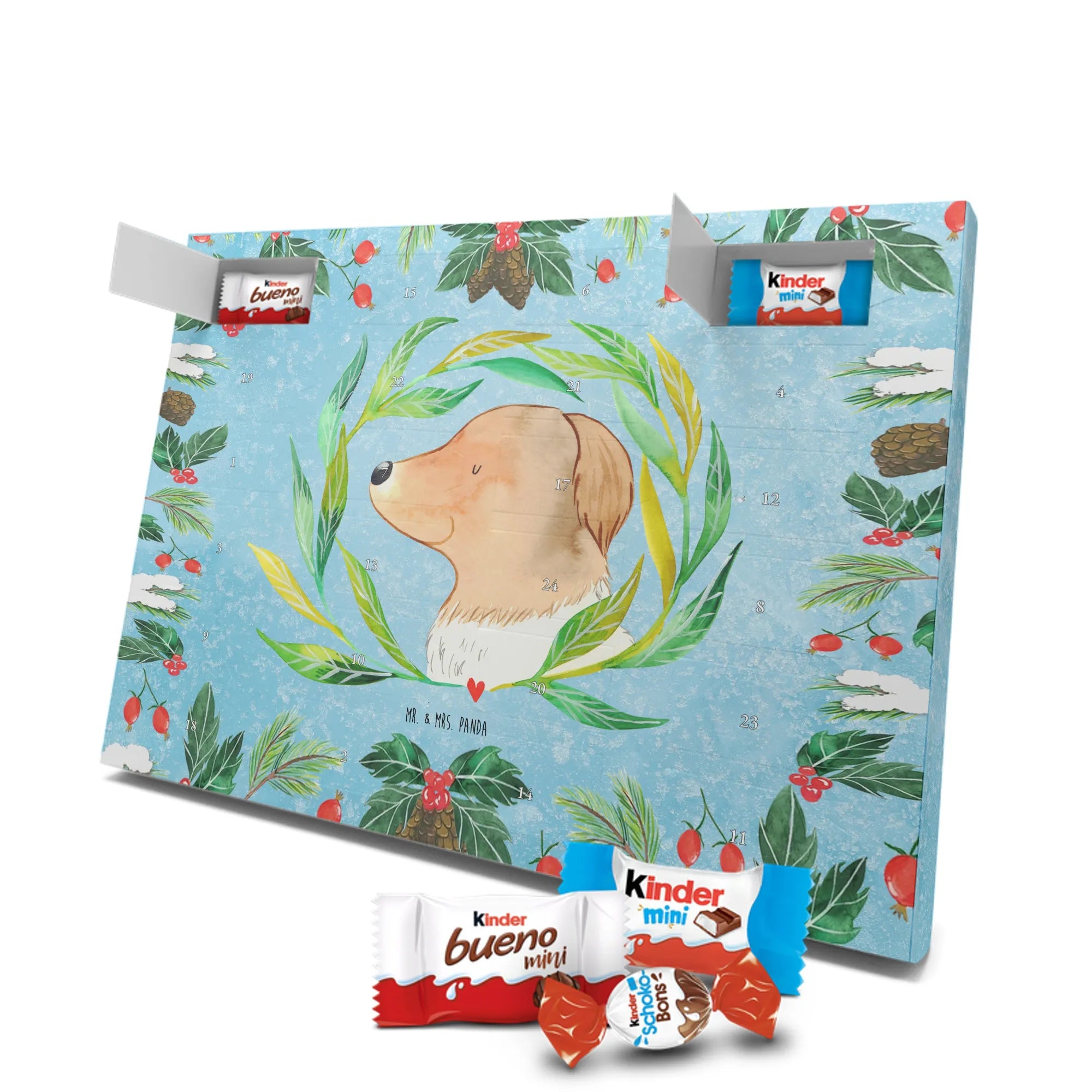 Schoko Adventskalender von Mr. & Mrs. Panda – die charmante Art, sich oder anderen die Adventszeit zu versüßen. Der Kalender ist bedruckt mit wunderschönen Motiven & Sprüchen von Mr. & Mrs. Panda und nicht personalisierbar. Wir legen Wert auf brillante Druckqualität mit seidenmatter Oberflächenveredelung sowie auf bedruckte Seitenflächen für ein stimmiges Gesamtbild. Maße: 355 mm x 245 mm x 11 mm. Besonders praktisch: kann aufgehängt oder aufgestellt werden und passt so in jede Wohnung. Gefüllt mit Markenname Schokolade: Adventskalender gefüllt mit kinder® Schokolade. Inhalt: kinder® Schoko-Bons, kinder® Bueno mini und kinder® Schokolade mini. Die 24 Türchen sind mit kleinen Schoko-Überraschungen bestückt und schaffen jeden Tag Vorfreude. Ob als Geschenk für Kinder, Partner oder als nette Aufmerksamkeit für Kolleginnen und Kollegen – dieser Kalender macht Freude. Robust, schön gestaltet und sofort einsatzbereit für die süßeste Zeit des Jahres!