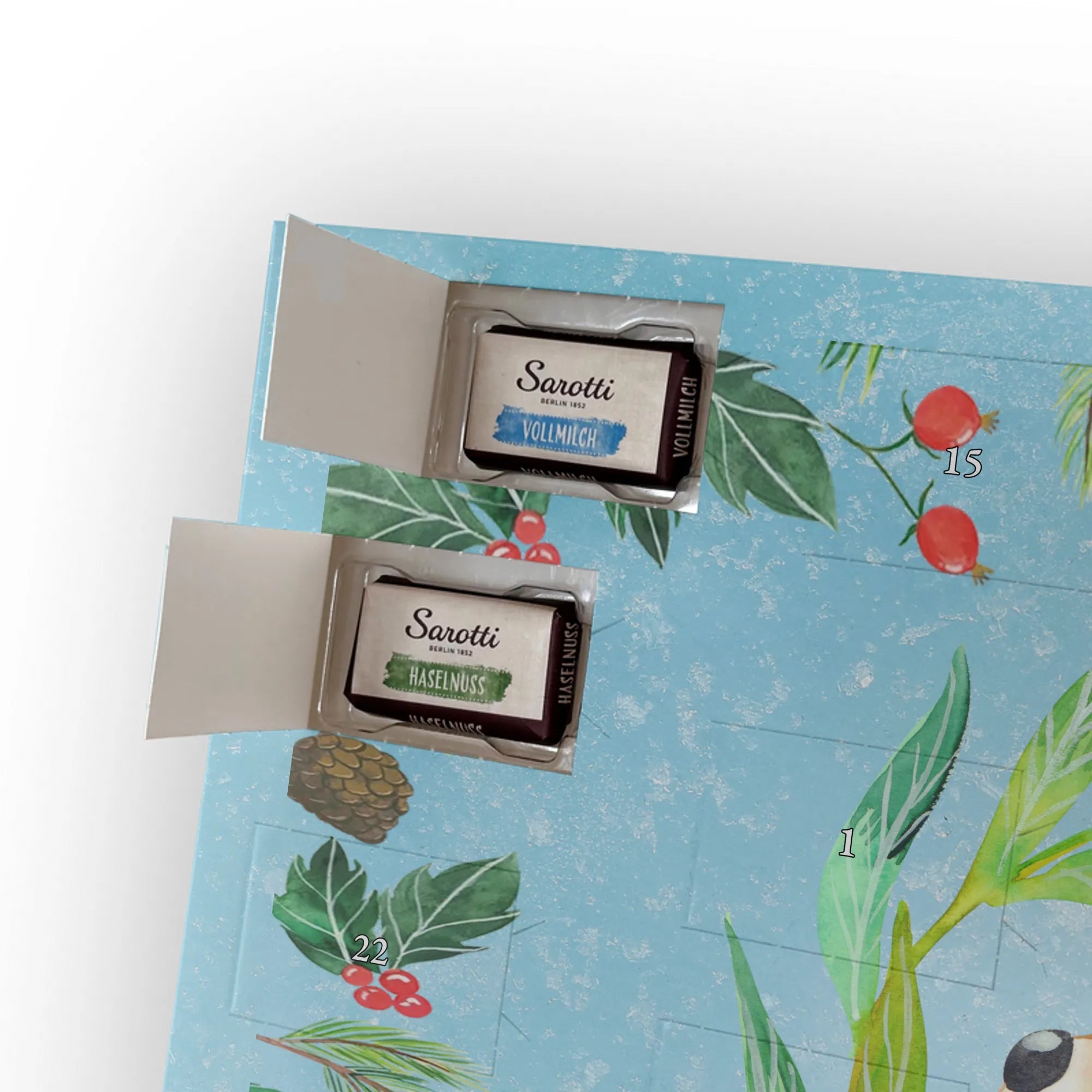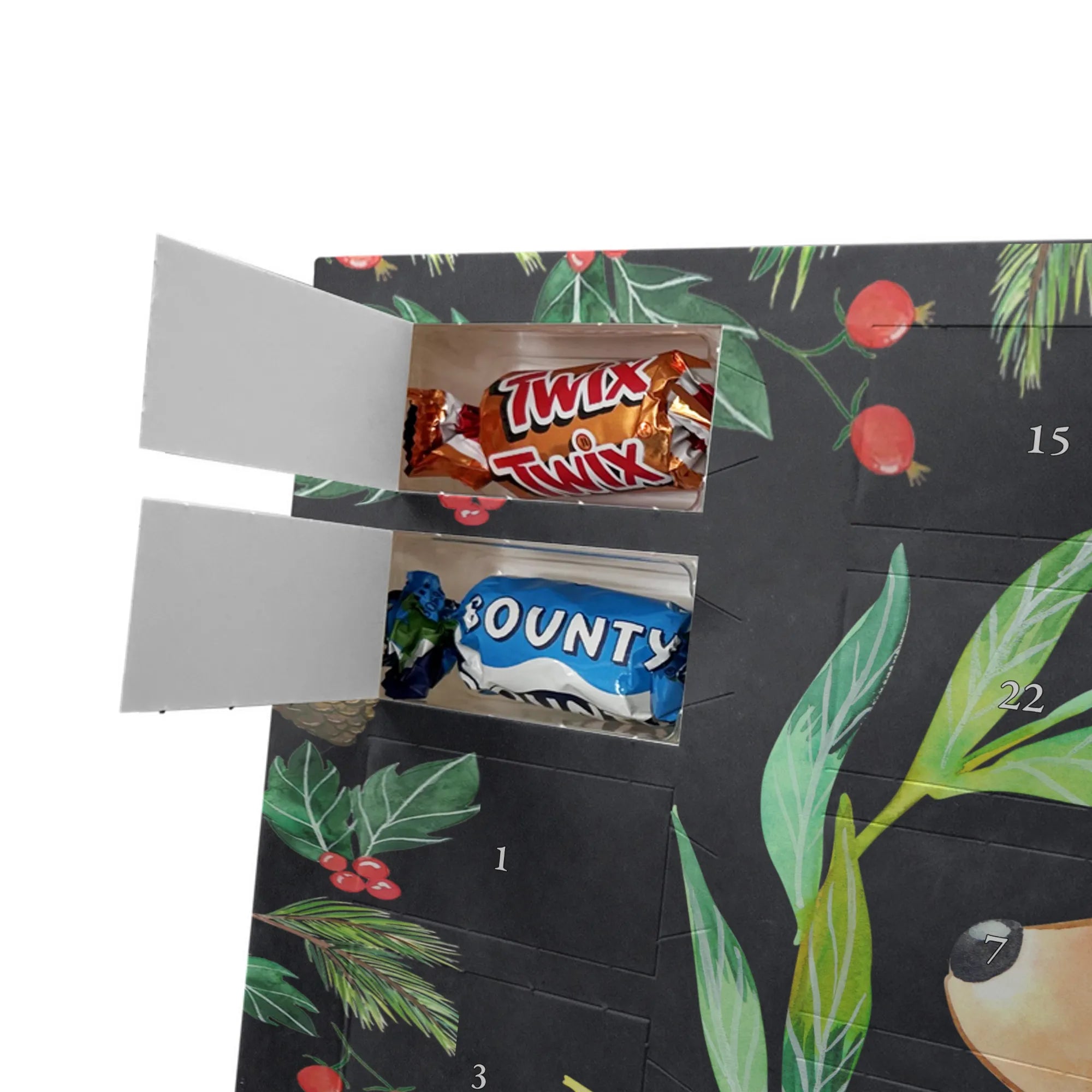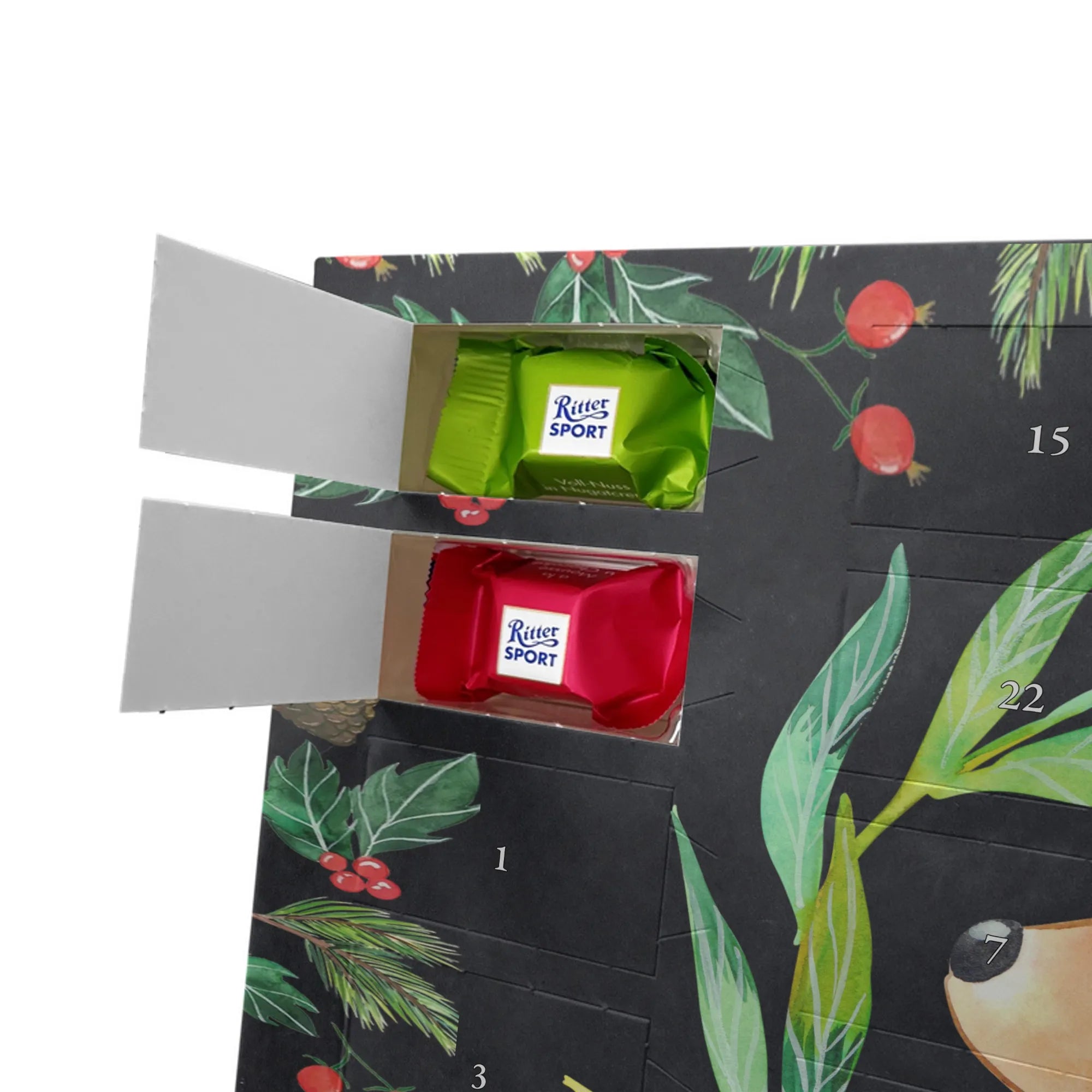 🐼 Schoko-Adventskalender: Liebevolles Design, seidenmatt, brillanter Druck – ein Hingucker.