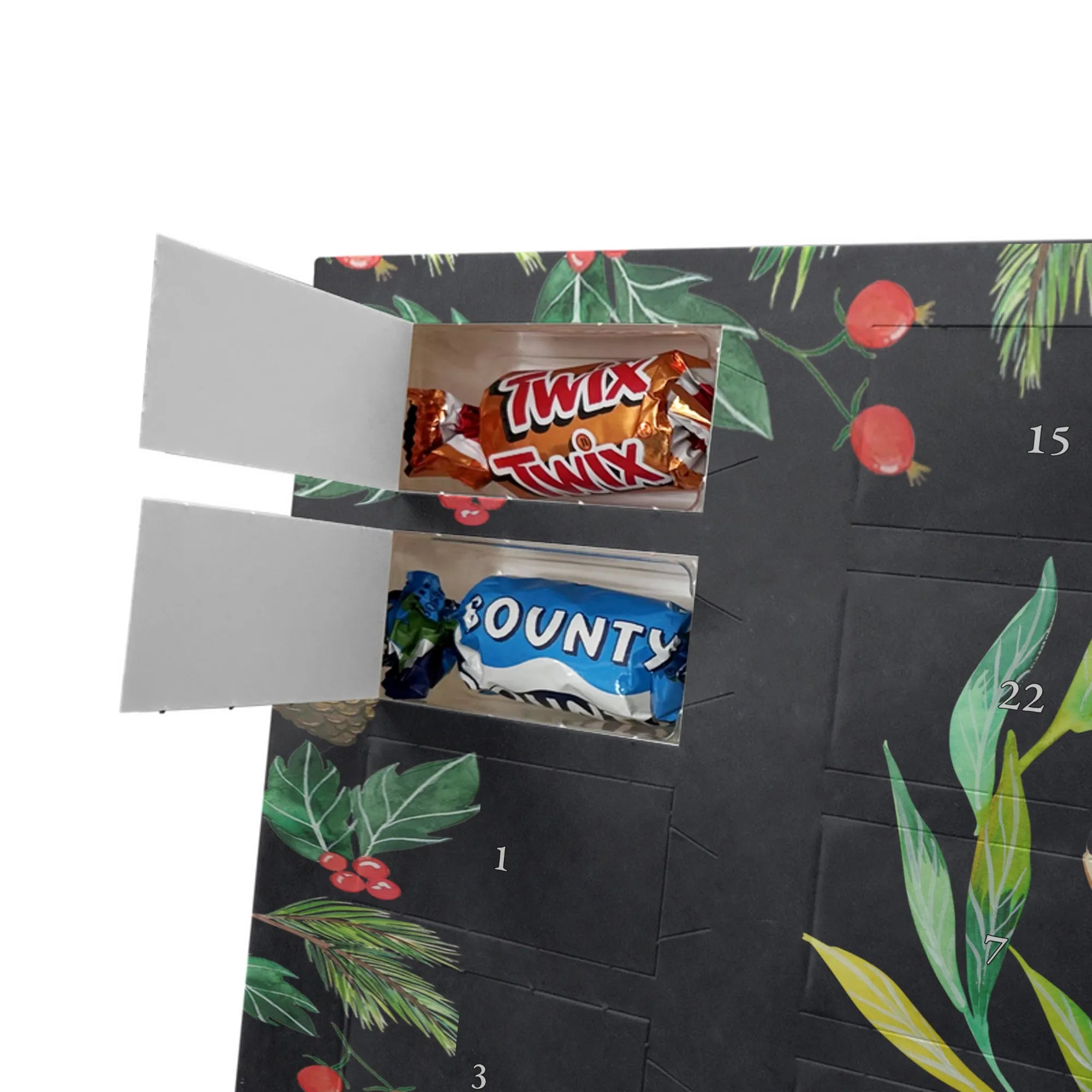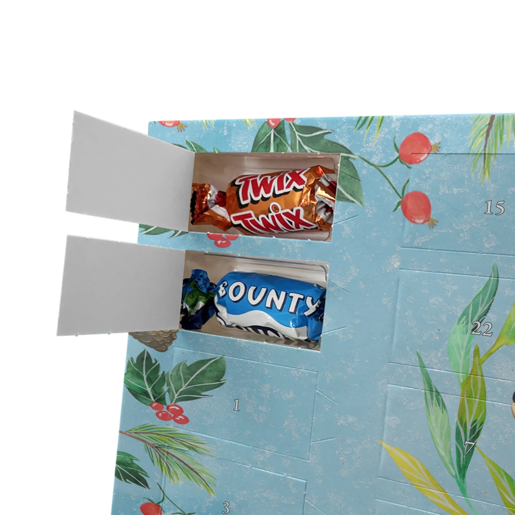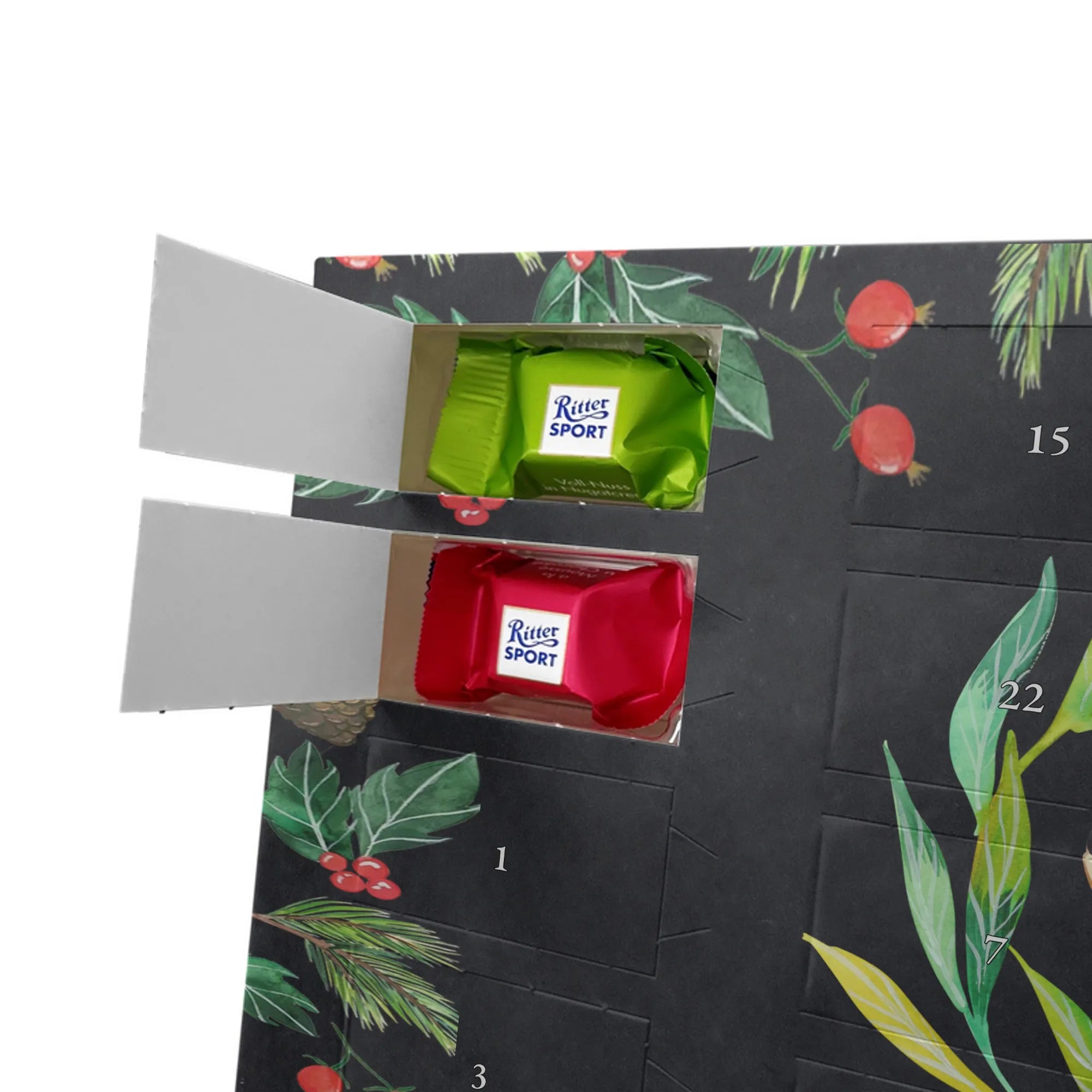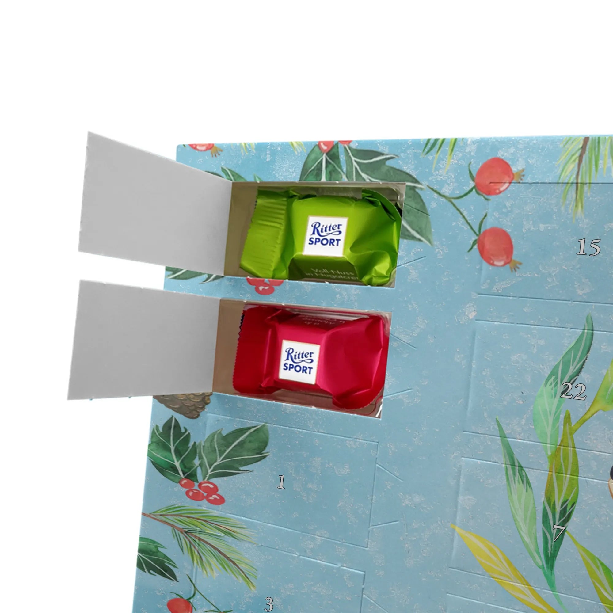 🐼 Schoko-Adventskalender: Liebevolles Design, seidenmatt, brillanter Druck – ein Hingucker.