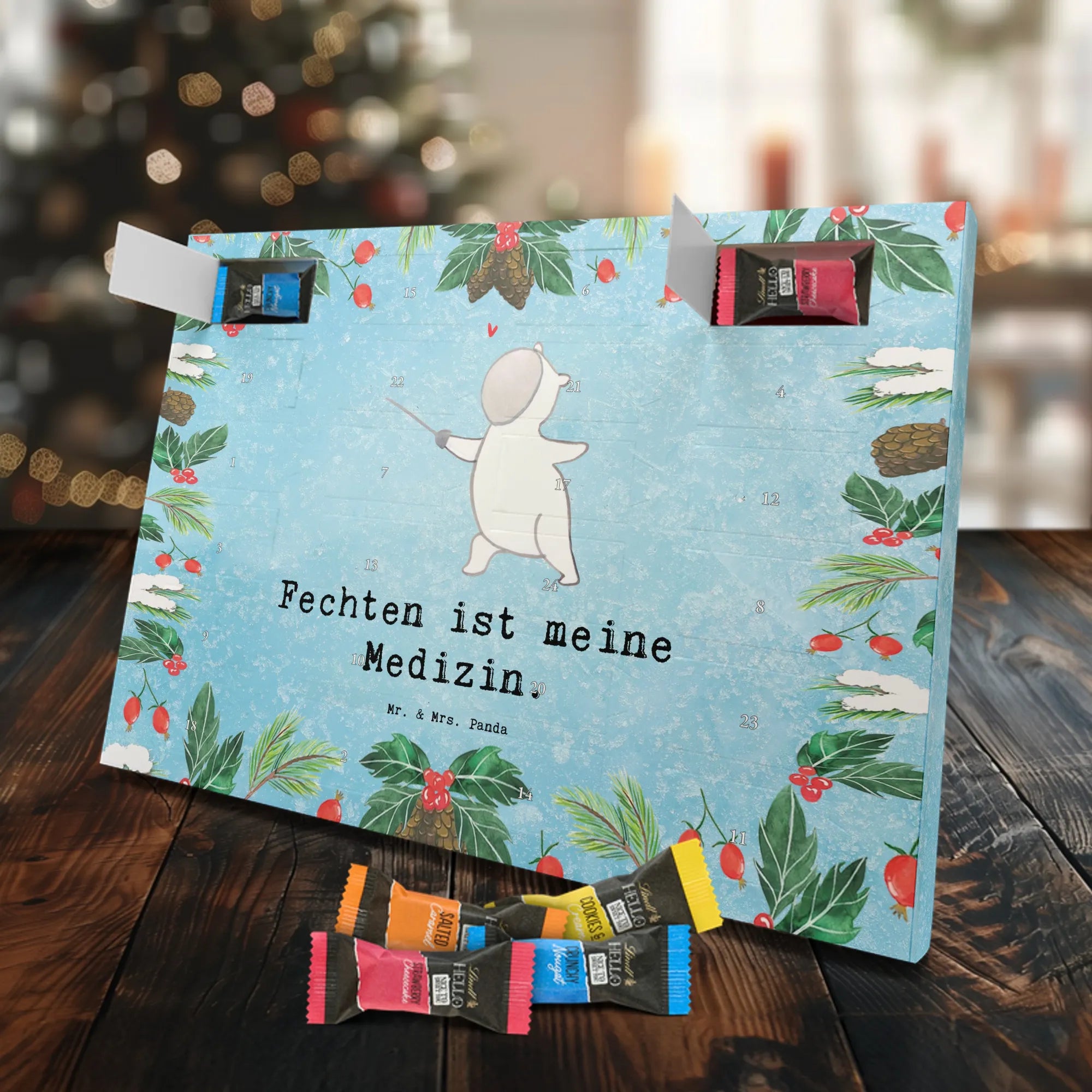 Schoko Adventskalender „Panda Fechten – Fechten ist meine Medizin.“ 🎁🐼 – Ein liebevolles Weihnachtsgeschenk für alle Fechter, Fechtvereine und Sportfans! Dieser Schokoladen Adventskalender von Mr. & Mrs. Panda vereint humorvolle Illustrationen, edle Optik und leckere Schokoladenkugeln in einem wundervollen Geschenk.