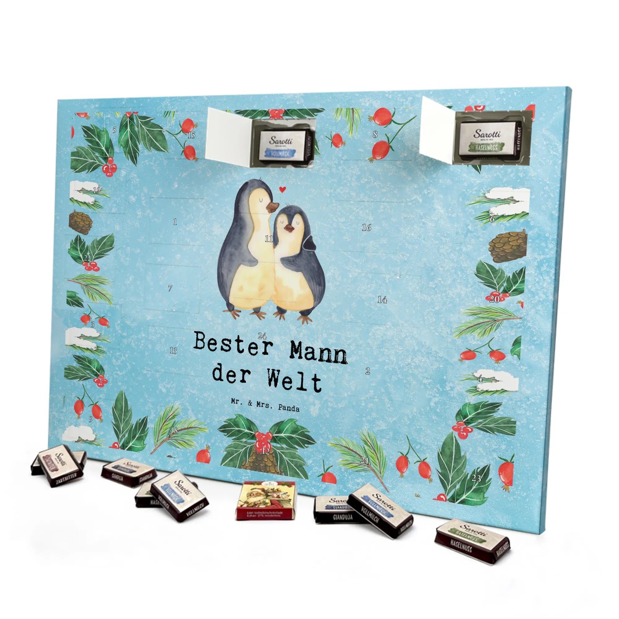 🐼 Schoko Adventskalender mit Mr. & Mrs. Panda Motiven, brillante Druckqualität, nicht personalisierbar.