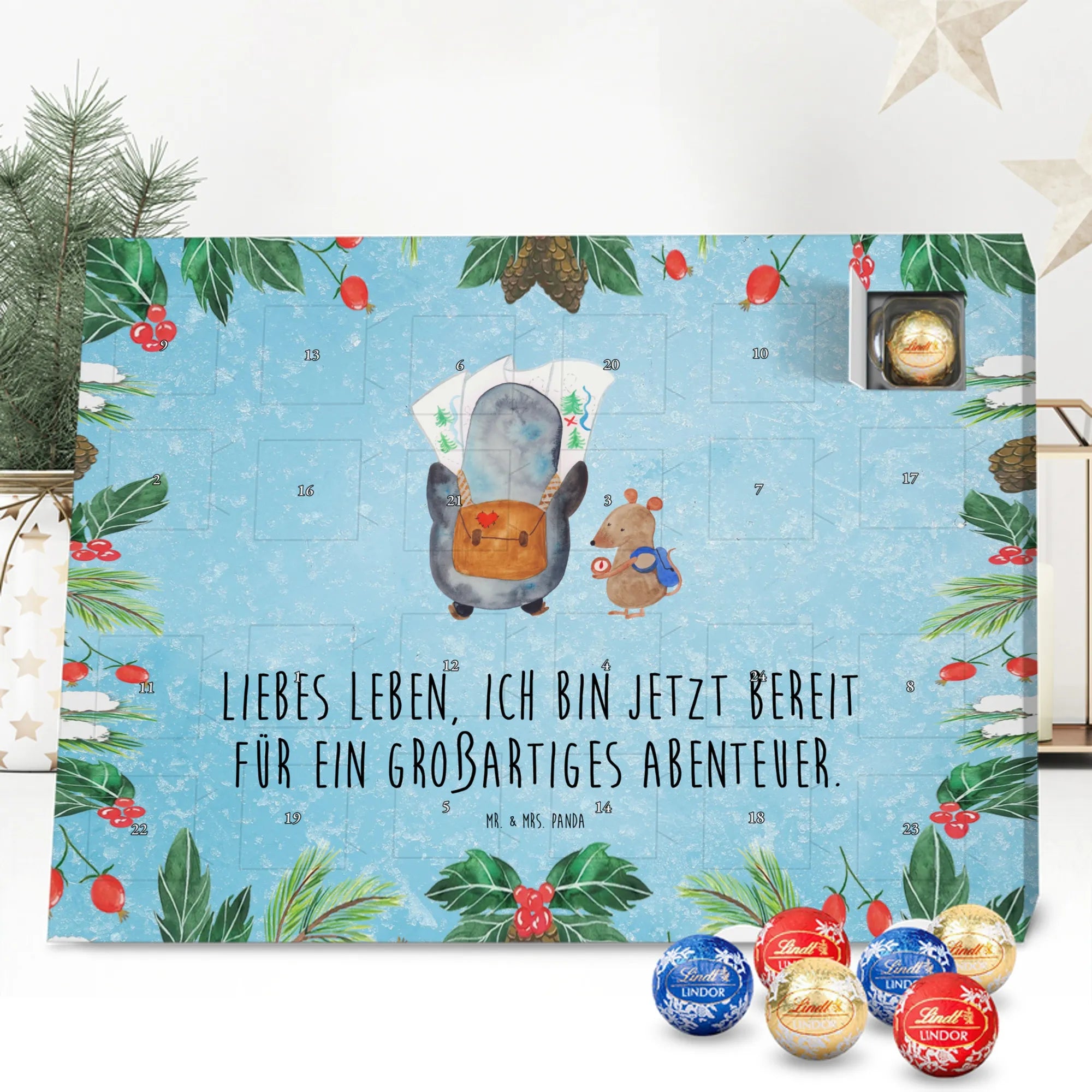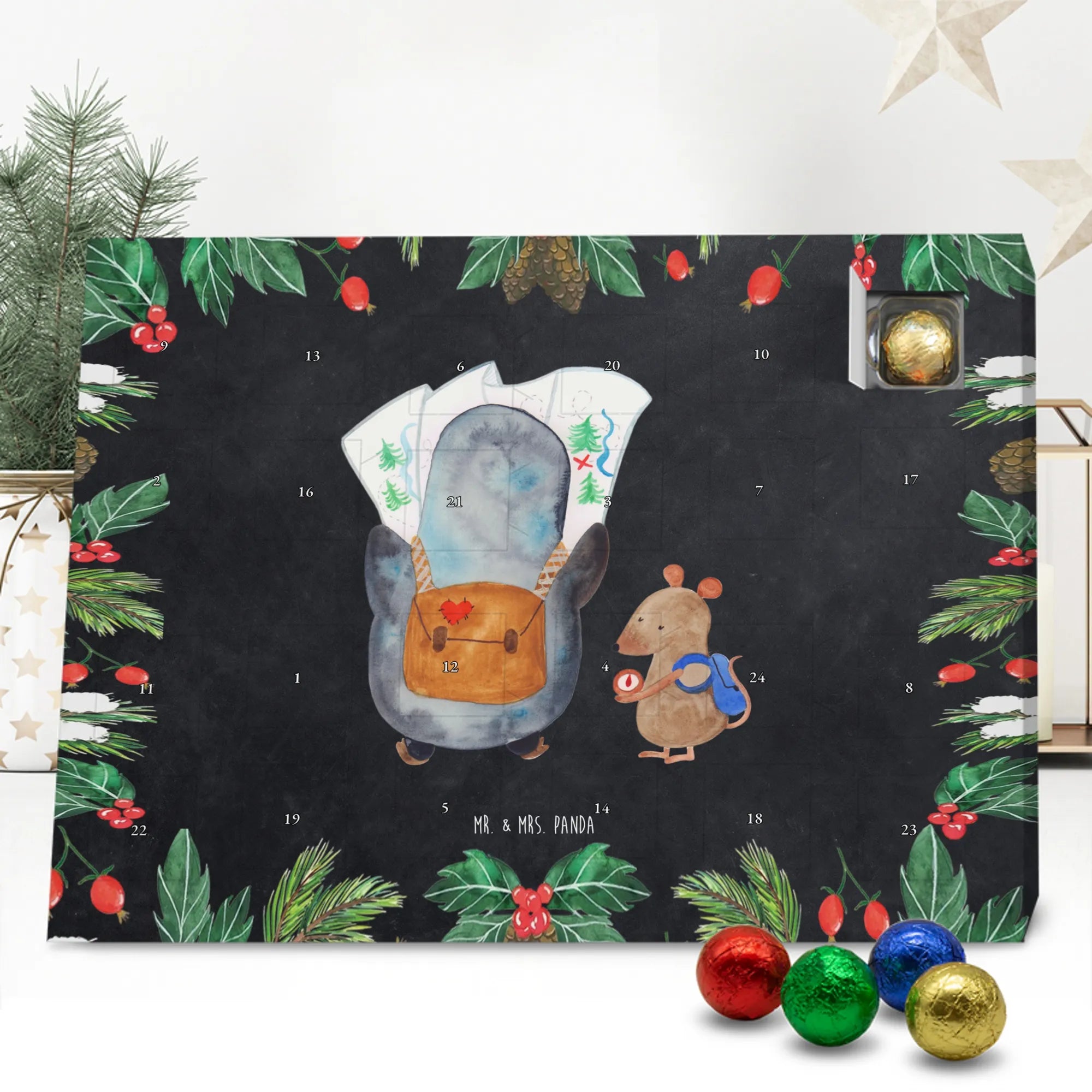 schokokalender Pinguin & Maus Wanderer - Classic - mit Spruch - Eisblau