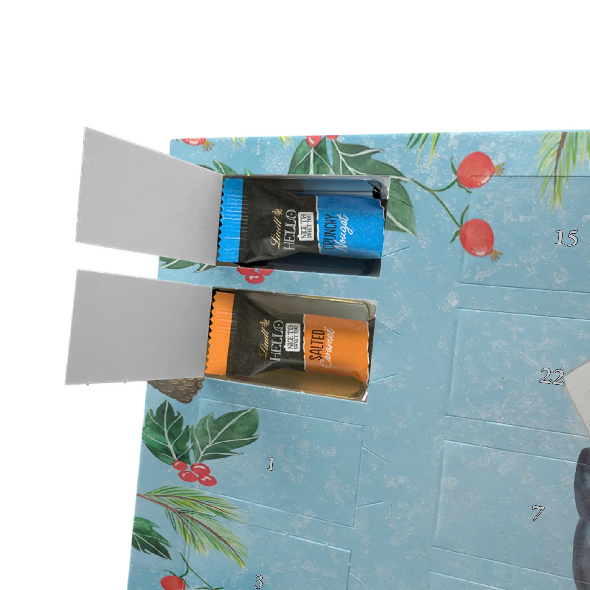 🐼 LINDT HELLO ADVENTSKALENDER: Liebevoll bedruckt, seidenmatte Veredelung, 325×225×27 mm.