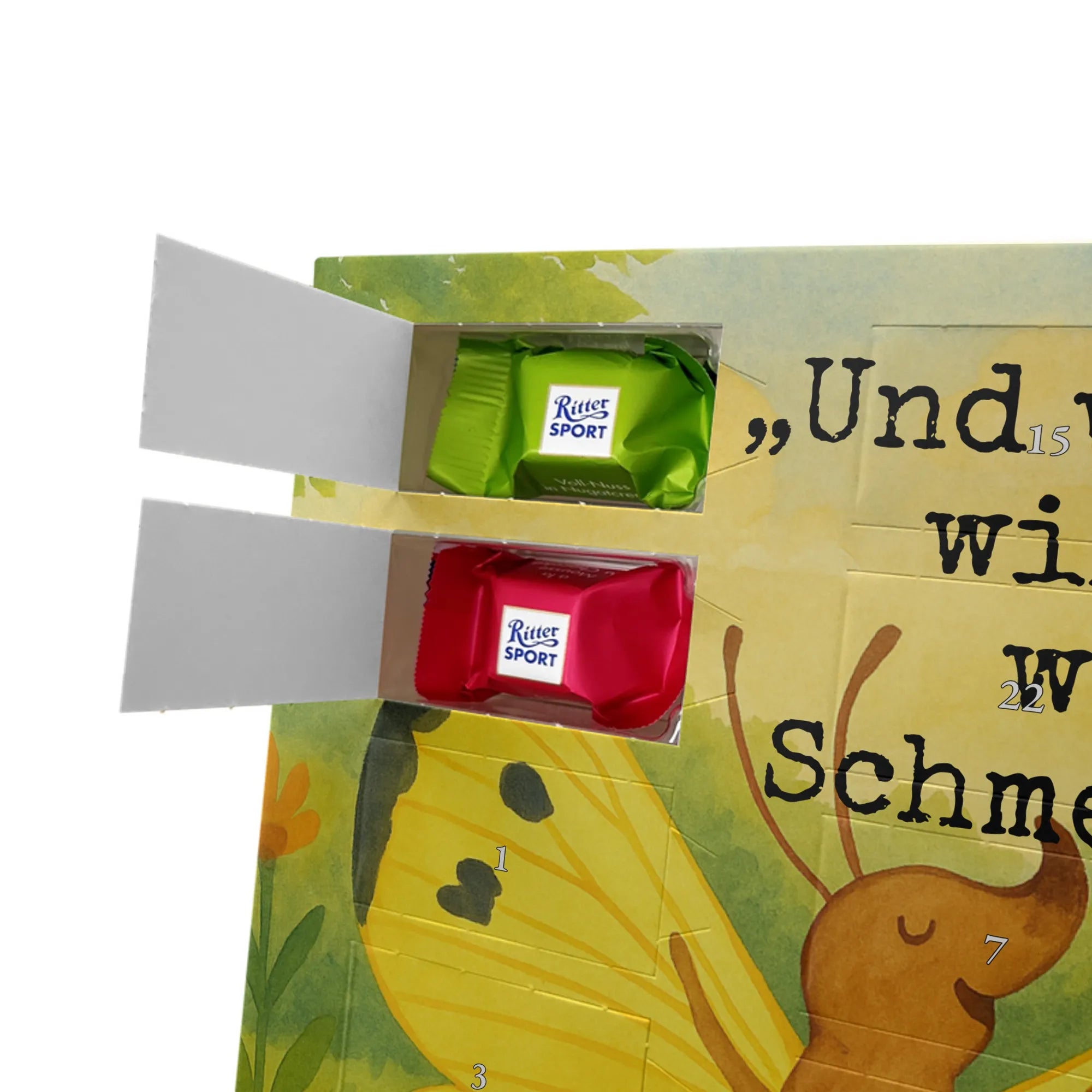 Adventskalender Schokolade von Mr. & Mrs. Panda – eine liebevolle Kombination aus hübschem Design und süßem Inhalt. Der Kalender ist bedruckt mit wunderschönen Motiven & Sprüchen von Mr. & Mrs. Panda und besticht durch brillante Druckqualität mit seidenmatter Oberflächenveredelung. Die Seitenflächen sind ebenfalls bedruckt, wodurch der Kalender rundum ein Hingucker ist. Er ist nicht personalisierbar. Maße: 325 mm x 225 mm x 27 mm. Besonders praktisch: Du kannst ihn sowohl aufgehängt als auch aufgestellt nutzen, je nachdem, wo er bei dir am schönsten wirkt. Gefüllt ist der Kalender mit Ritter Sport Schokowürfeln in verführerischen Sorten – Mousse au Chocolat, Schoko Crisp, Voll-Nuss in Nougatcreme, Karamell Duo, Joghurt und Erdbeer-Joghurt. Wichtiger Hinweis: Es handelt sich um einen Kalender gefüllt mit Ritter Sport Schokolade, nicht um einen Kalender der Marke Ritter Sport. Schenke deinen Liebsten oder dir selbst tägliche Schokoglücksmomente mit diesem charmanten Adventskalender.