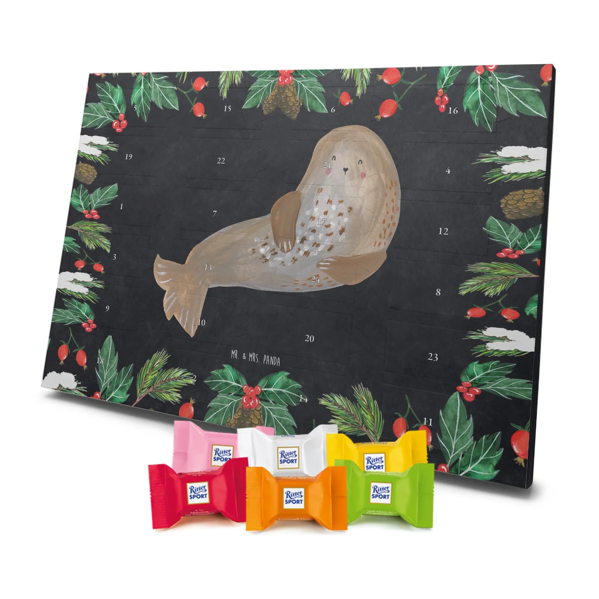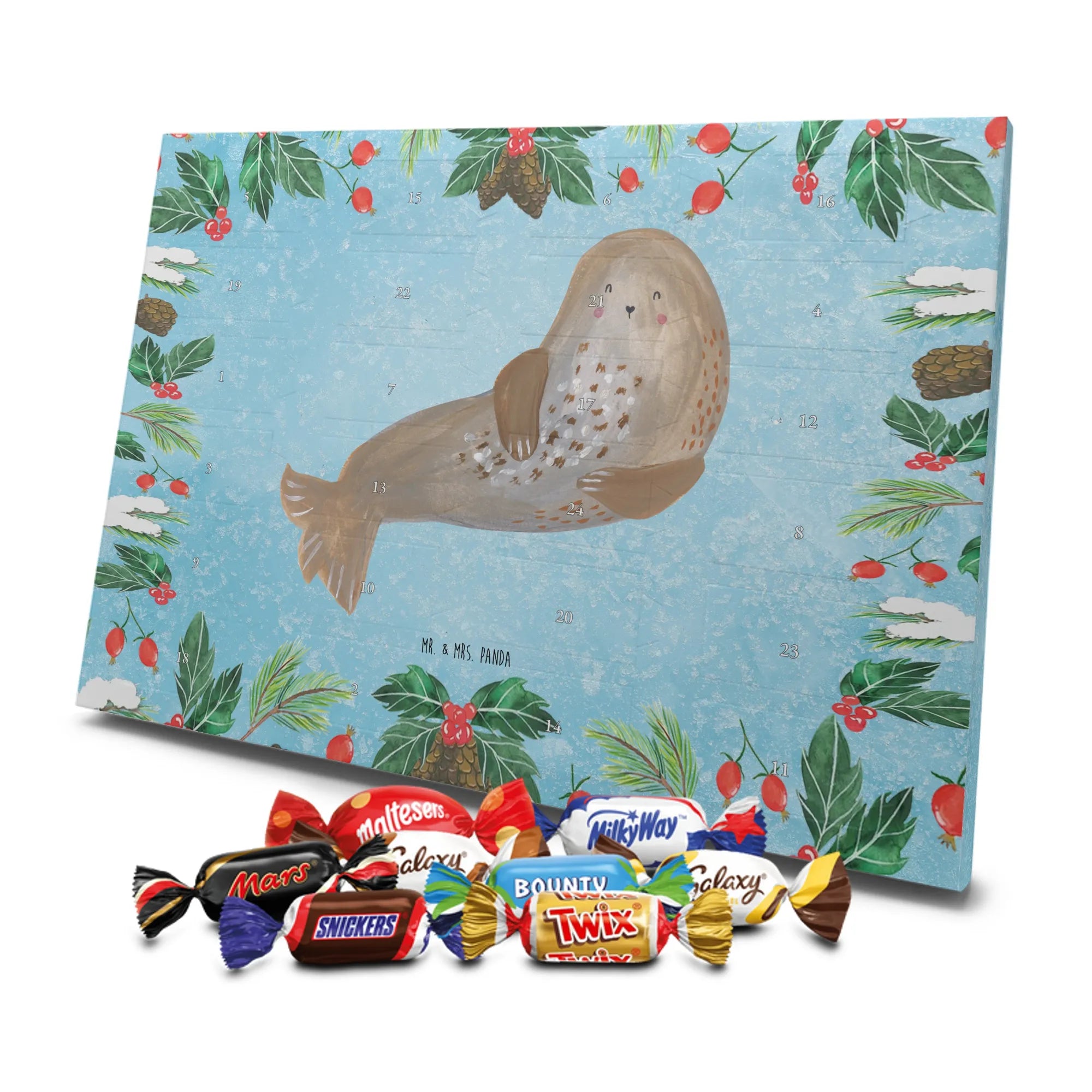 Weihnachtskalender Schokolade Robbe Lachen - Classic - mit Spruch - Eisblau