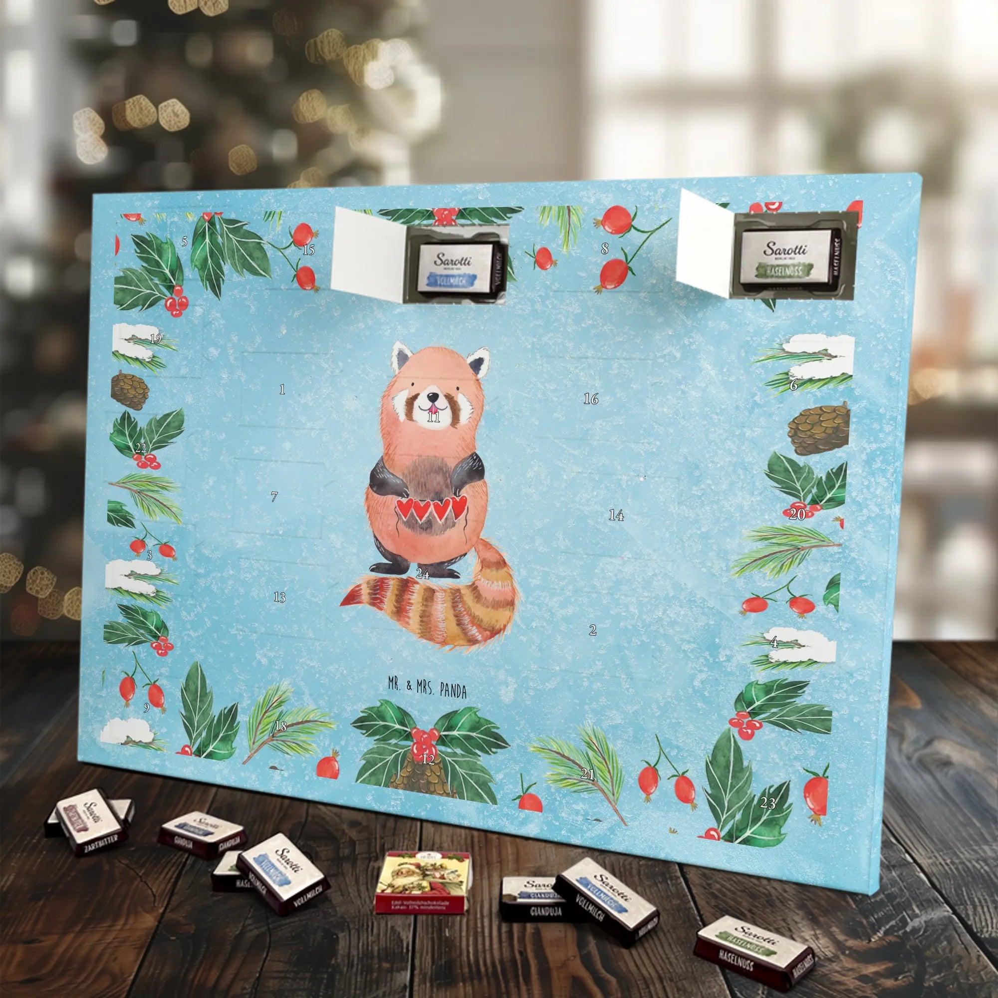 Schoko Adventskalender Roter Panda - Classic - mit Spruch - Eisblau