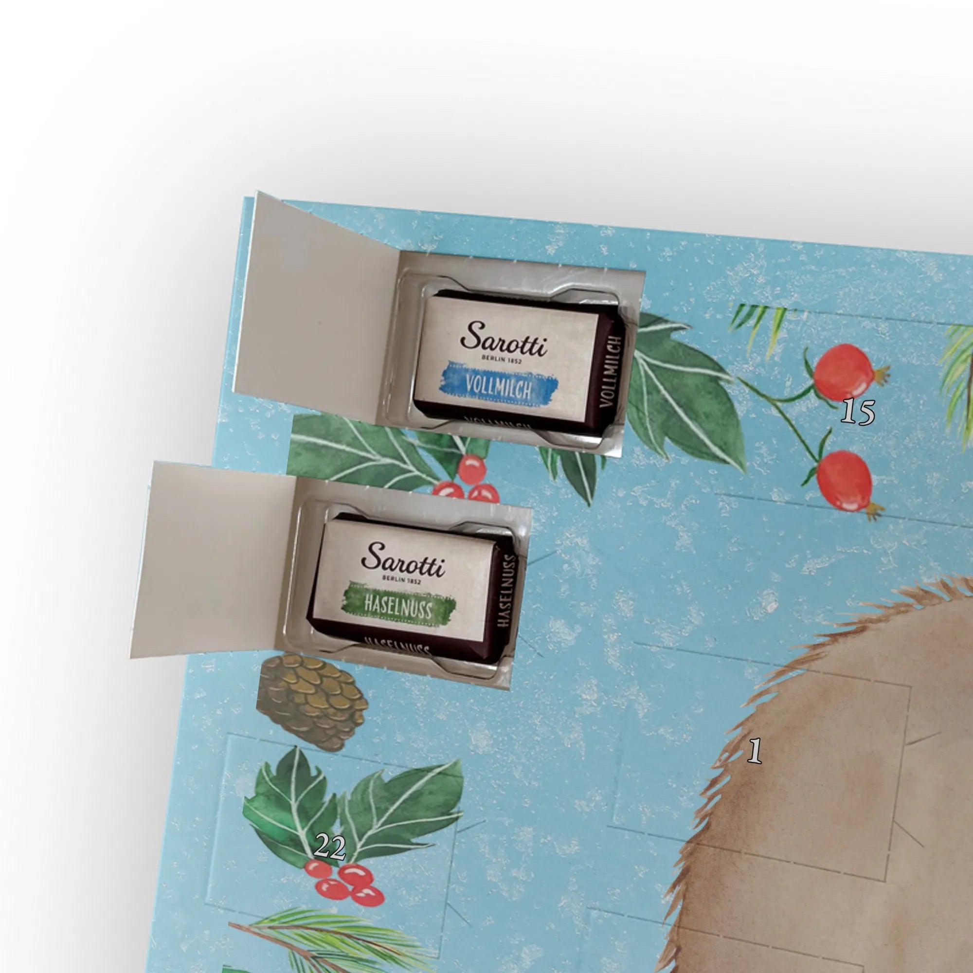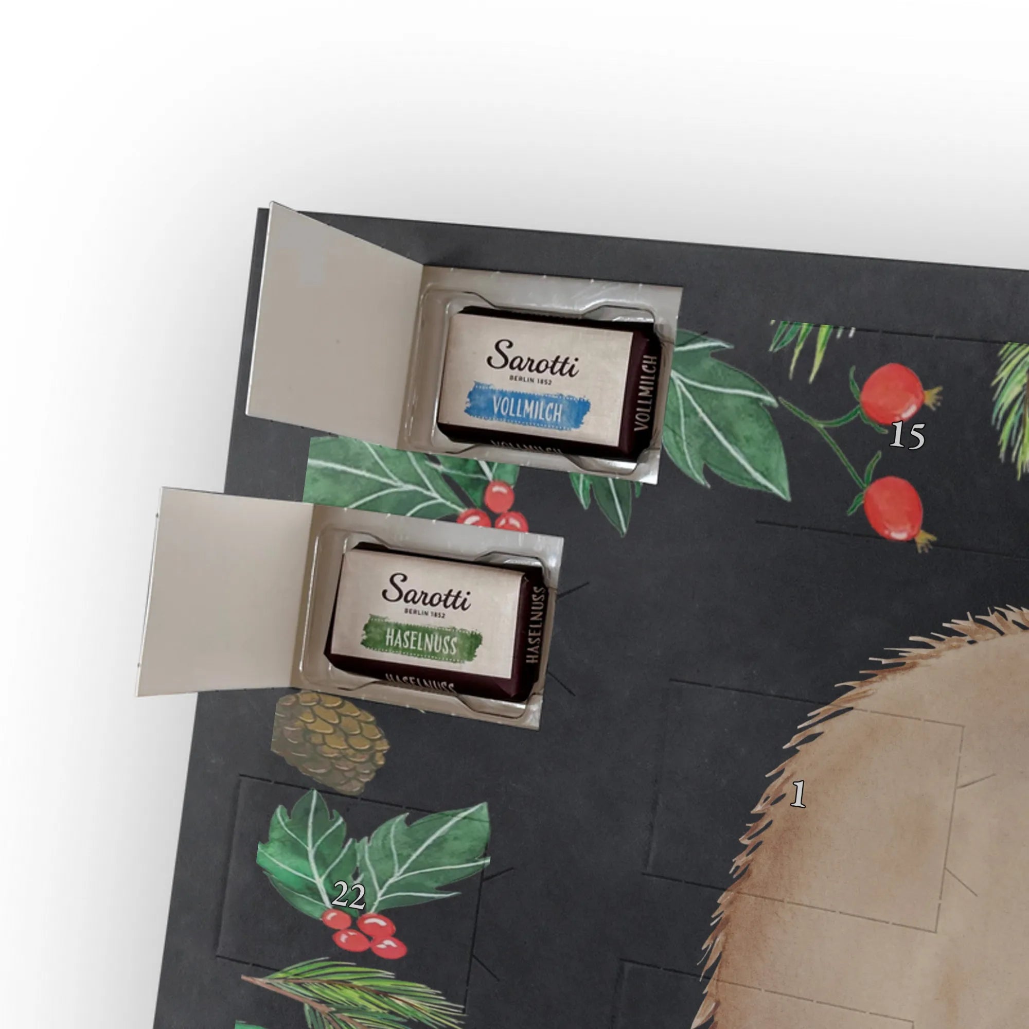🐼 Schoko-Adventskalender: Liebevolles Design, seidenmatt, brillanter Druck – ein Hingucker.