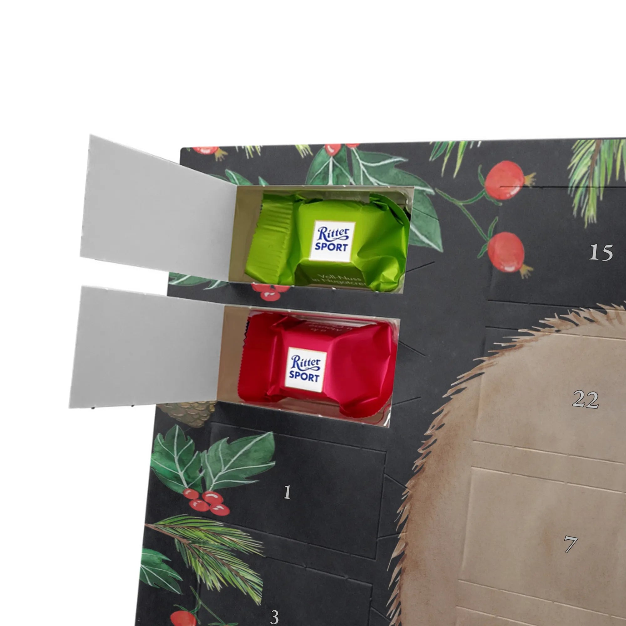 Adventskalender Schokolade von Mr. & Mrs. Panda – eine liebevolle Kombination aus hübschem Design und süßem Inhalt. Der Kalender ist bedruckt mit wunderschönen Motiven & Sprüchen von Mr. & Mrs. Panda und besticht durch brillante Druckqualität mit seidenmatter Oberflächenveredelung. Die Seitenflächen sind ebenfalls bedruckt, wodurch der Kalender rundum ein Hingucker ist. Er ist nicht personalisierbar. Maße: 325 mm x 225 mm x 27 mm. Besonders praktisch: Du kannst ihn sowohl aufgehängt als auch aufgestellt nutzen, je nachdem, wo er bei dir am schönsten wirkt. Gefüllt ist der Kalender mit Ritter Sport Schokowürfeln in verführerischen Sorten – Mousse au Chocolat, Schoko Crisp, Voll-Nuss in Nougatcreme, Karamell Duo, Joghurt und Erdbeer-Joghurt. Wichtiger Hinweis: Es handelt sich um einen Kalender gefüllt mit Ritter Sport Schokolade, nicht um einen Kalender der Marke Ritter Sport. Schenke deinen Liebsten oder dir selbst tägliche Schokoglücksmomente mit diesem charmanten Adventskalender.