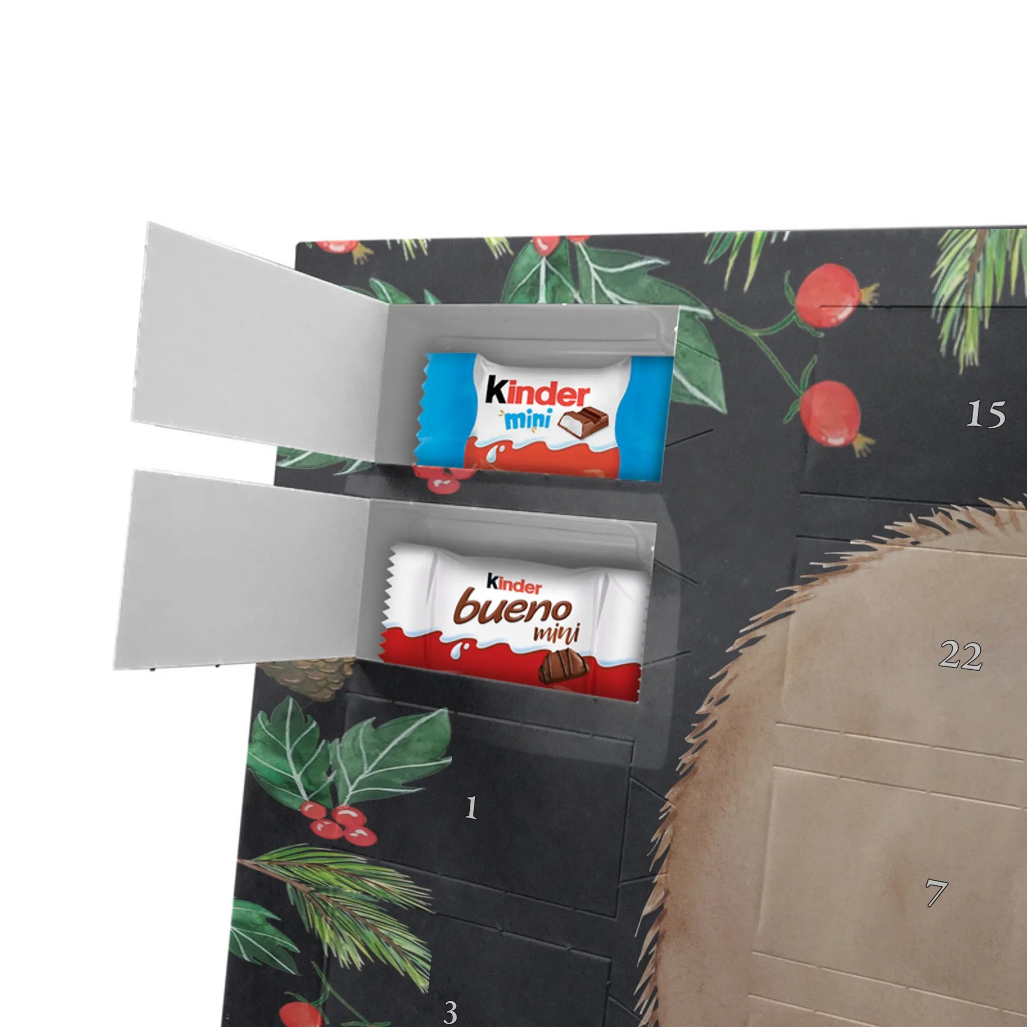 Wunderschöner Schoko Adventskalender von Mr. & Mrs. Panda – perfekt, wenn du die Vorweihnachtszeit mit einem liebevoll gestalteten Kalender versüßen möchtest. Unser Kalender ist bedruckt mit wunderschönen Motiven & Sprüchen von Mr. & Mrs. Panda und eignet sich hervorragend als Geschenk für Freunde, Familie oder einfach für dich selbst. Er ist nicht personalisierbar, dafür aber mit viel Liebe zum Detail gestaltet. Die brillante Druckqualität mit seidenmatter Oberflächenveredelung sorgt für edles Aussehen, und die bedruckten Seitenflächen geben dem Kalender einen wertigen Gesamteindruck. Maße: 355 mm x 245 mm x 11 mm. Besonderheit: kann aufgehängt oder aufgestellt werden – so findest du immer den perfekten Platz bei dir zuhause. Gefüllt mit Markenname Schokolade: Adventskalender gefüllt mit kinder® Schokolade. Inhalt: kinder® Schoko-Bons, kinder® Bueno mini und kinder® Schokolade mini. Der Kalender bietet 24 Türchen mit kleinen Überraschungen, die Kinderherzen höherschlagen lassen und Erwachsene schmunzeln. Er ist robust verarbeitet und ideal für den täglichen Genuss in der Adventszeit. Ob dekorativ auf der Kommode oder an der Wand aufgehängt – er bringt Freude und süße Momente in die Vorweihnachtszeit. Bestelle jetzt und mach dir oder deinen Lieben die Adventszeit ein bisschen süßer!