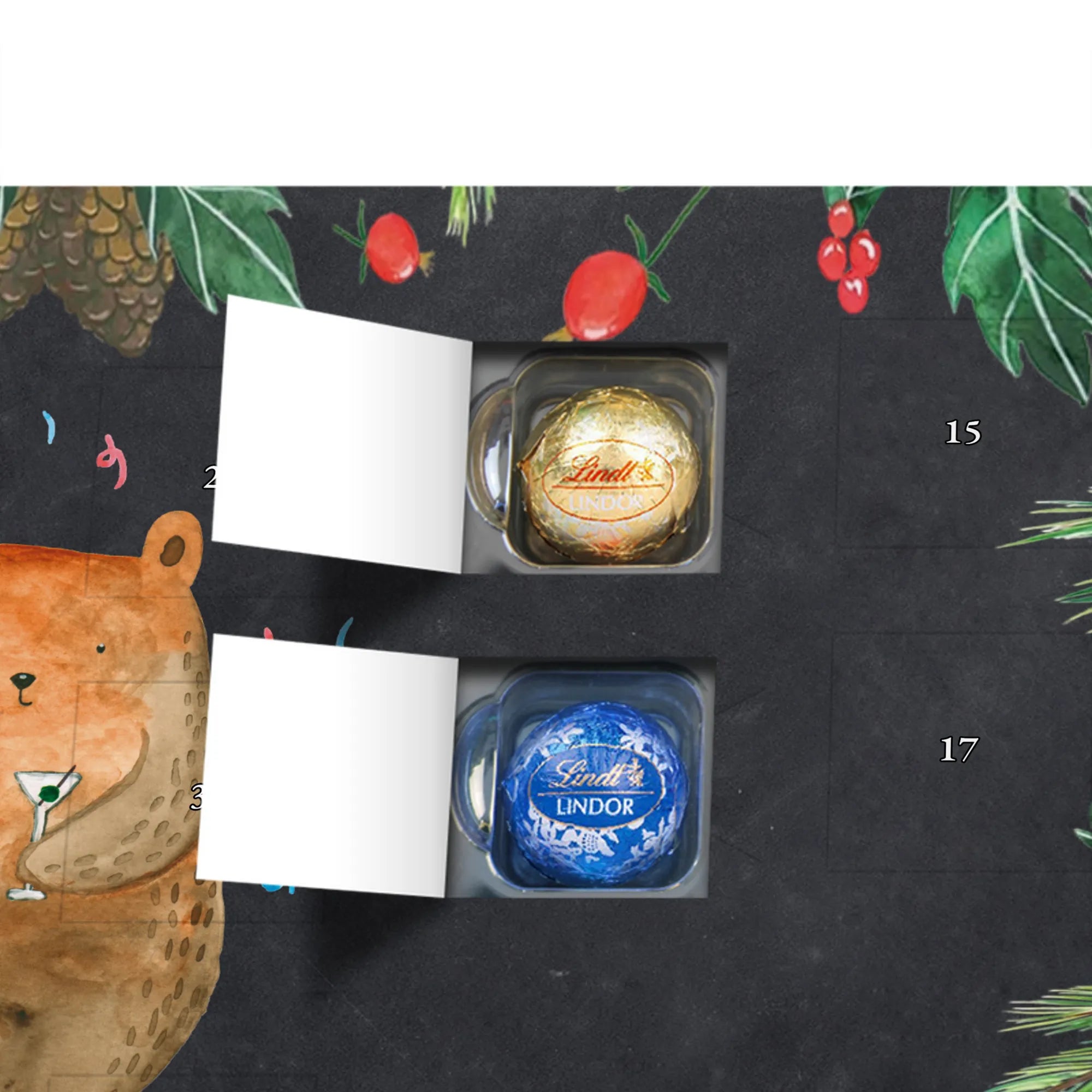 Ob du nun nach einem Pralinen Adventskalender für einen geliebten Menschen suchst oder dir selbst eine Freude machen möchtest – dieser Schokokalender ist ein absolutes Highlight. Er eignet sich hervorragend als Geschenk für Freunde, die gerne feiern, oder als Überraschung für Kinder, die Teddybären lieben. Der Kalender lässt sich ganz einfach aufstellen oder an der Wand aufhängen. Die seidenmatte Oberflächenveredelung verleiht dem Produkt eine besonders wertige Haptik. In der Bär-Kollektion von Mr. & Mrs. Panda findest du viele weitere Schätze, die dein Herz höher schlagen lassen. 🐻