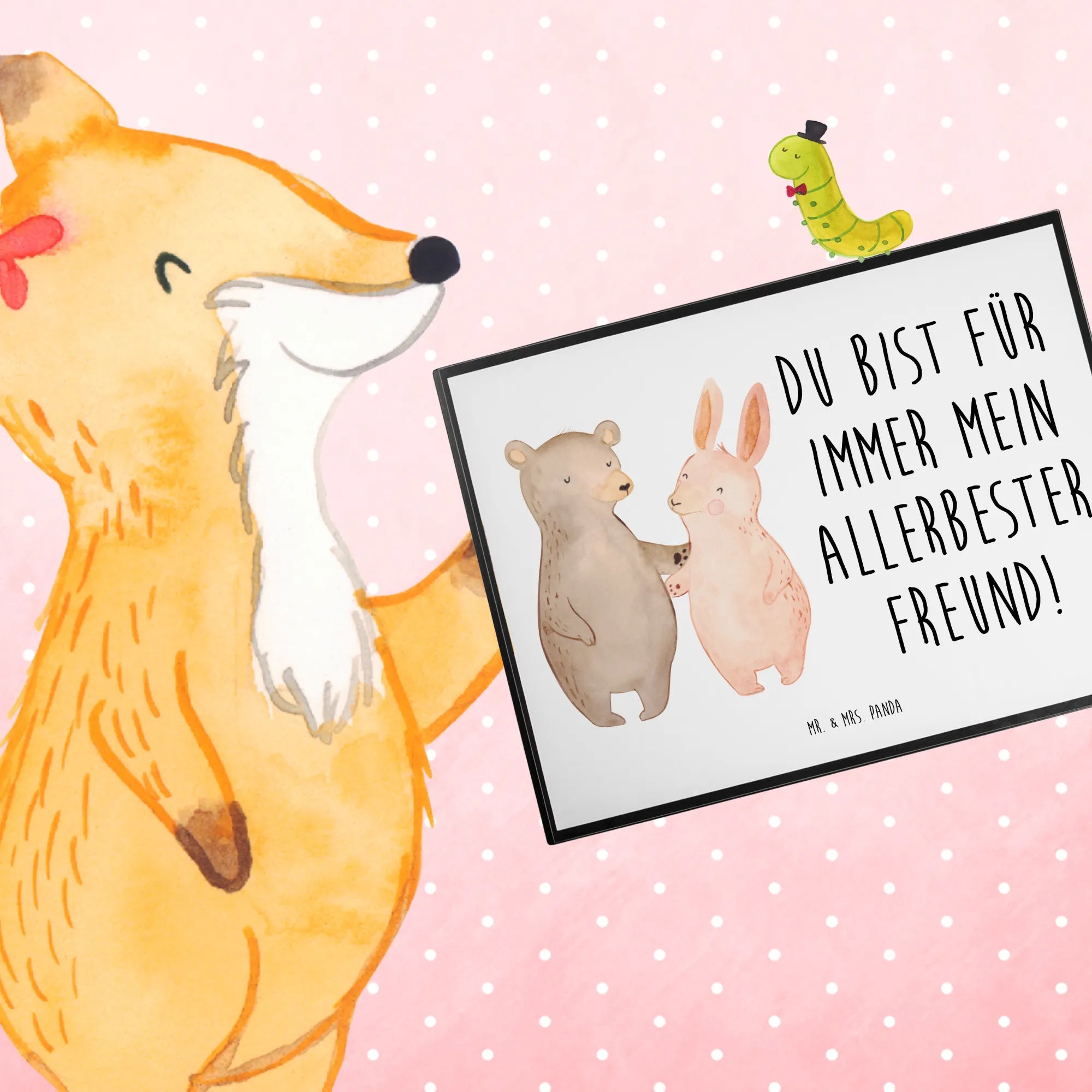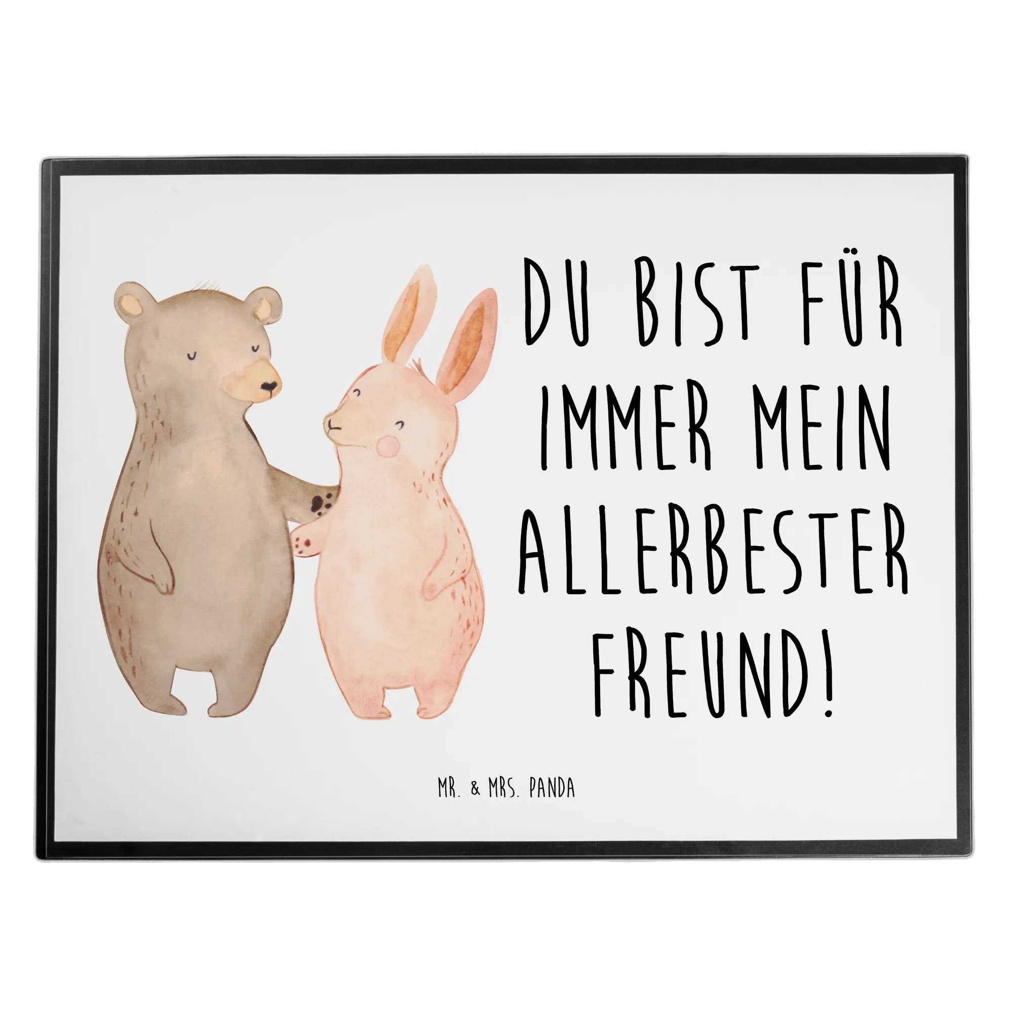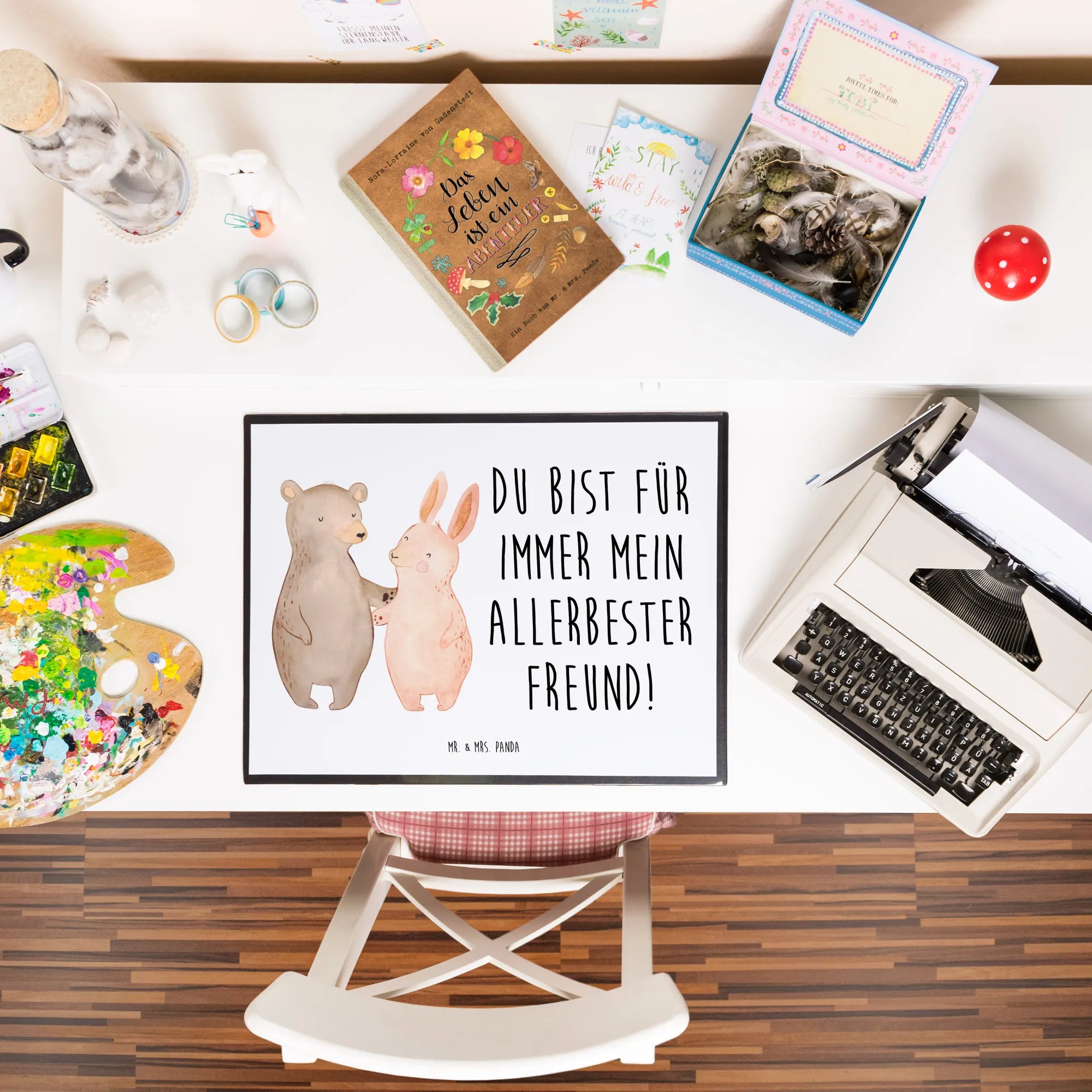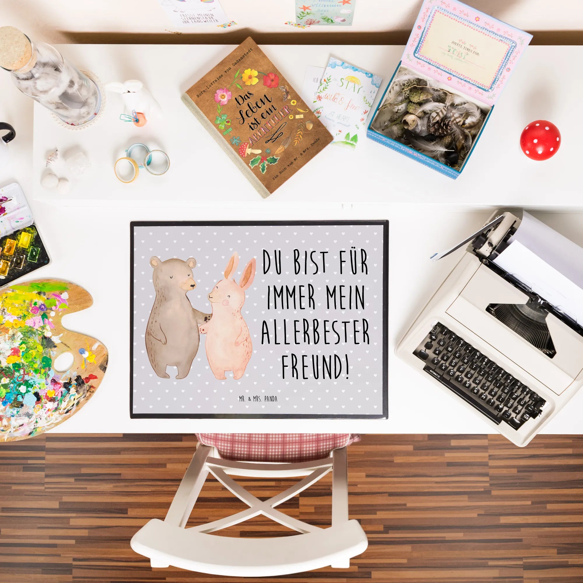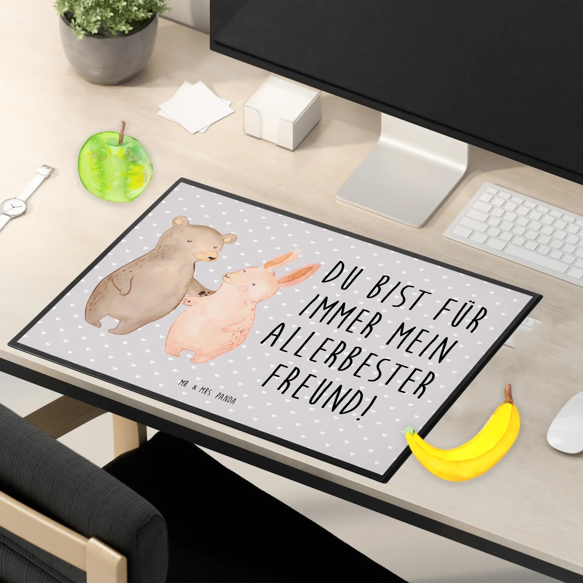 Die Schreibtischunterlage Bär Hase Umarmen aus der Liebe Kollektion von Mr. & Mrs. Panda ist der perfekte Begleiter für all jene, die ihre Schreibtischarbeit mit einer Prise Liebe gestalten möchten. Diese einzigartige Schreibtischauflage ist ein liebevolles Geschenk für deinen besten Freund oder deine beste Freundin, für Verliebte und die, die es noch werden wollen. Ob zum Jahrestag, als Liebesgeschenk zum Valentinstag oder einfach nur so - diese Schreibtischunterlage sorgt für ein Lächeln auf jedem Gesicht. Das süße Motiv zeigt einen Bären und einen Hasen, die sich inniglich umarmen und strahlen nur so vor Zuneigung. Mit dem Slogan "Du bist für immer mein allerbester Freund!" trifft diese Schreibtischunterlage das Herz genau ins Schwarze.