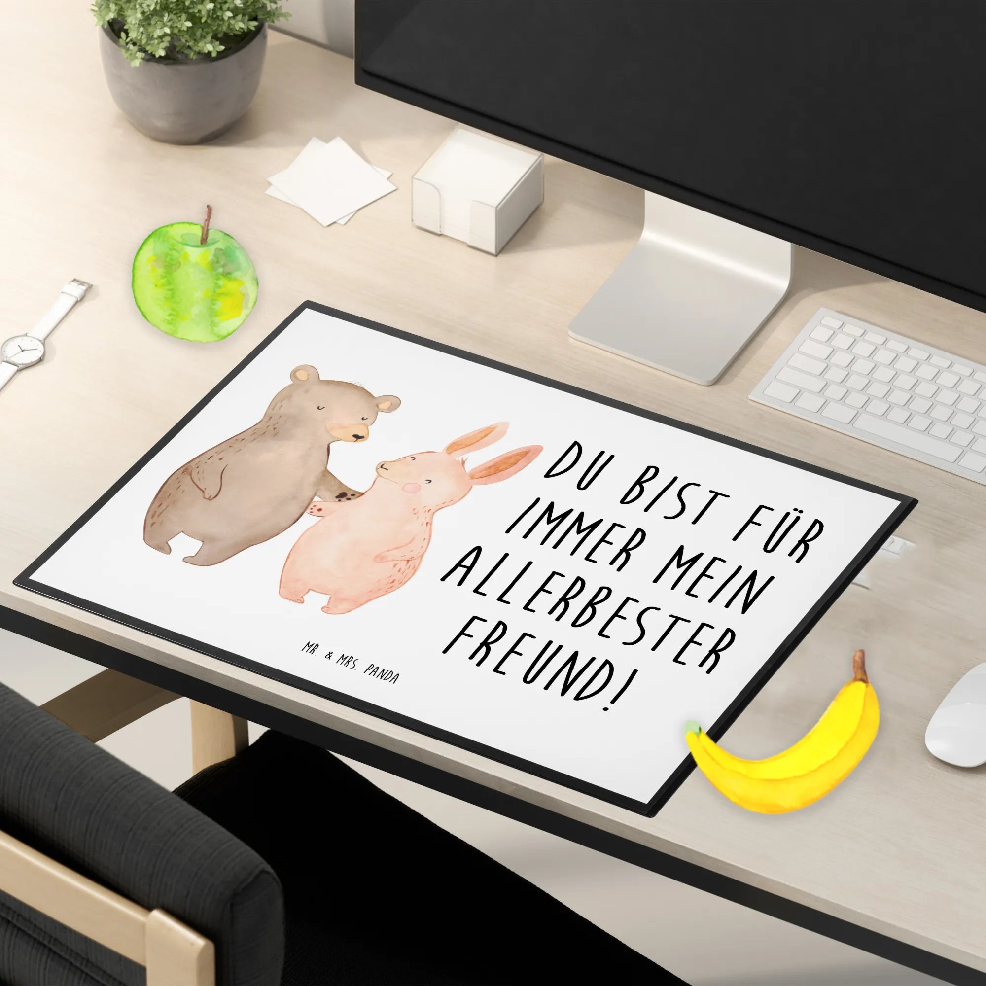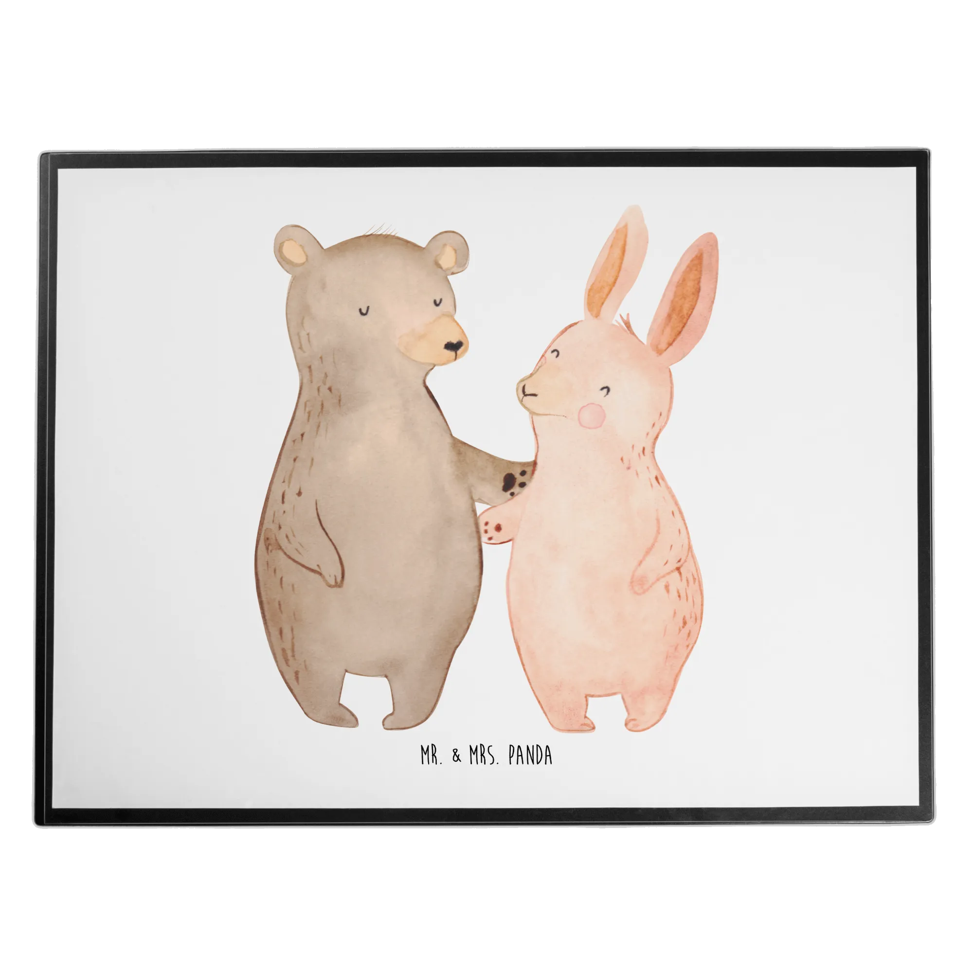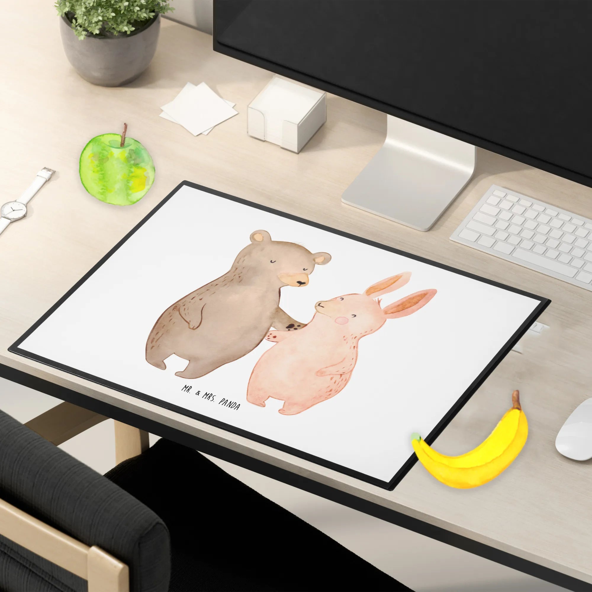 Schreibtischunterlage Bär Hase Umarmen - mit Spruch - Weiß
