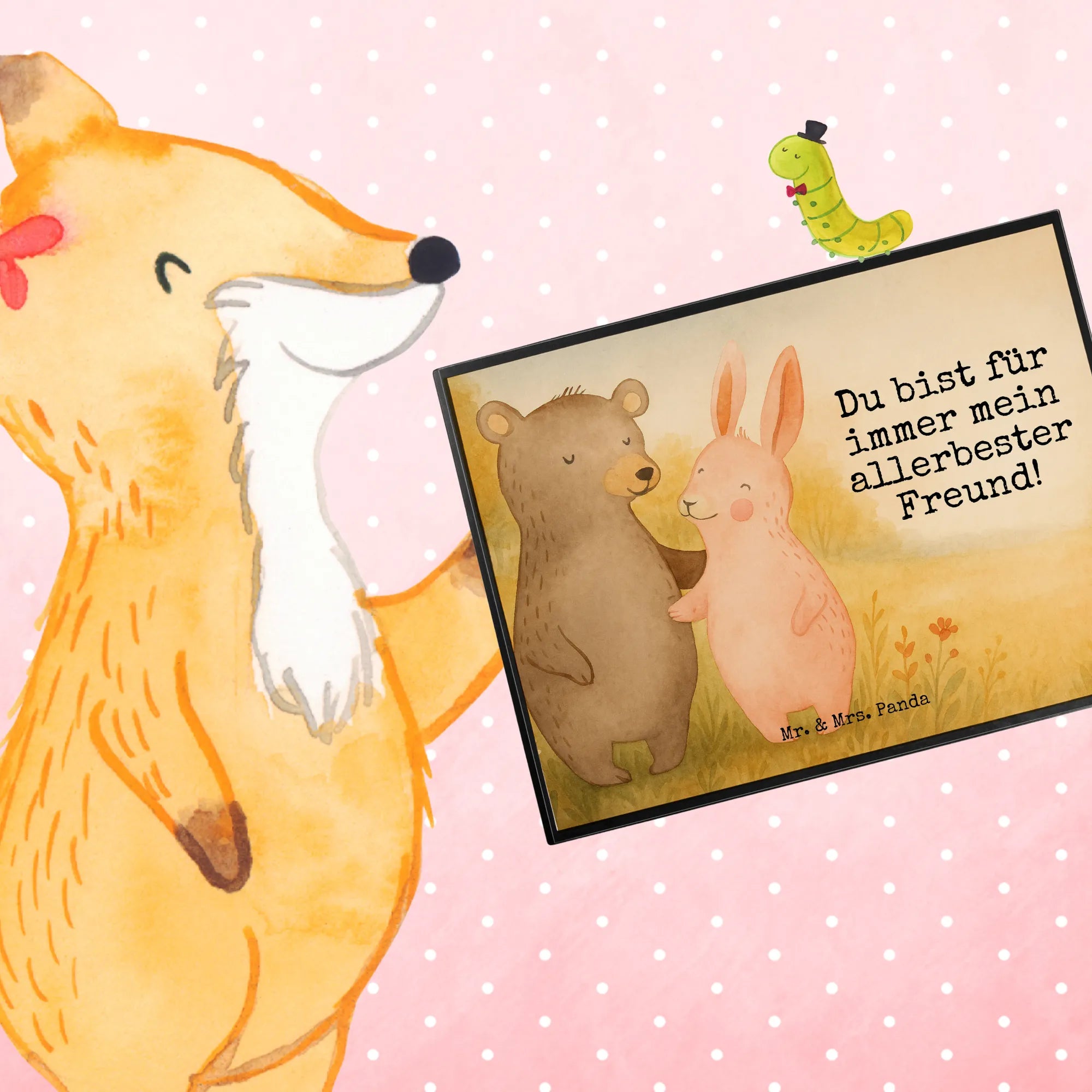 Die herzliche Umarmung zwischen dem Bär und dem Hasen fängt die Quintessenz wahrer Freundschaft perfekt ein. In dieser warmen und fröhlichen Szene sehen wir, wie zwei beste Freunde, die sich stets unterstützen, miteinander verbunden sind. Das Motiv ist dank der sanften Farbgestaltung und der liebevollen Ausdrücke der Charaktere ein echter Hingucker. Der Satz 'Du bist für immer mein allerbester Freund!' stimmt uns darauf ein, wie wichtig es ist, diese besonderen Bande zu pflegen und zu feiern, und regt uns dazu an, unseren Freunden Wertschätzung zu zeigen, wann immer es möglich ist.