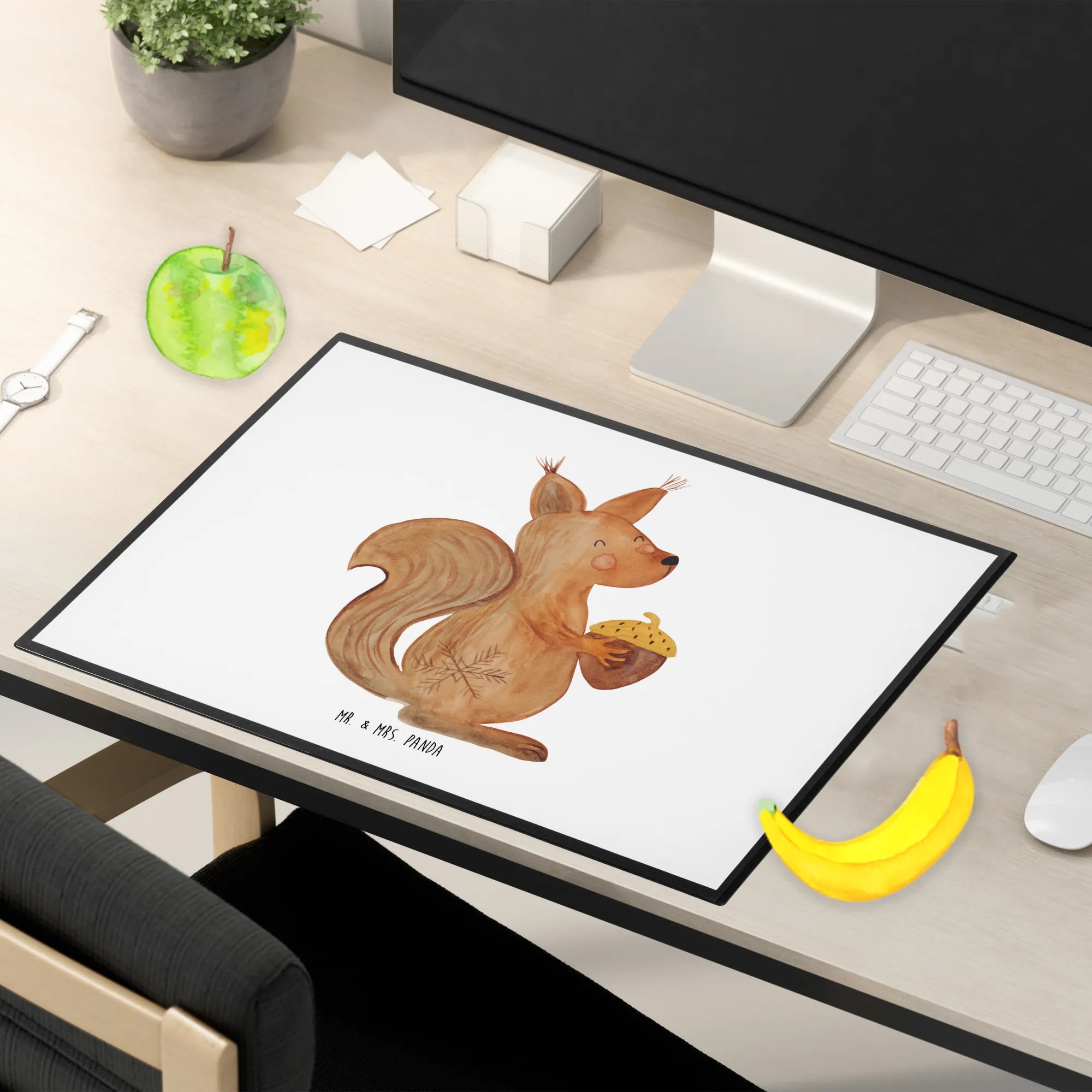 Die Schreibtischunterlage "Eichhörnchen Weihnachtszeit" aus der Winter Kollektion von Mr. & Mrs. Panda ist das perfekte Geschenk für alle, die die besinnliche Weihnachtszeit lieben und eine gemütliche Atmosphäre am Arbeitsplatz schaffen möchten. Mit einem charmanten Eichhörnchen, das in sanften, erdigen Tönen gehalten ist und eine Eichel mit einer kleinen Schneeflocke in den Händen hält, bringt diese Unterlage die Schönheit des Winters direkt auf deinen Schreibtisch. Der beflügelnde Slogan "Frohe Weihnachten und ein magisches neues Jahr" sorgt nicht nur für gute Laune, sondern erinnert auch an die Liebe und Freude, die diese Zeit des Jahres mit sich bringt.
