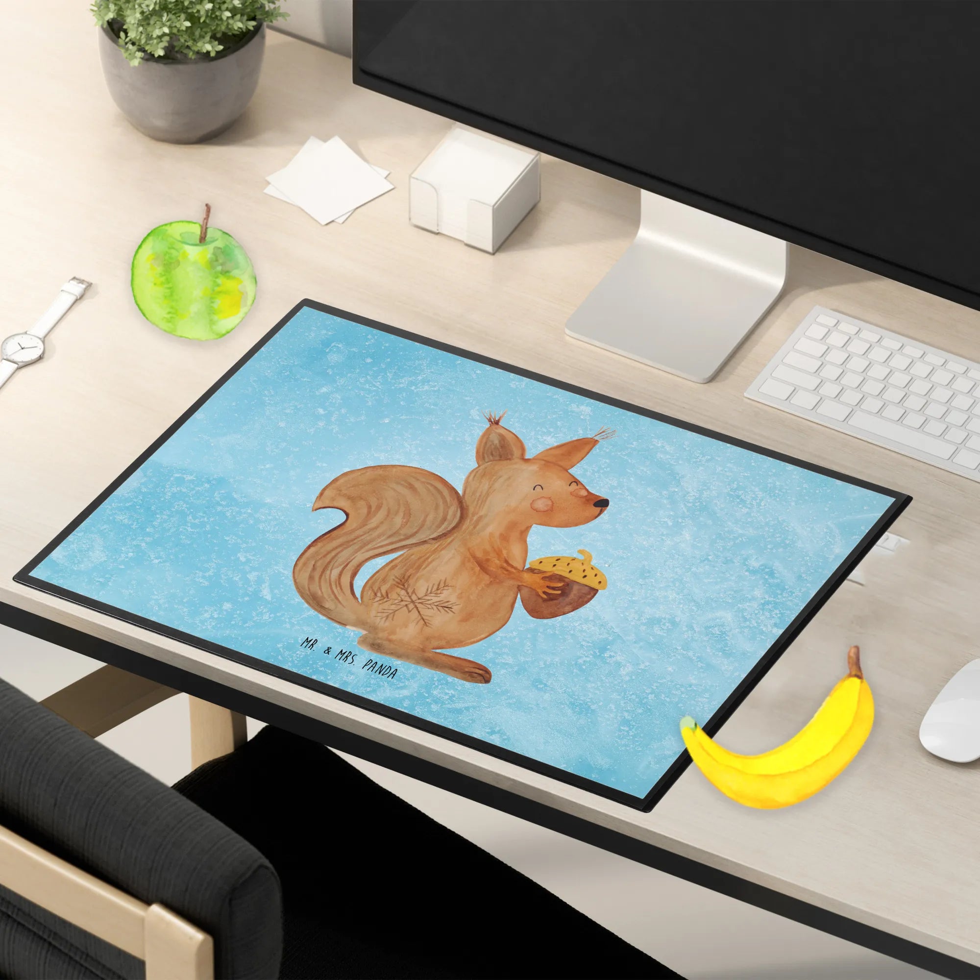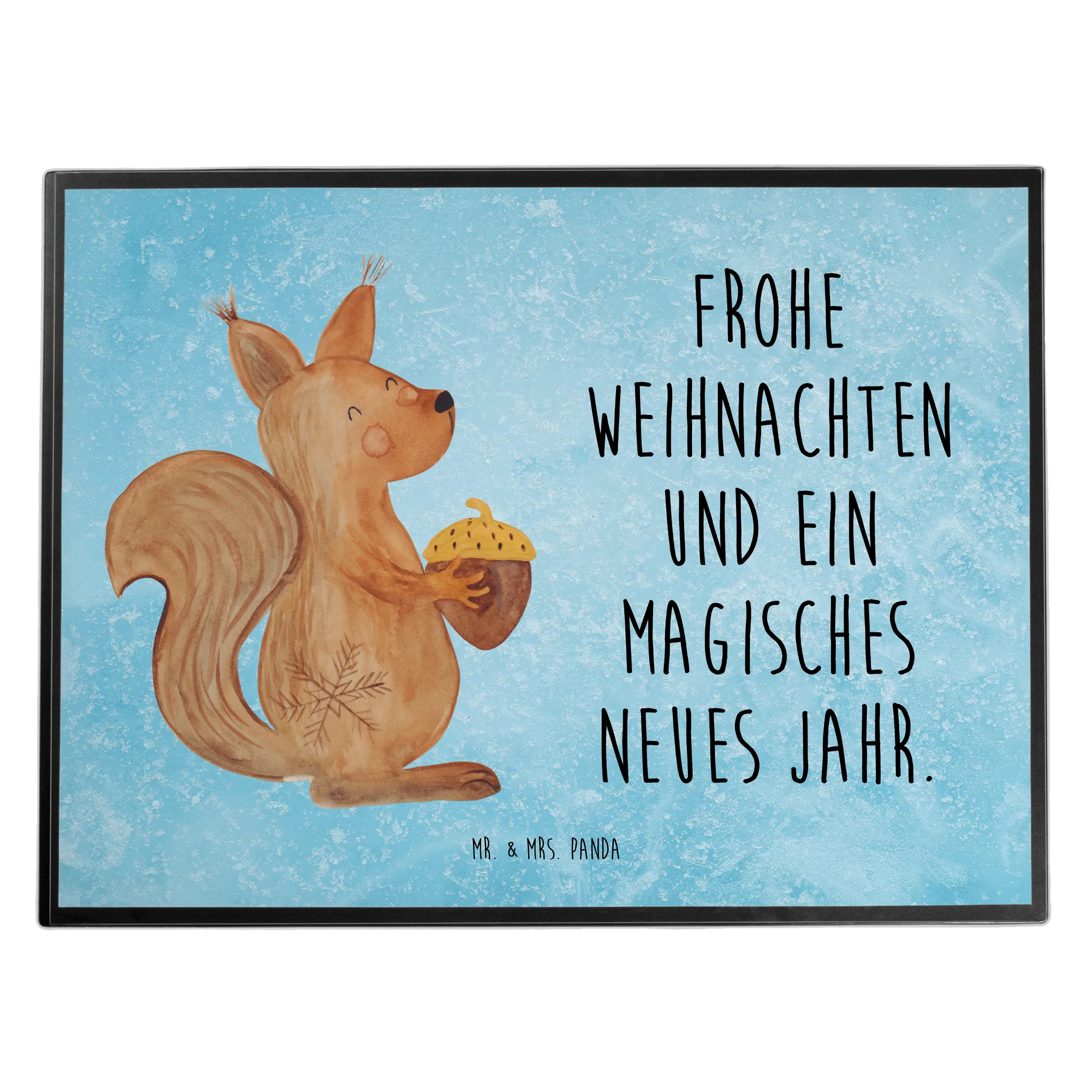 Schreibtischunterlage Eichhörnchen Weihnachtszeit - mit Spruch - Eisblau