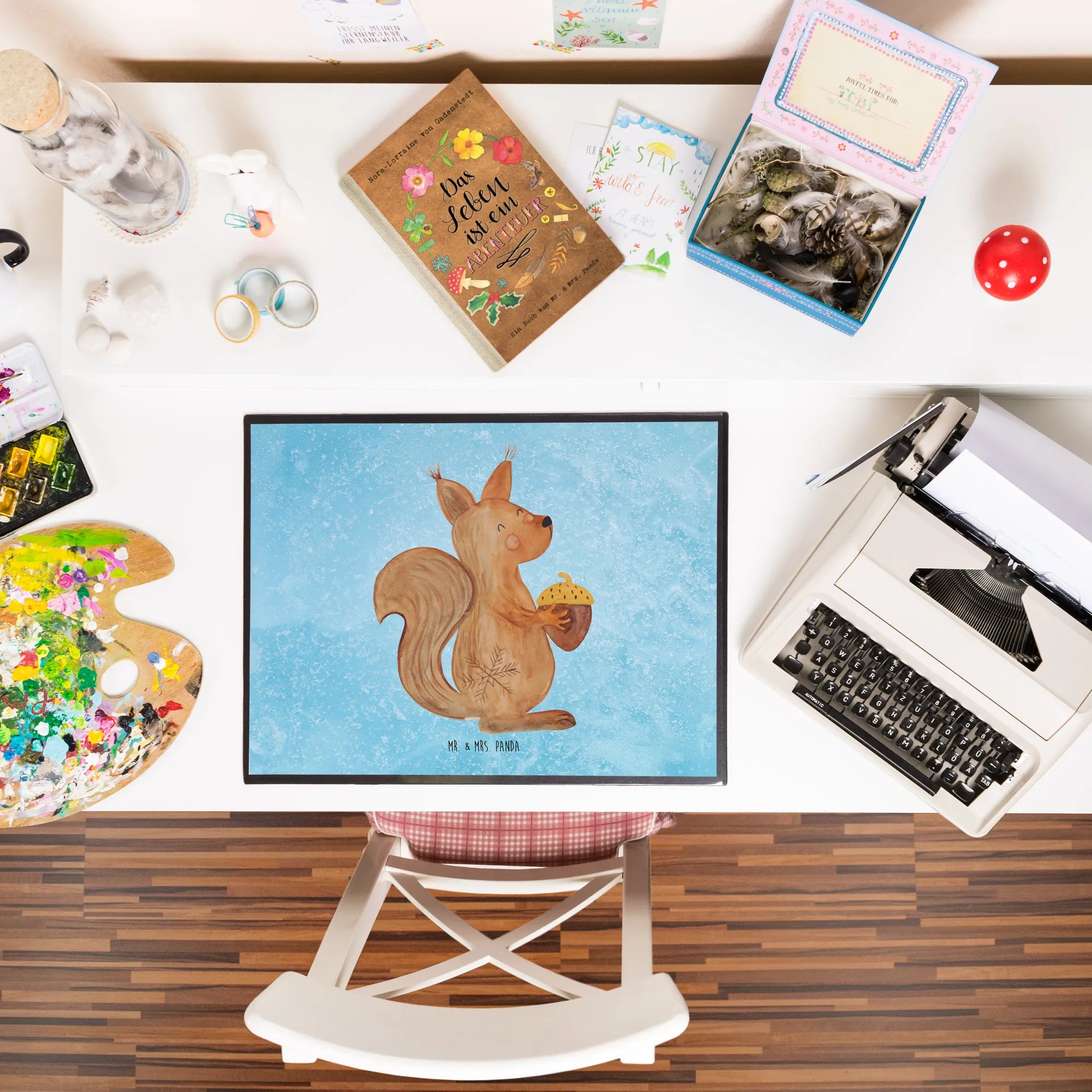Mit einer Einlegelasche an der Seite kann das Motiv ganz einfach gewechselt werden, was die Unterlage vielseitig einsetzbar macht. Pflegeleicht lässt sie sich einfach mit lauwarmem Wasser abwischen. Entdecke die Freude an der eigenen Kreativität und am Schenken – die Schreibtischunterlage "Eichhörnchen Weihnachtszeit" von Mr. & Mrs. Panda ist wirklich eine bezaubernde Geschenkidee, die unvergessliche Momente schafft und jeden Schreibtisch zu einem einladenden Ort verwandelt. Mache die Winterzeit mit unserem einzigartigen Design noch festlicher und genieße die liebevollen Details, die diese Zeit des Jahres so besonders machen.