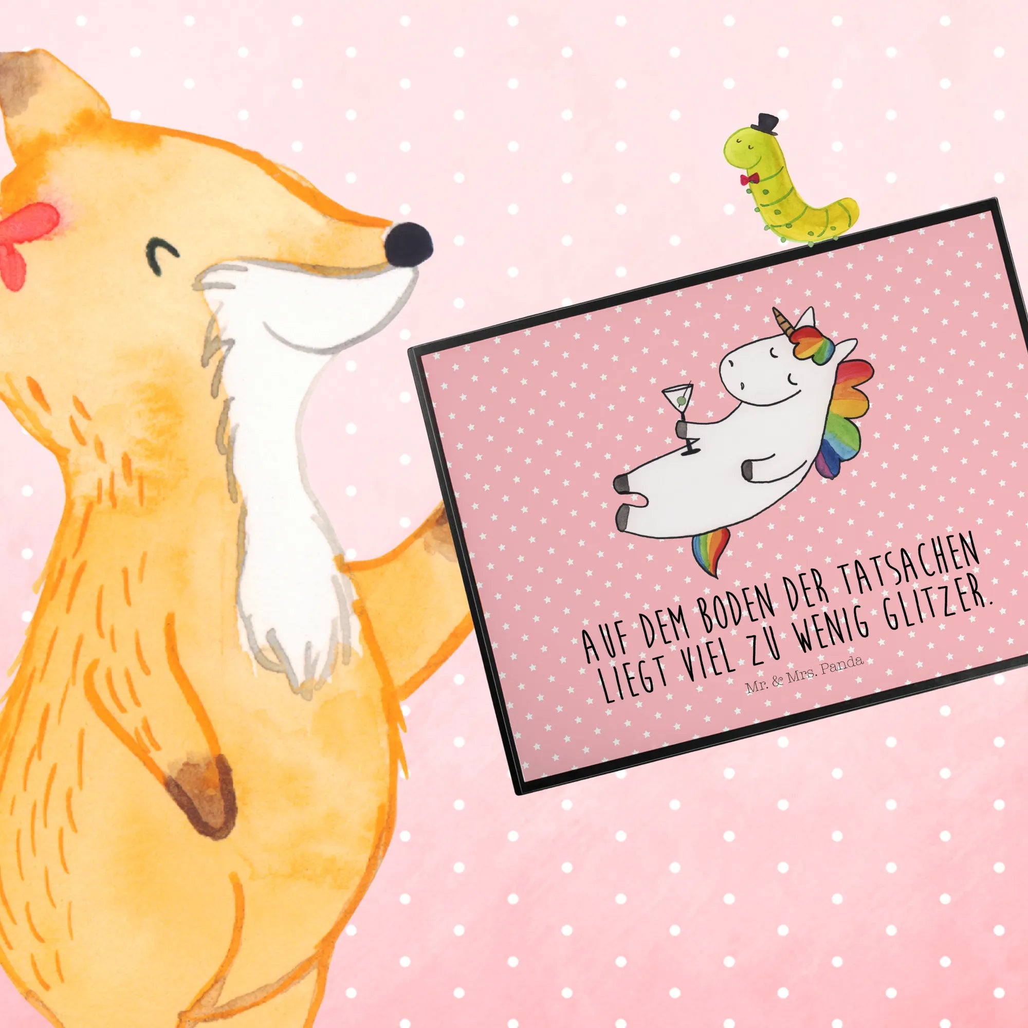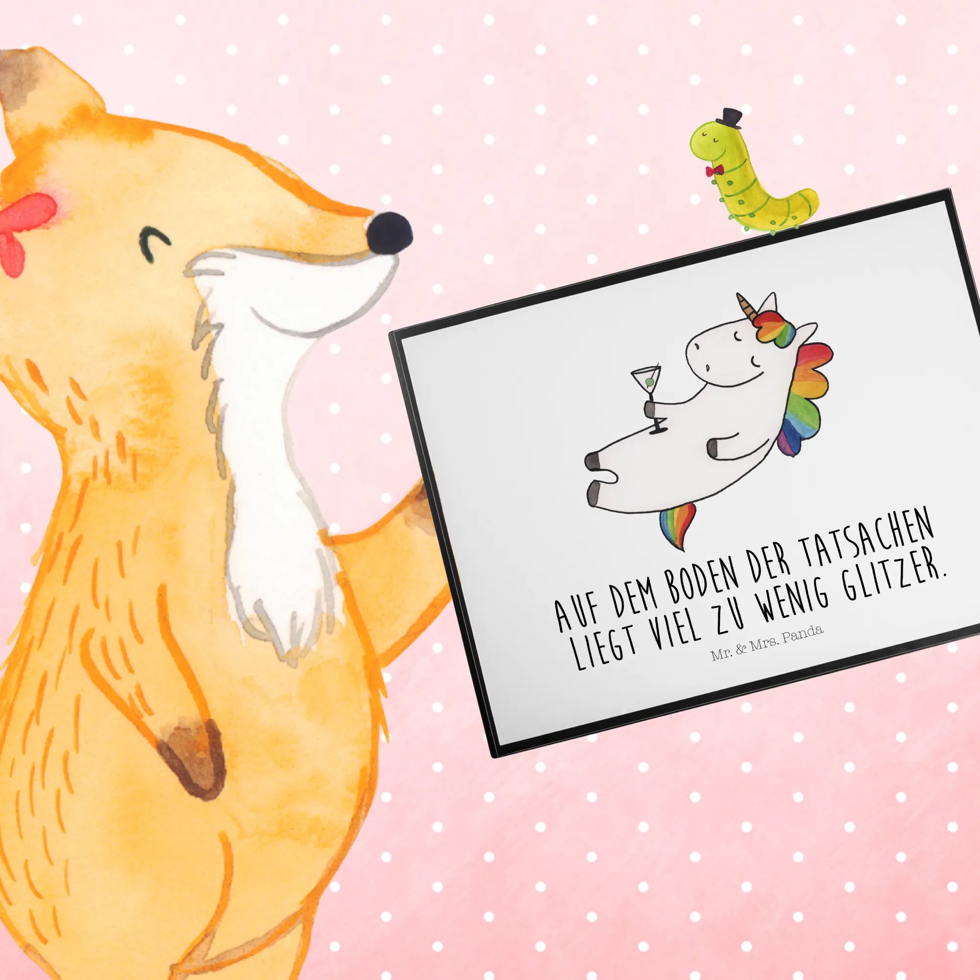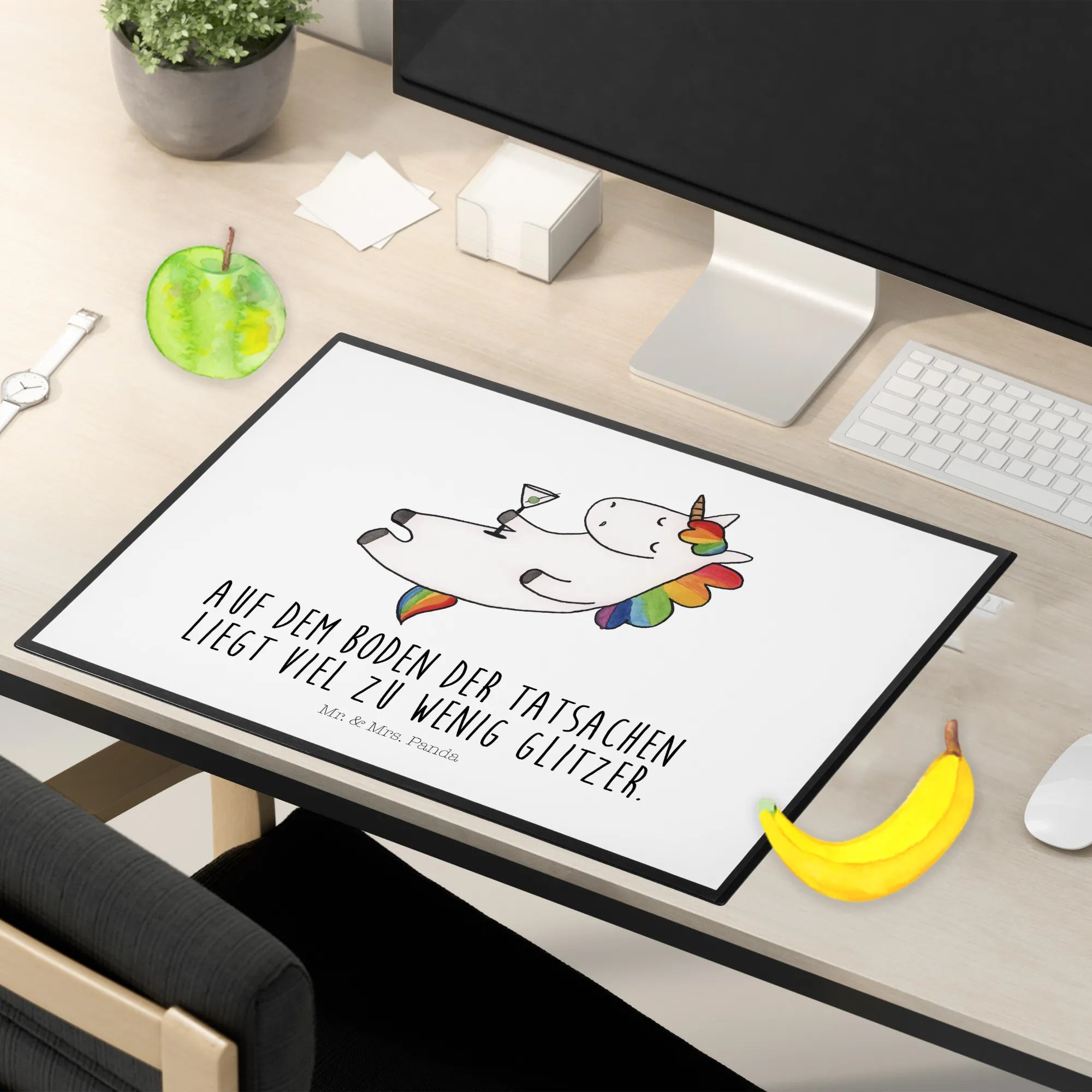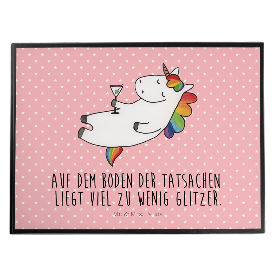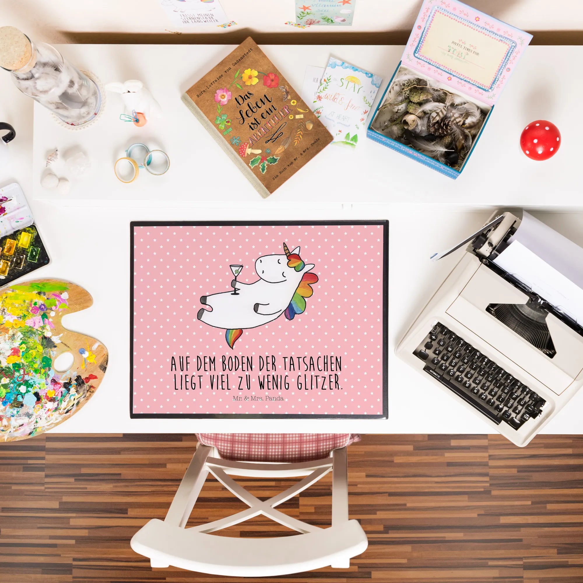 Entdecke unsere zauberhafte Schreibtischunterlage Einhorn Cocktail aus der Einhorn - Kollektion von Mr. & Mrs. Panda! Diese liebevoll gestaltete Unterlage ist nicht nur ein echter Hingucker, sondern auch das perfekte Geschenk für jede Einhorn-Liebhaberin. Ob zum Geburtstag, zur Einladung für eine lustige Cocktail-Party oder einfach nur als kleine Aufmerksamkeit für deine beste Freundin, dieses süße Einhorn wird sie mit einem Lächeln an die schönen Dinge des Lebens erinnern. Der Spruch "Auf dem Boden der Tatsachen liegt viel zu wenig Glitzer" zaubert jedem ein Schmunzeln ins Gesicht und sorgt für gute Laune am Arbeitsplatz oder am Schreibtisch zu Hause.