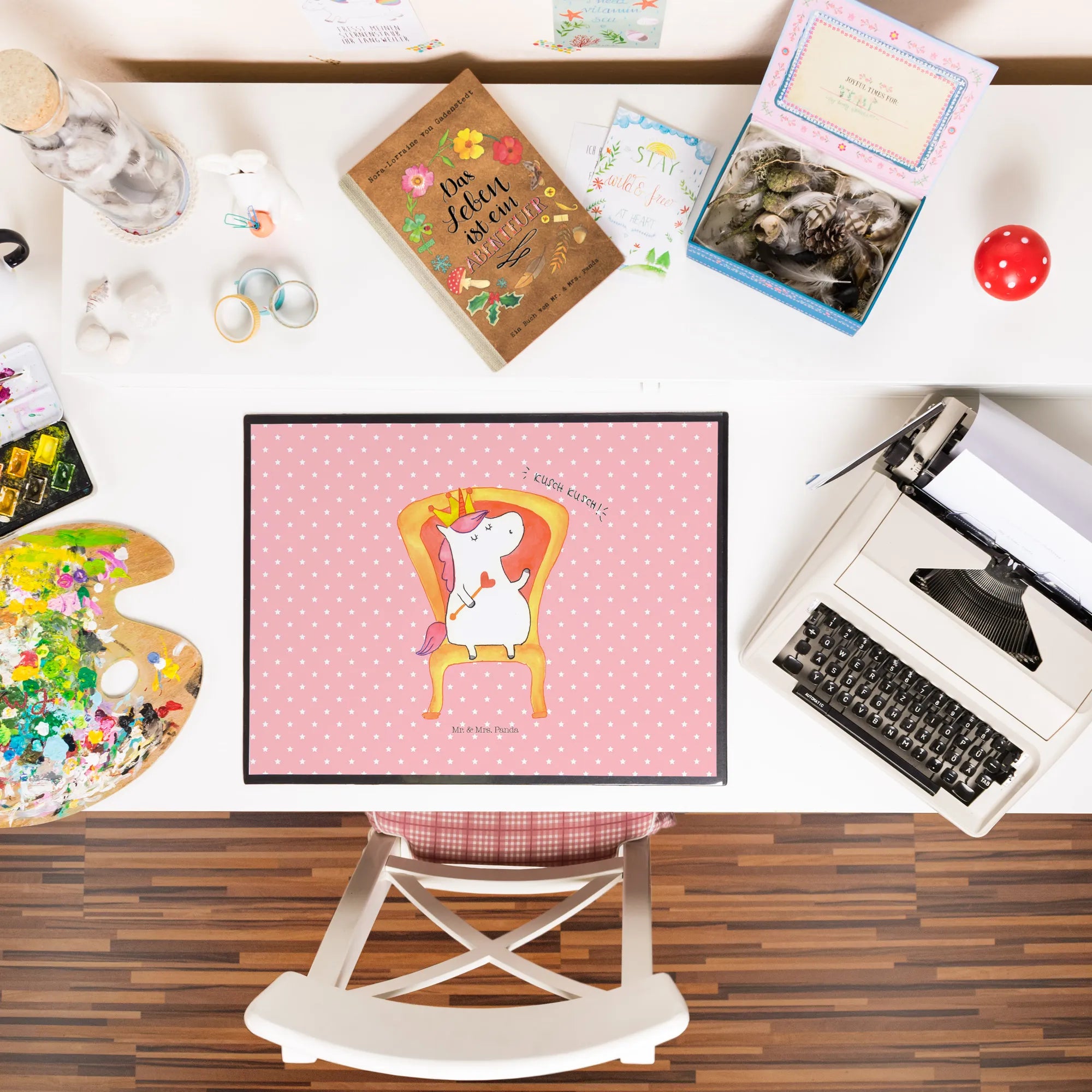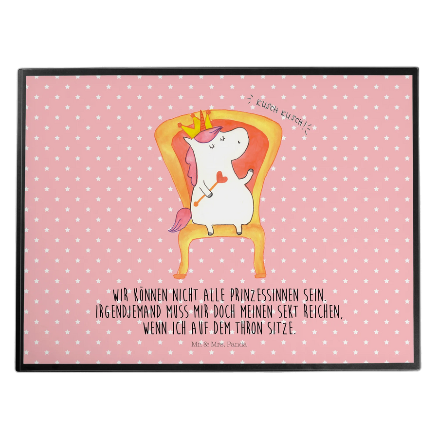 Das niedliche Motiv zeigt ein strahlendes Einhorn auf einem Thron mit einer funkelnden Krone und dem witzigen Spruch: "Wir können nicht alle Prinzessinnen sein. Irgendjemand muss mir doch meinen Sekt reichen, wenn ich auf dem Thron sitze." Ideal für Geburtstagsgeschenke, diese Schreibtischauflage ist der perfekte Begleiter für Fans der Einhorn Dekoration und ein ideales Büroaccessoire, um den Alltag aufzupeppen.