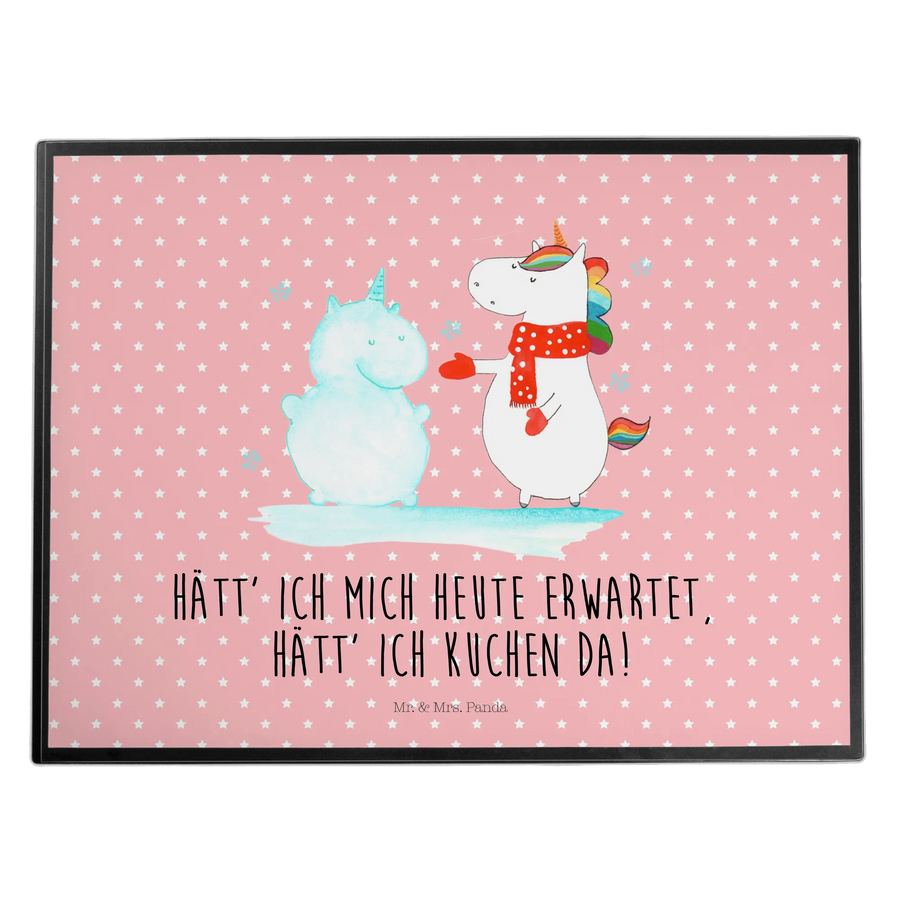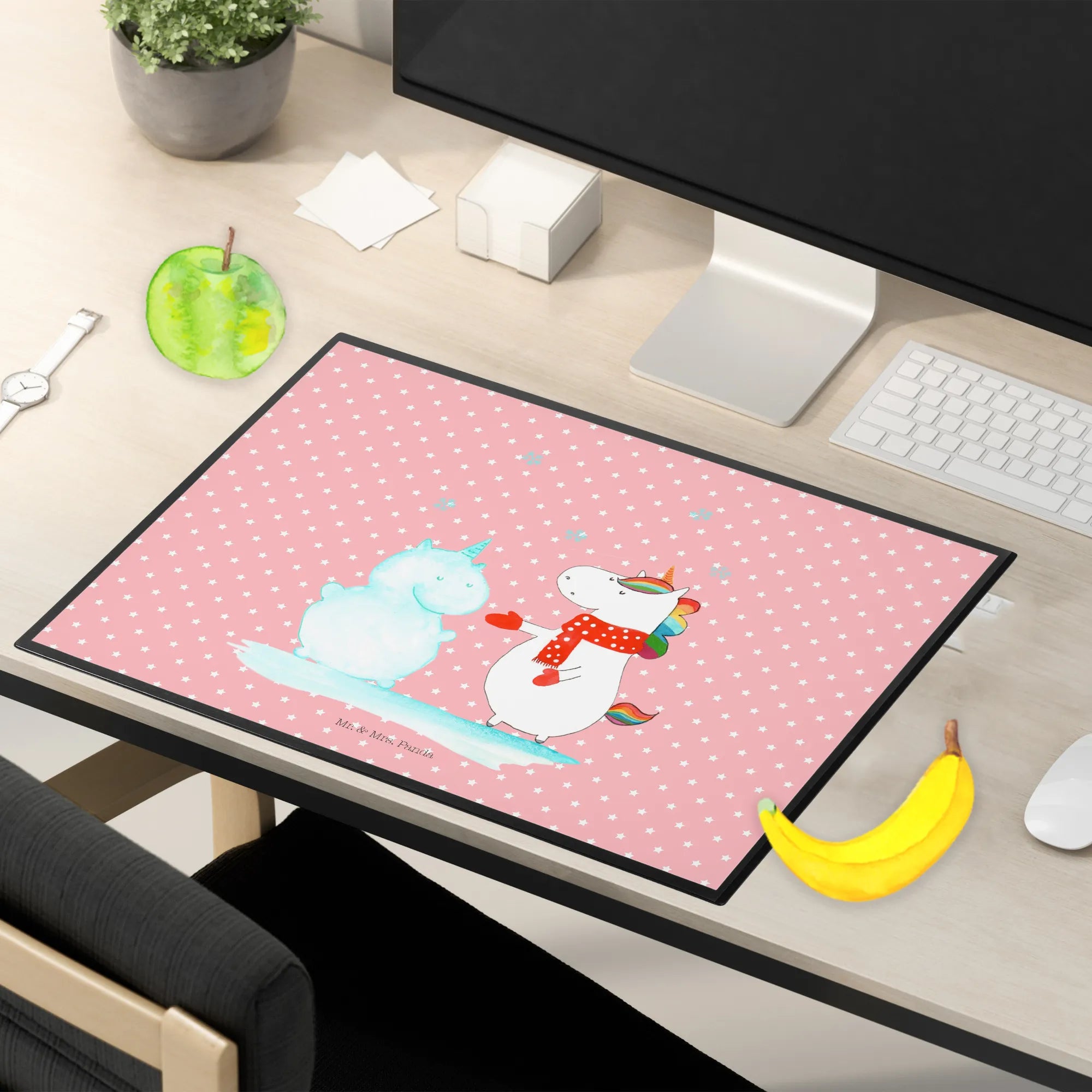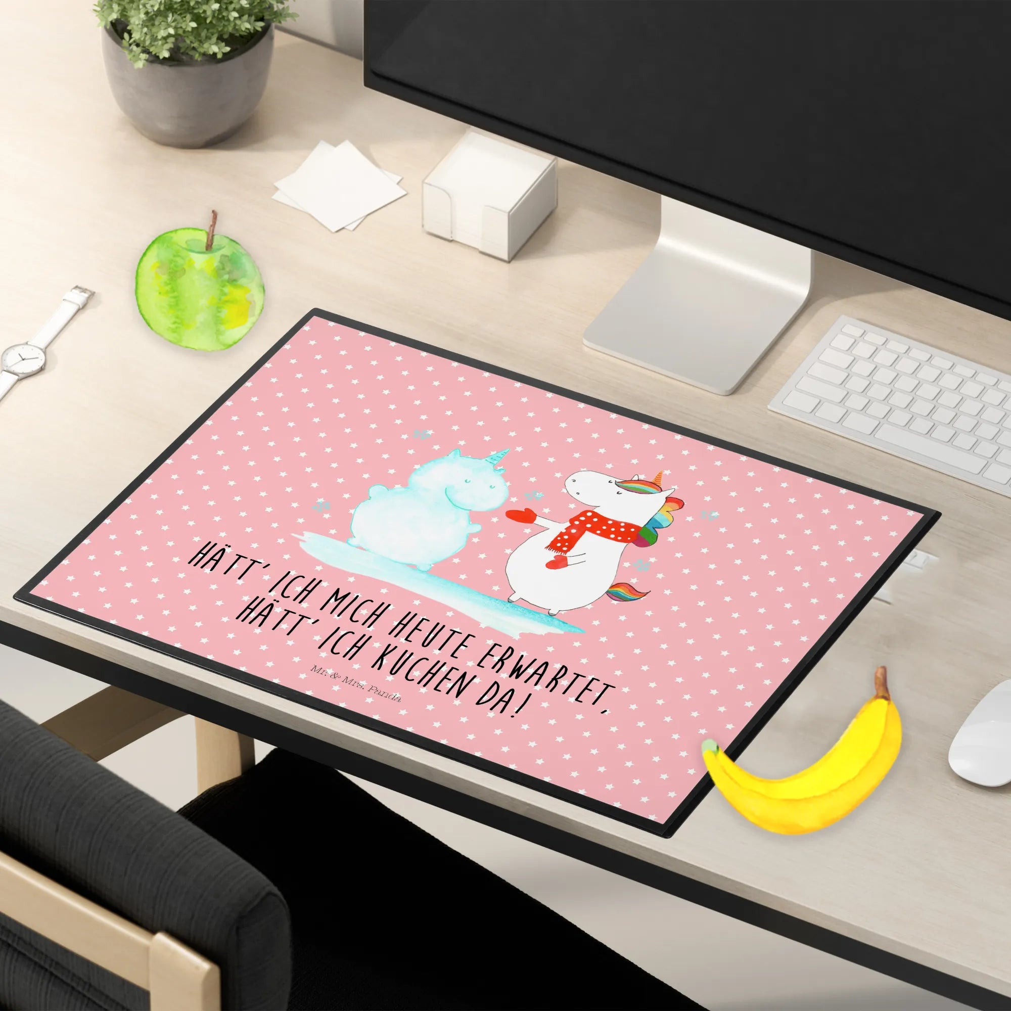 Schreibtischunterlage Einhorn Schneemann - mit Spruch - Rot Pastell