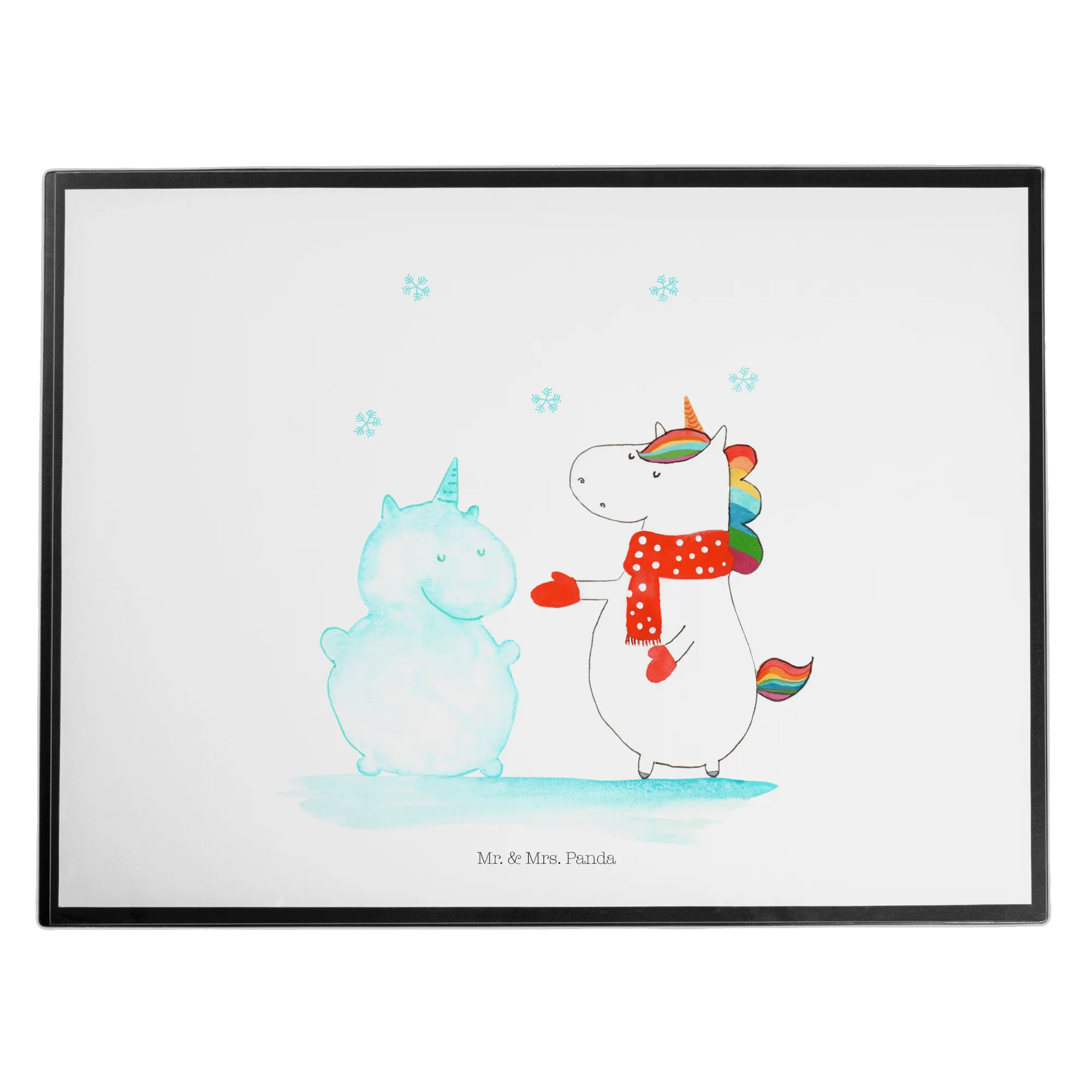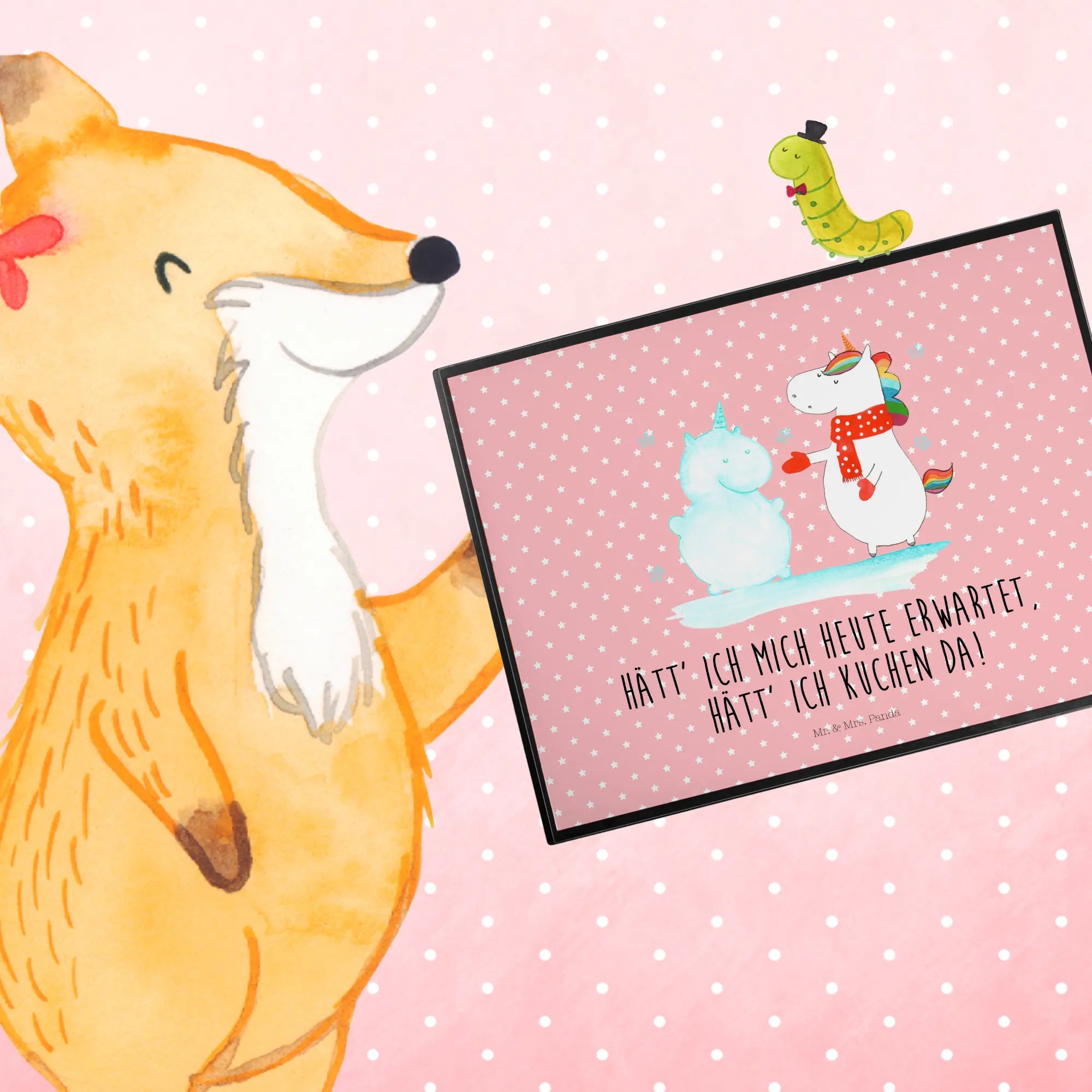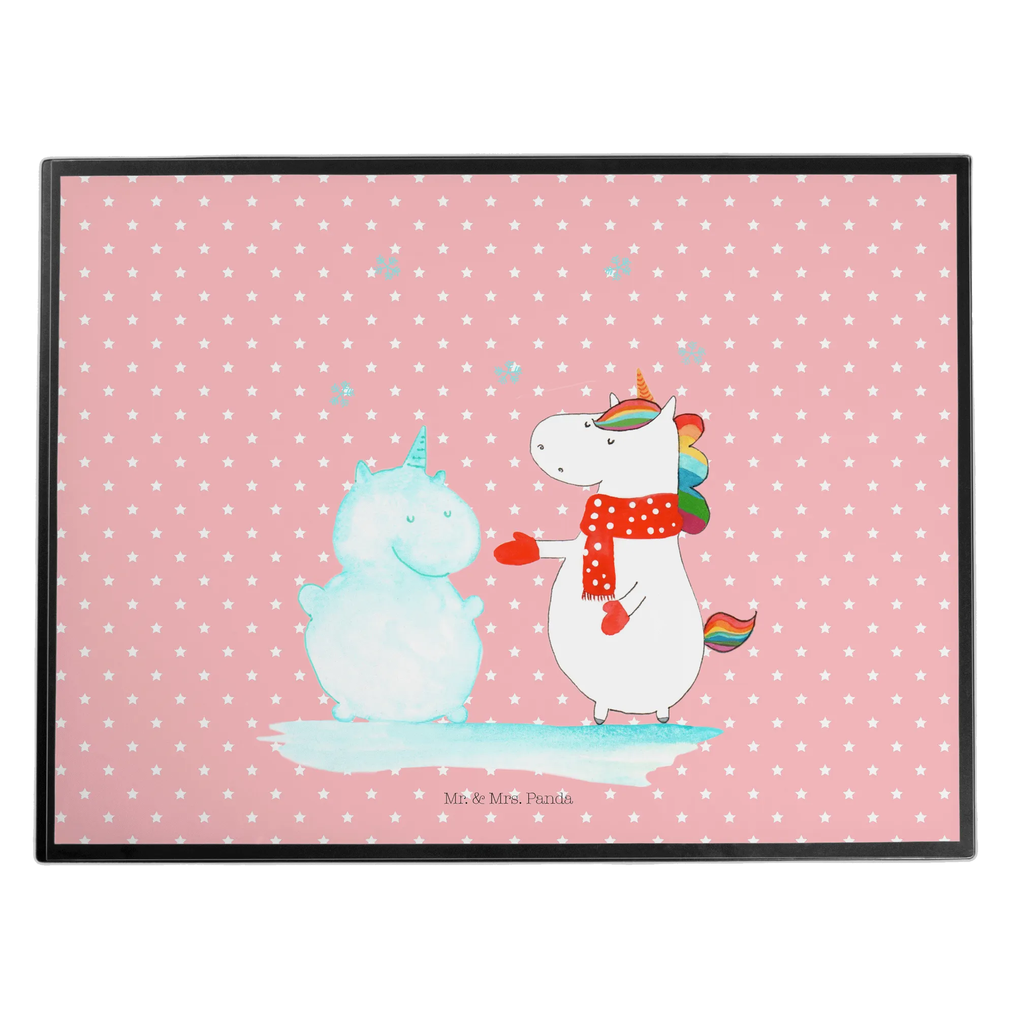 Schreibtischunterlage Einhorn Schneemann - mit Spruch - Rot Pastell