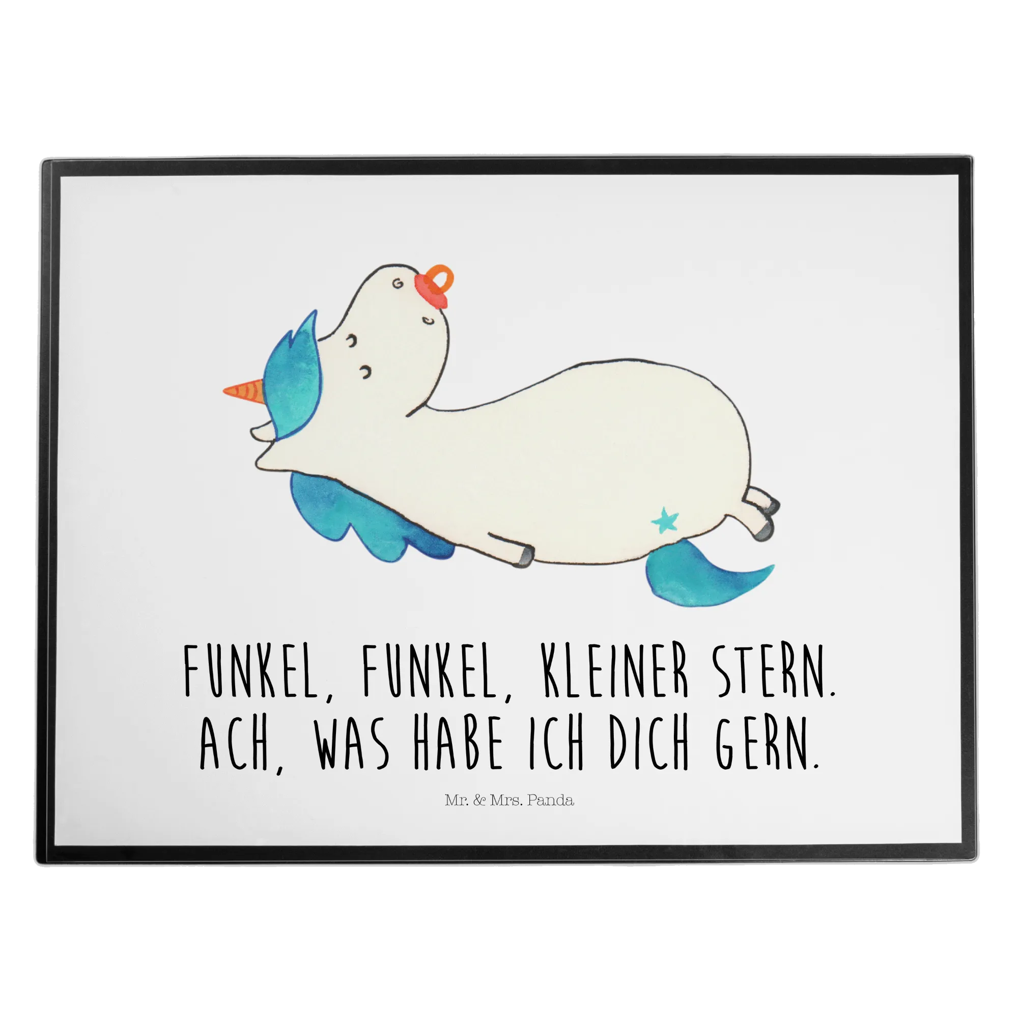 Das Einhorn Schnullie ist mehr als nur ein süßes Bild – es ist ein Symbol für Liebe und Fantasie. Mit einem Schnuller im Mund schläft unser kleines Einhorn zufrieden und bringt Menschen zum Schmunzeln. "Funkel, Funkel, kleiner Stern. Ach, was habe ich dich gern." beschreibt perfekt die Zuneigung, die Eltern für ihre kleinen Wunder empfinden. Wenn du nach einem einzigartigen Geschenk zur Geburt oder zum Geburtstag suchst, ist dieses Motiv genau das Richtige, um den Beginn eines neuen Lebens zu feiern und ganz viel Glück nach Hause zu bringen.