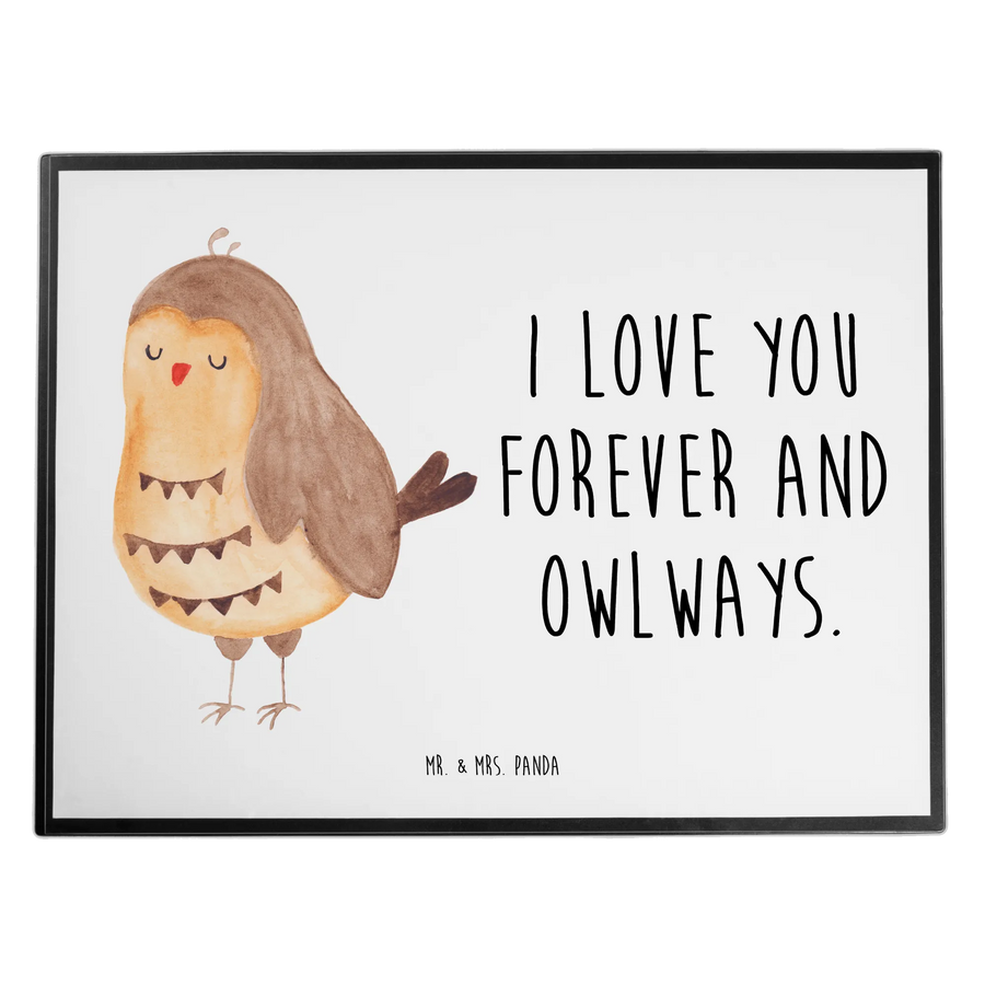 Schreibtischunterlage Eule Zufrieden - mit Spruch - Weiß