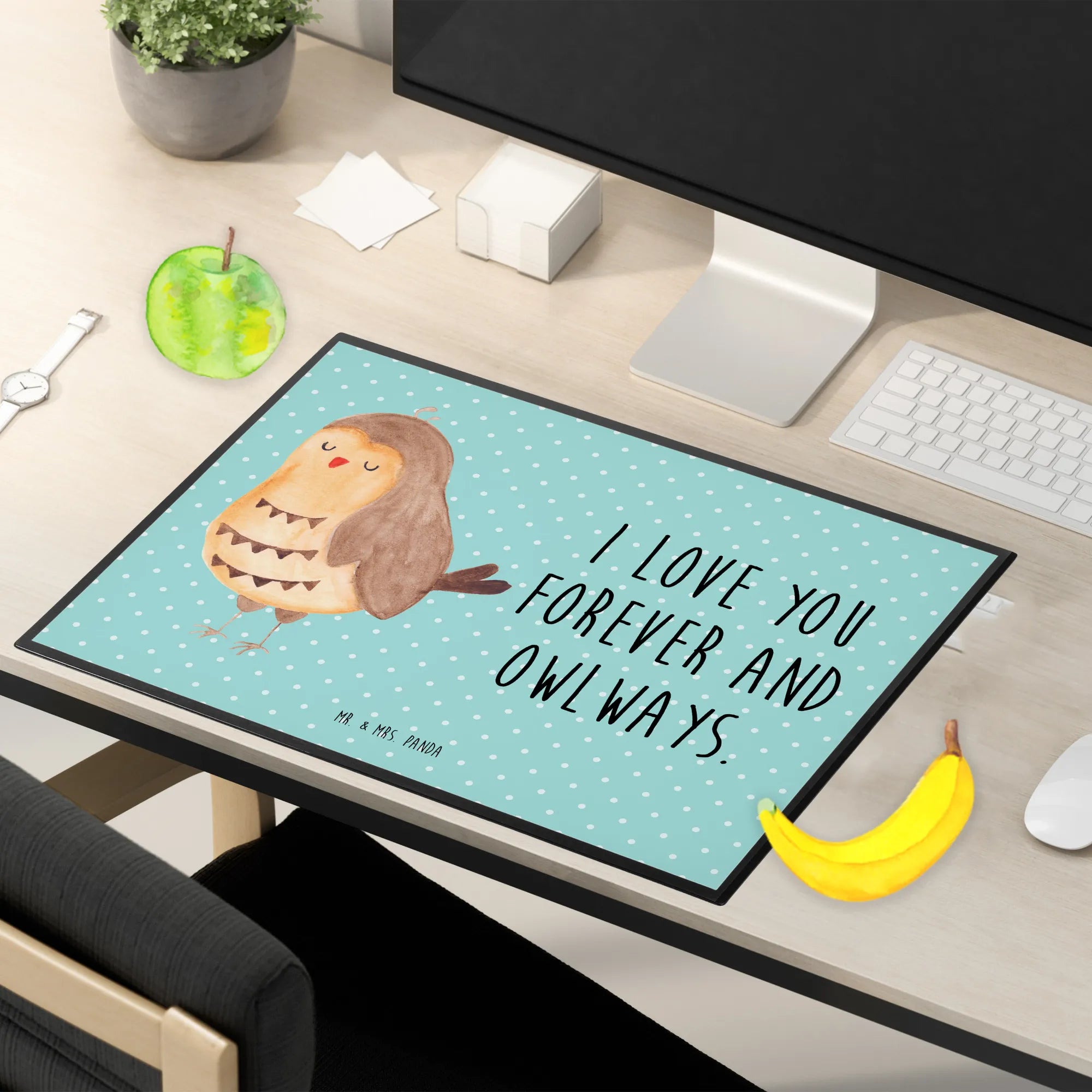 Gestalte deinen Arbeitsplatz mit der schönen Schreibtischunterlage von Mr. & Mrs. Panda neu und entdecke die Freude am Schreiben!
