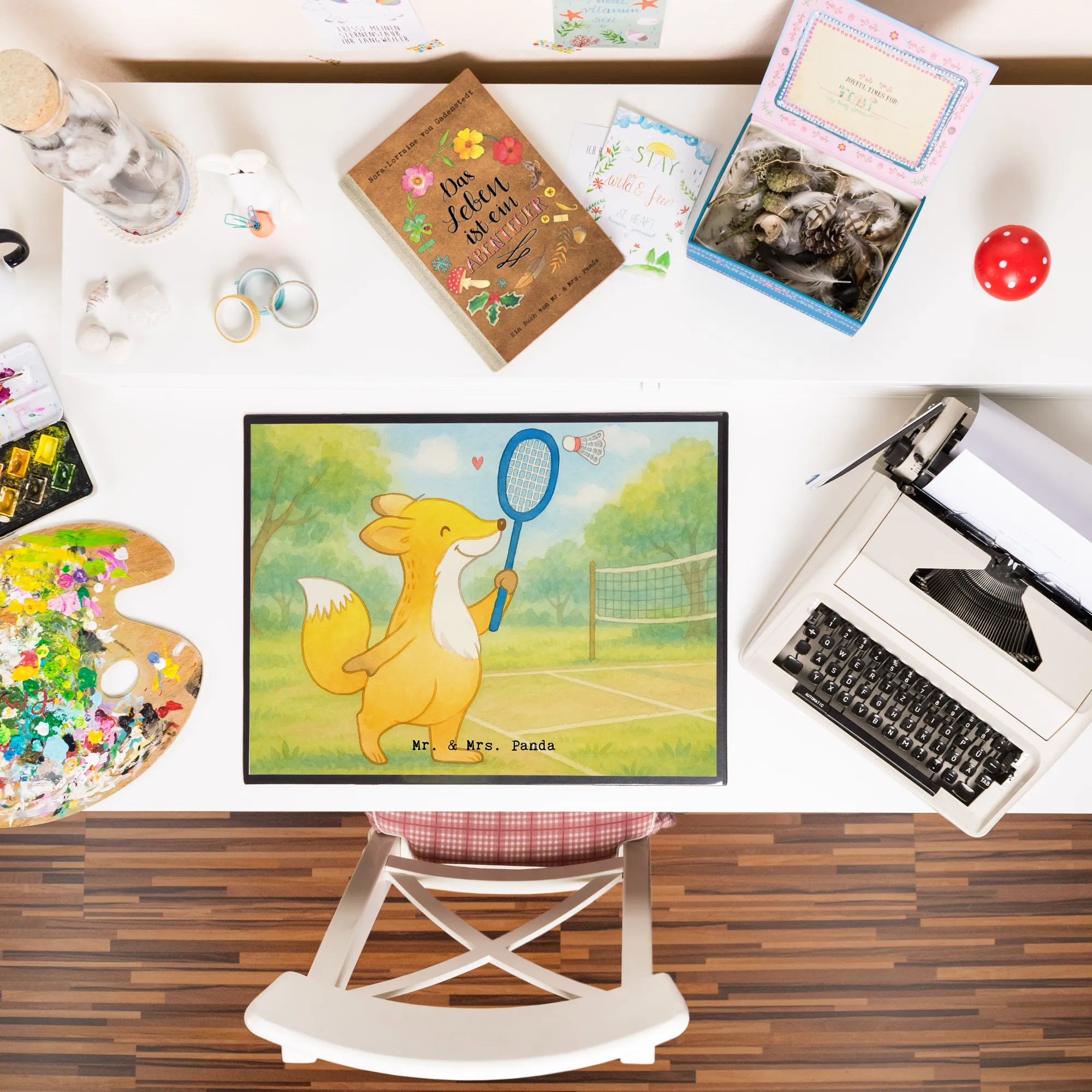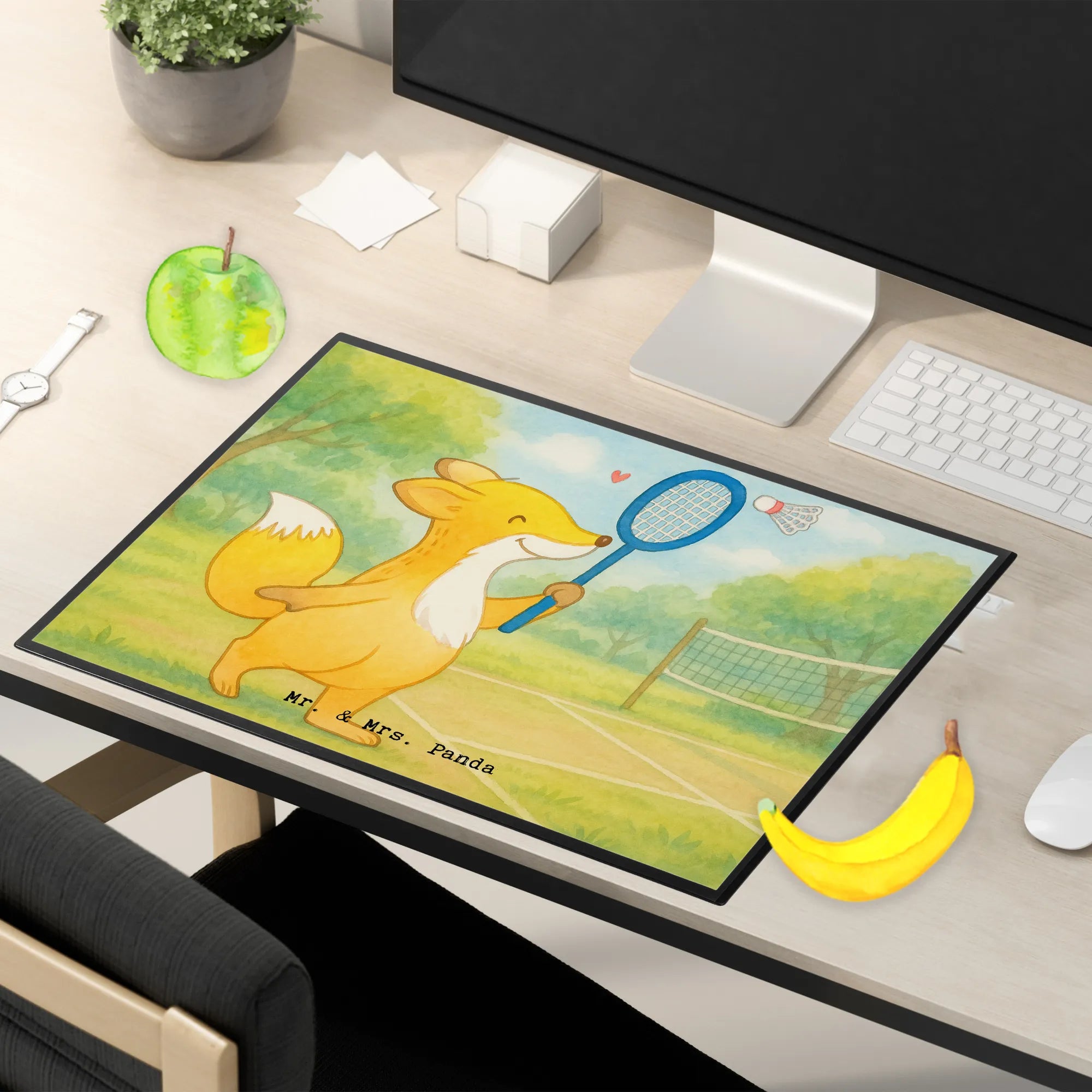 Schreibtischunterlage Fuchs Federball spielen Design