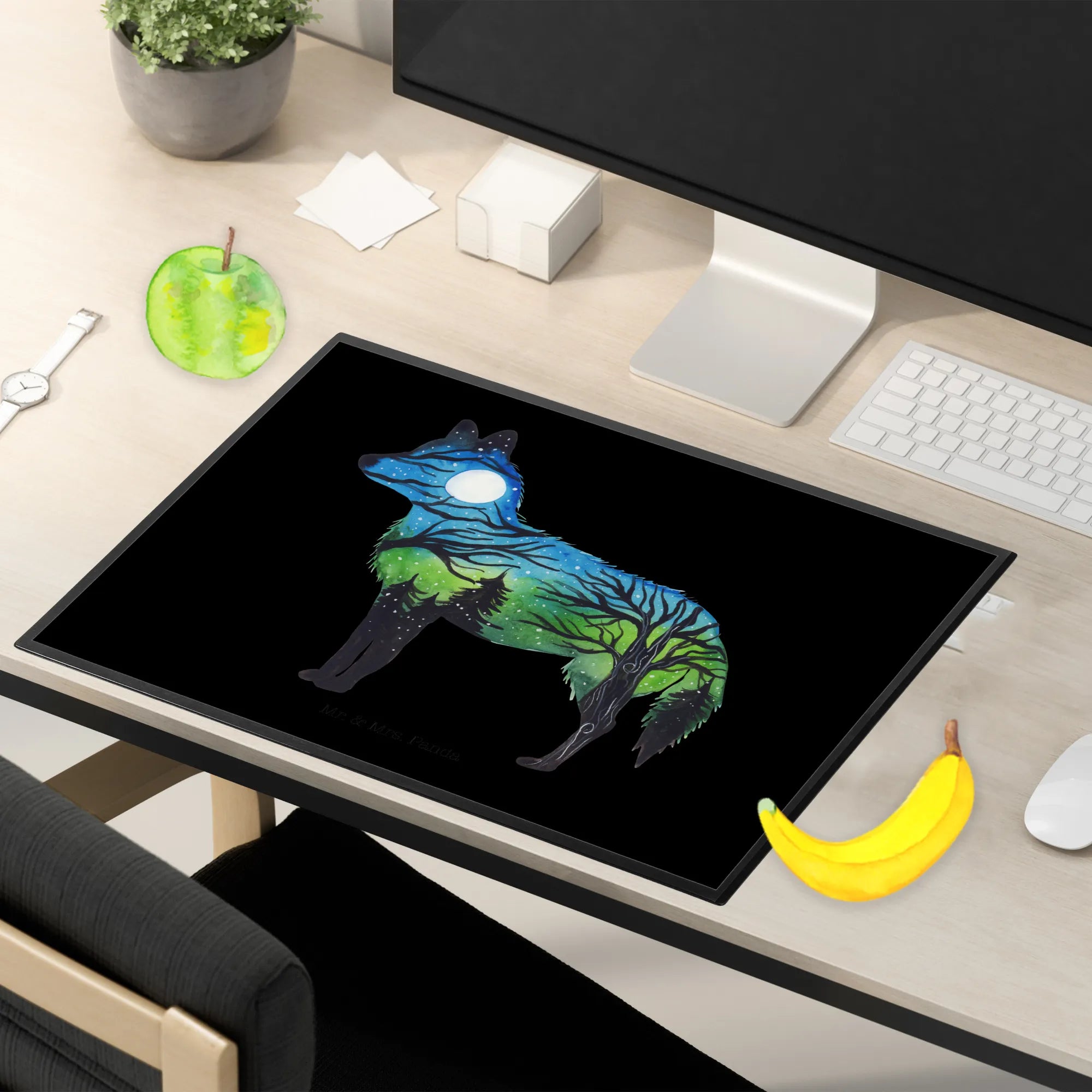 Die obere Hälfte des Fuchses leuchtet in tiefen Blautönen des nächtlichen Himmels, während die untere Hälfte grüne Wiesen und Wälder darstellt, die Ruhe und Freiheit vermitteln. Die Schreibtischunterlage hat die ideale Größe von 400 mm x 530 mm und ist aus hochwertigem, rutschfestem Zellkautschuk "Made in Germany" gefertigt, damit sie stets an ihrem Platz bleibt und dir treue Dienste leistet.