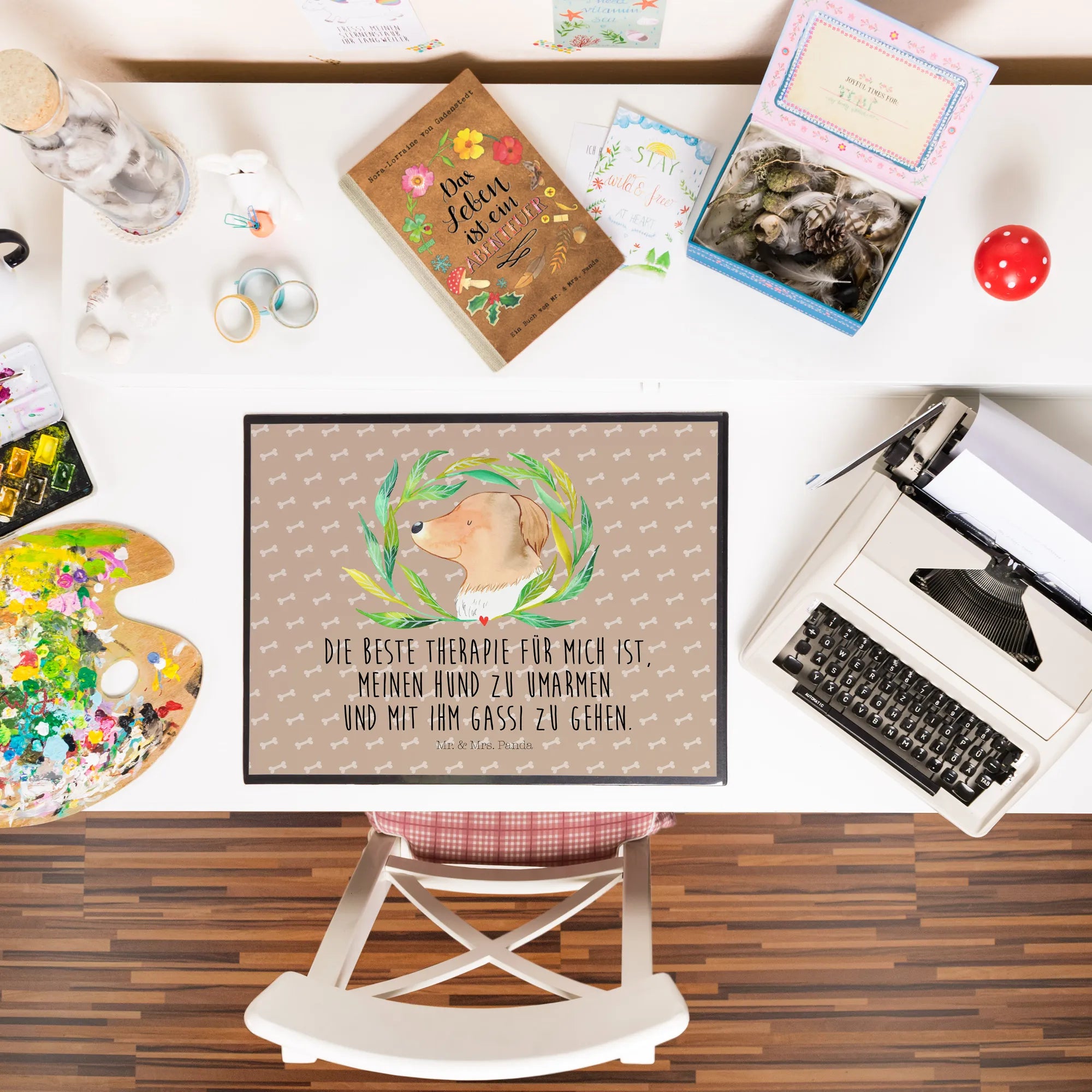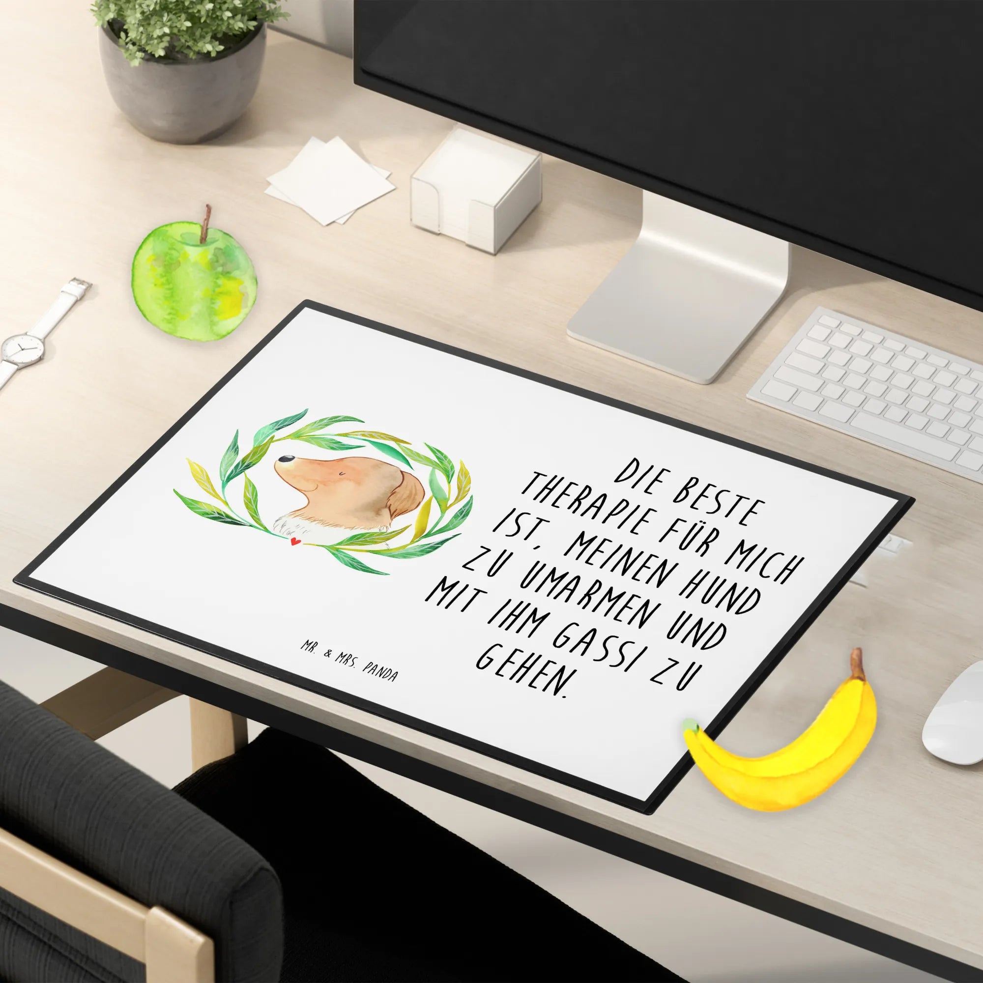 Schreibtischunterlage Hund Blumen - mit Spruch - Hundeglück