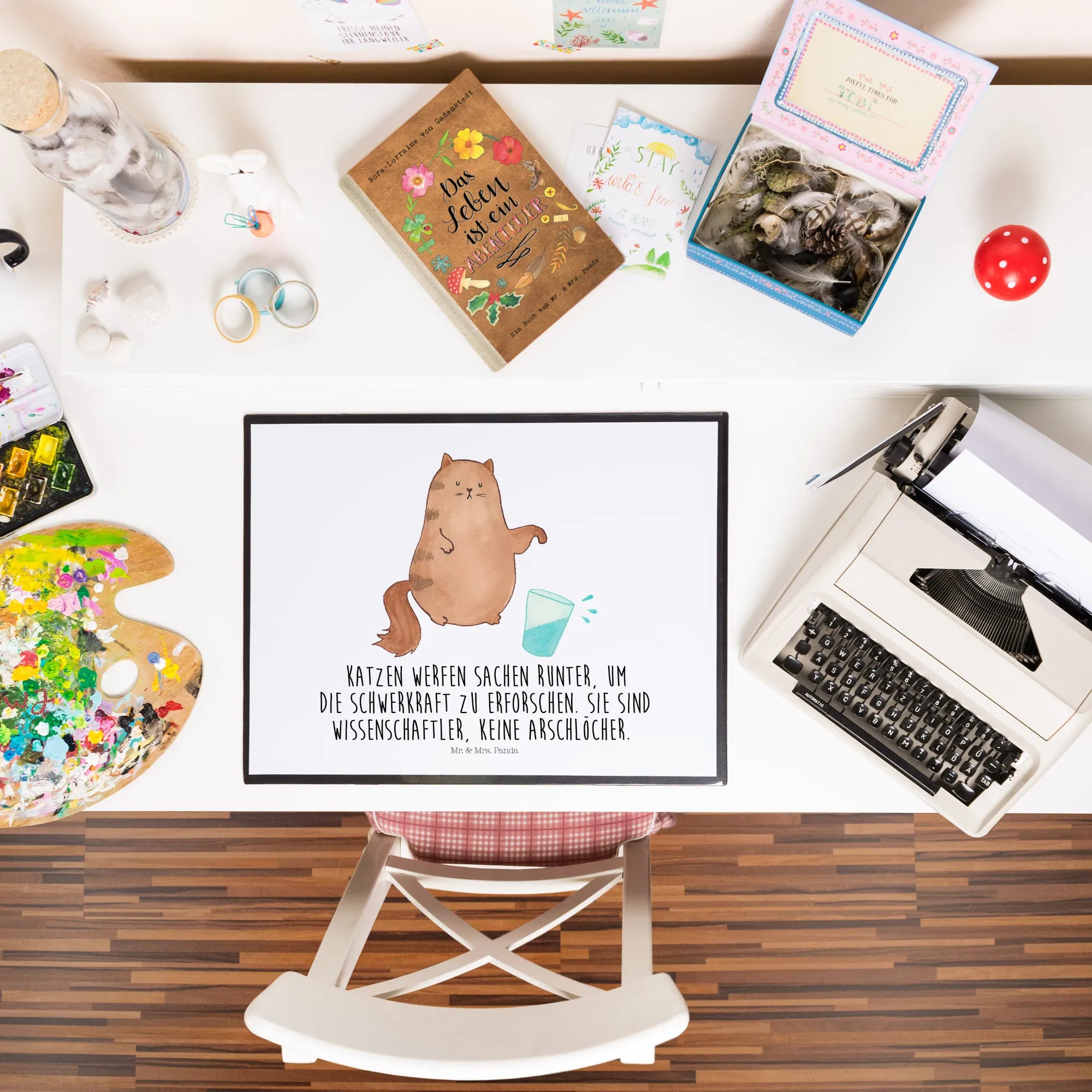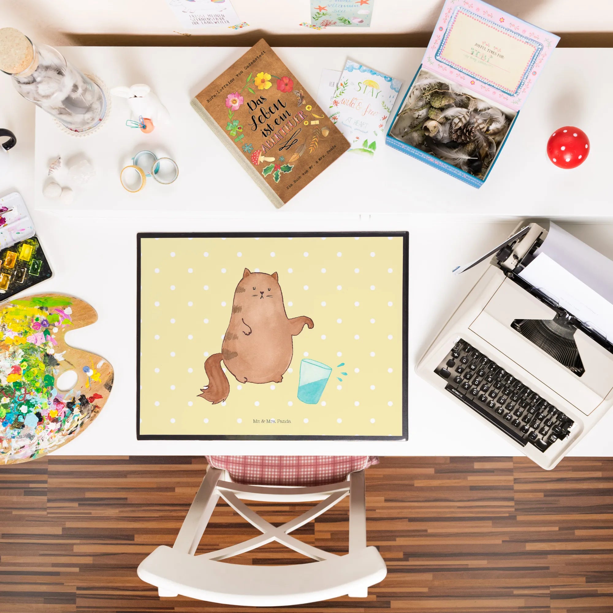 Sie ist nicht nur funktional, sondern bringt auch Freude und einen Hauch von Humor in den Arbeitsalltag. Hol Dir die Schreibtischunterlage Katze Wasserglas von Mr. & Mrs. Panda und verwandle deinen Arbeitsplatz in eine kreative Oase, die entfernt von stressigen Bürokräften ist. Lass Dich verzaubern von der süßen Katzenmotiven, die Dir täglich ein Lächeln ins Gesicht zaubern werden.