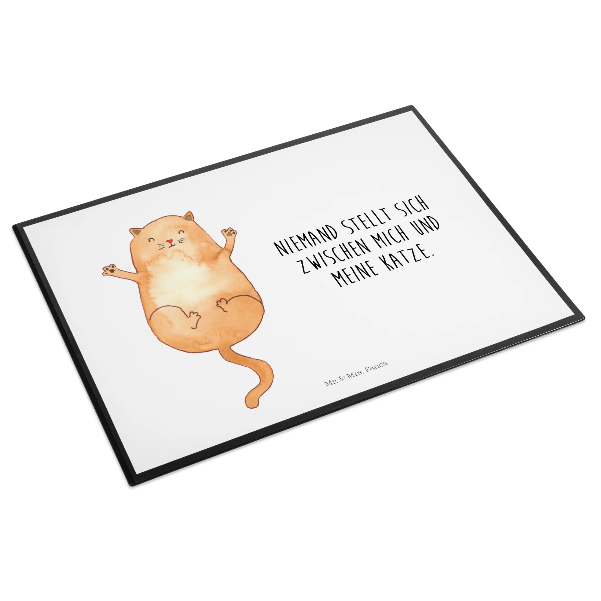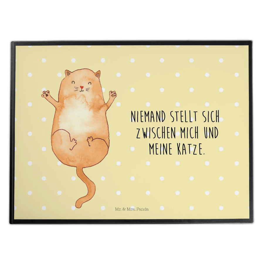 Schreibtischunterlage Katze Umarmen - mit Spruch - Gelb Pastell
