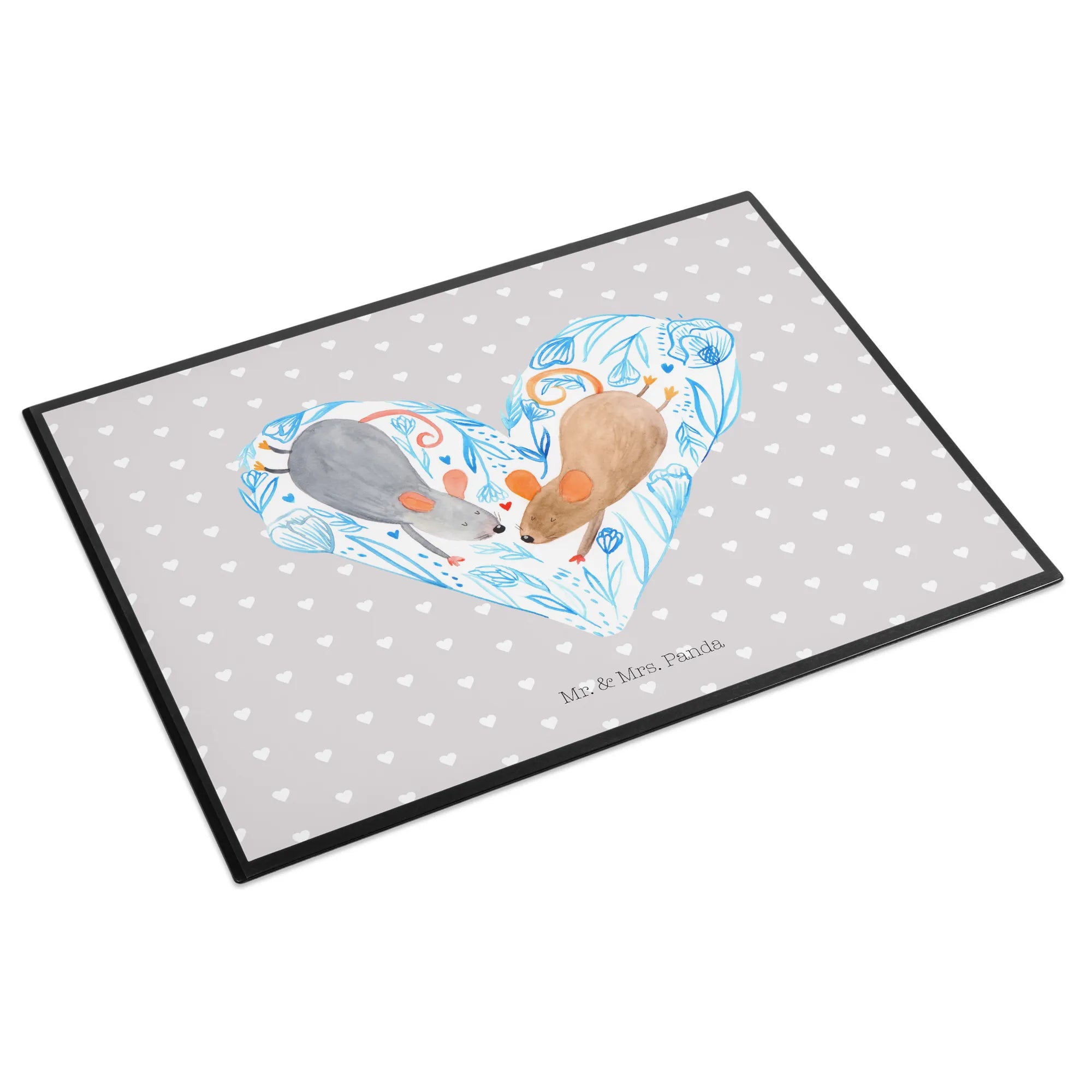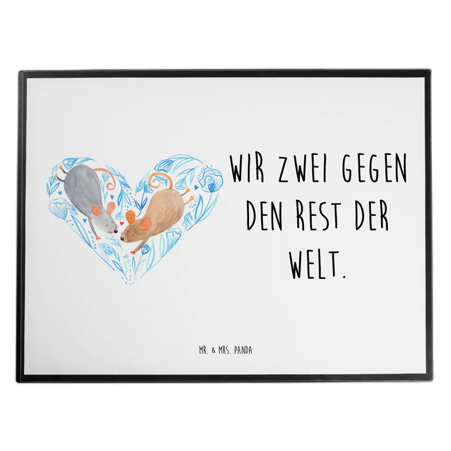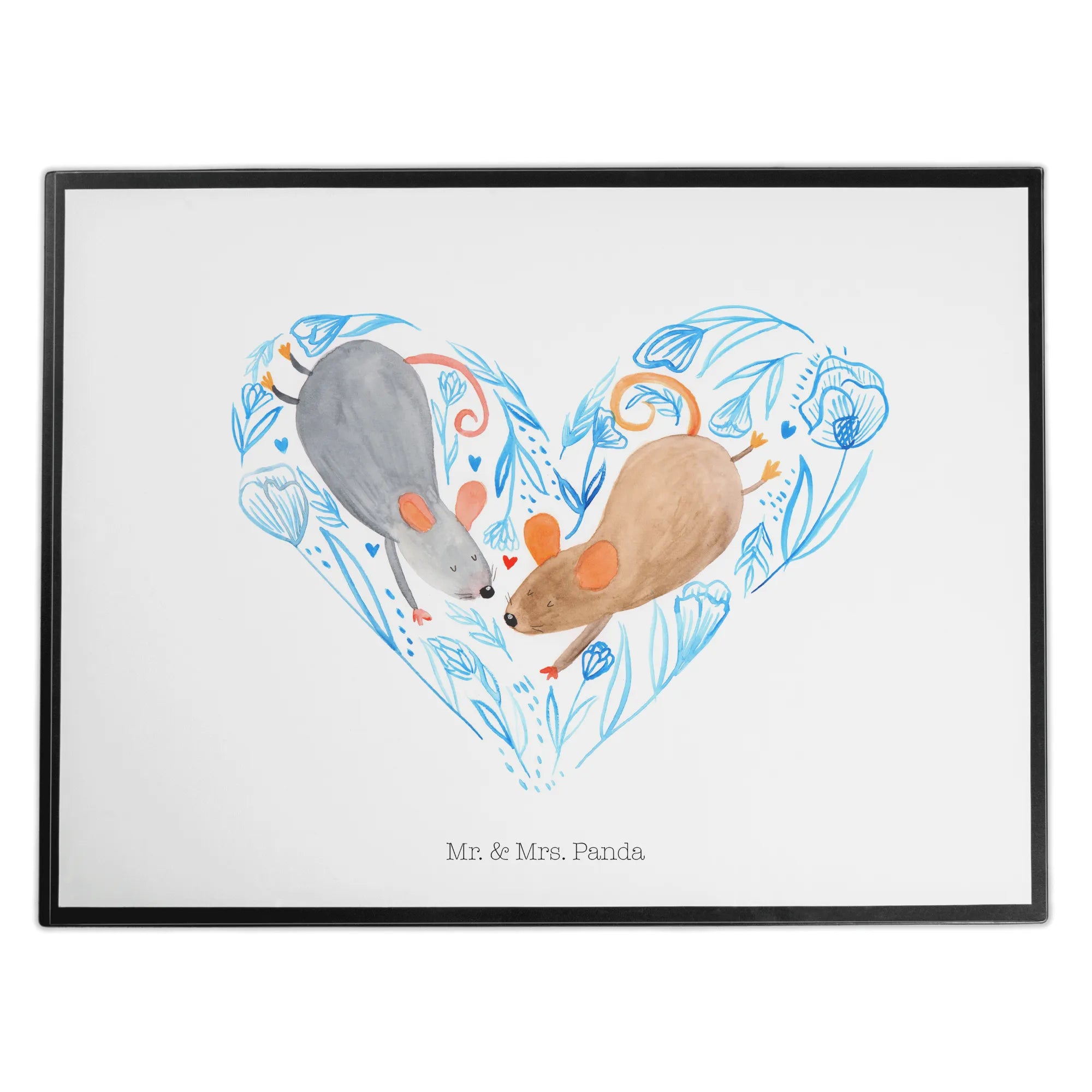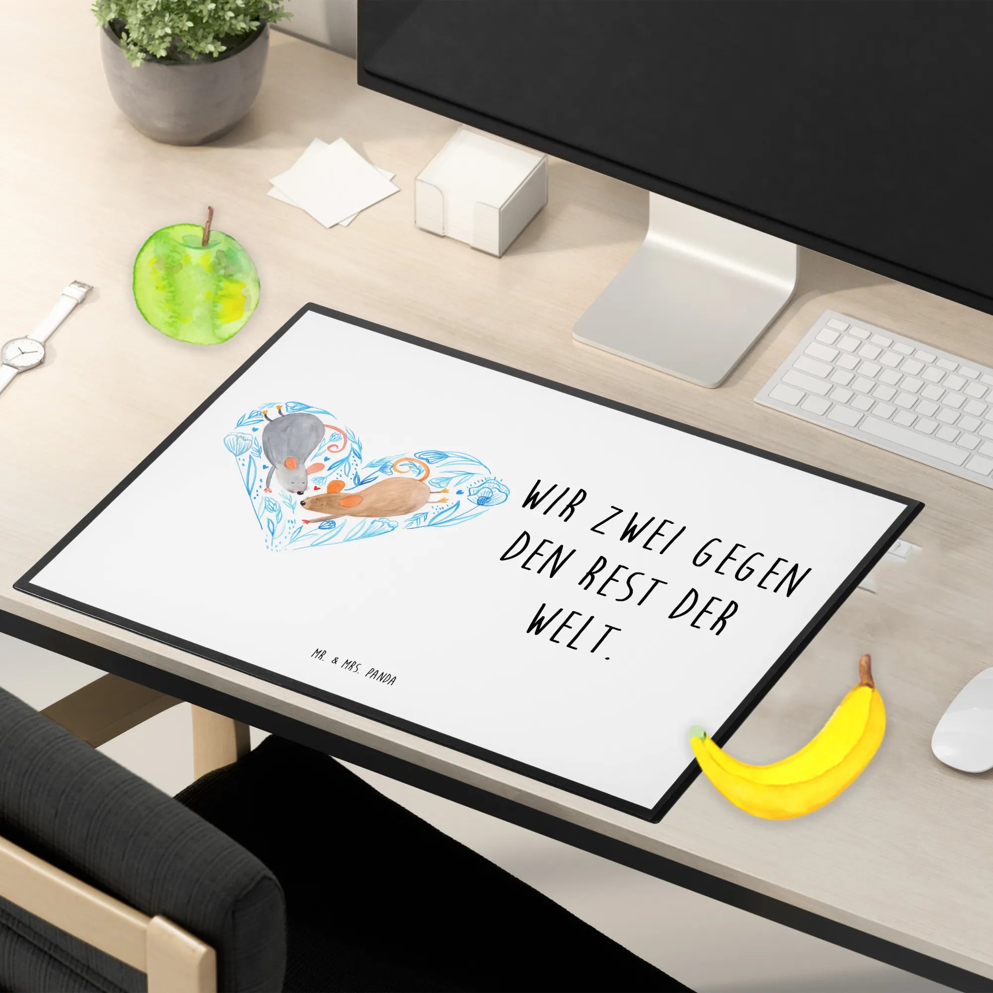 Schreibtischunterlage Mäuse Herz - mit Spruch - Weiß