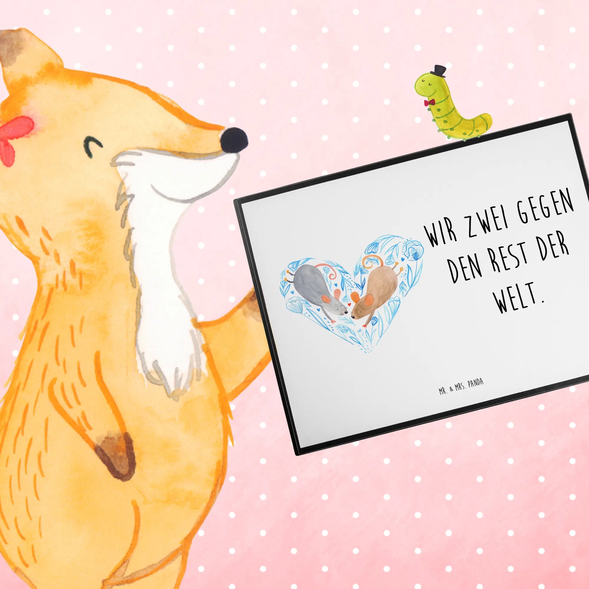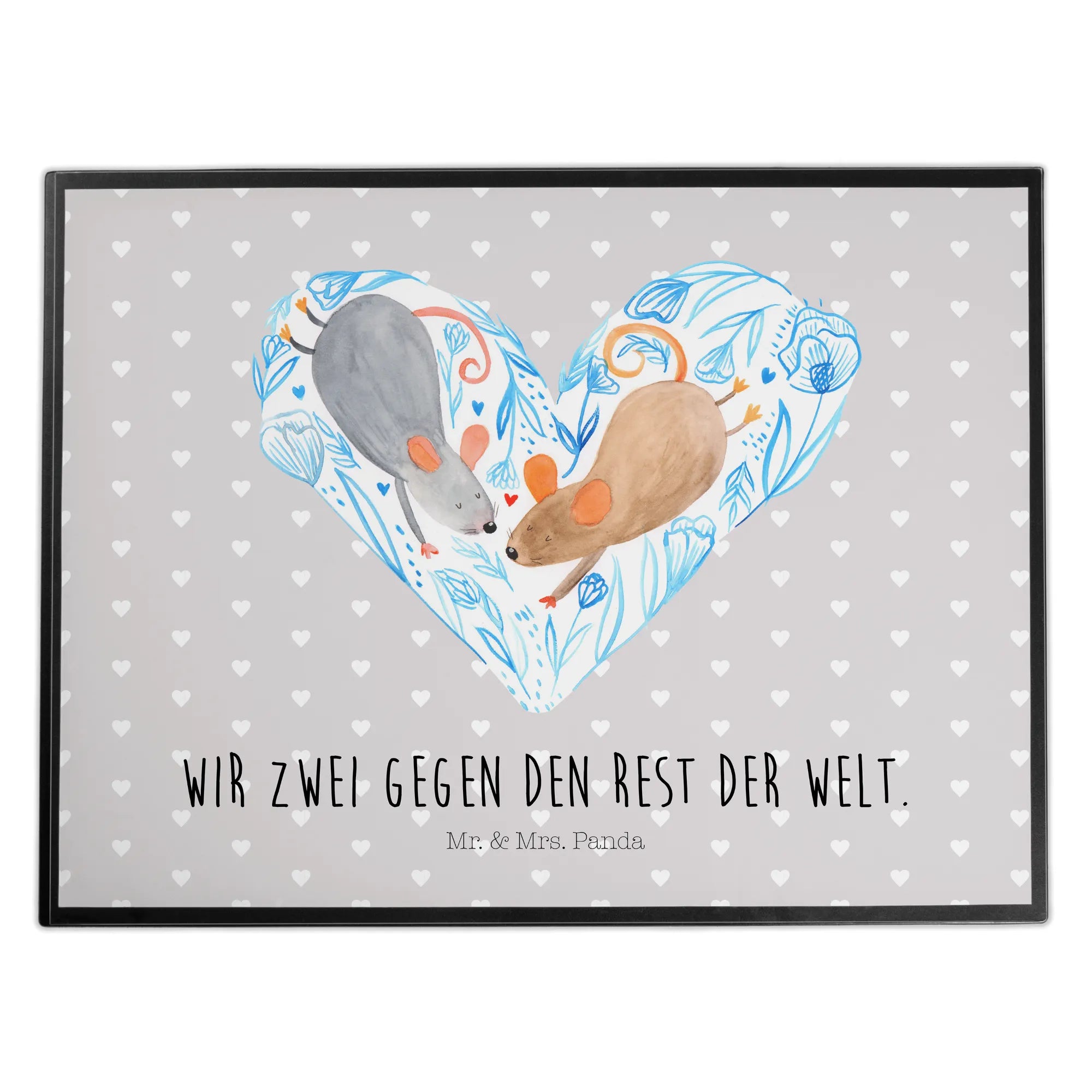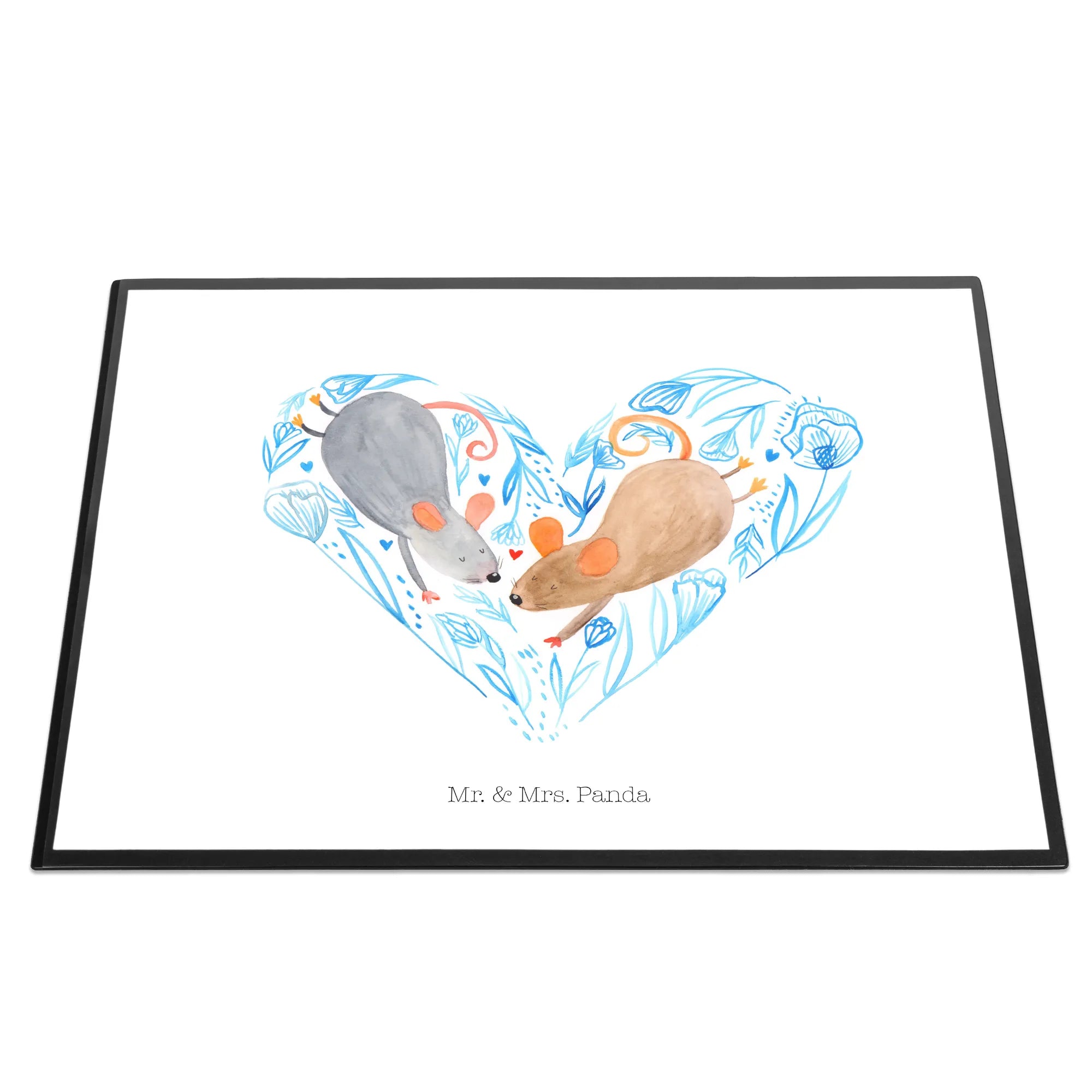 Schreibtischunterlage Mäuse Herz - mit Spruch - Weiß