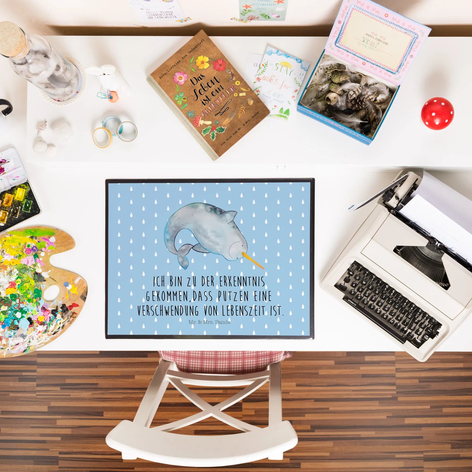 Kunden suchen: mit Motiv, Bürobedarf, mit Spruch, Narwal, aufräumen, Meer, Kinderzimmer, Meerestiere, Urlaub, Schreibunterlage, Schreibtischauflage, Schreibwaren, Junggesellin, Büroartikel, Unterlage, Wal, Putzen, Hausfrau