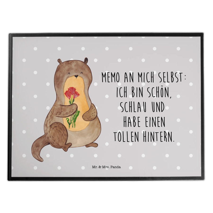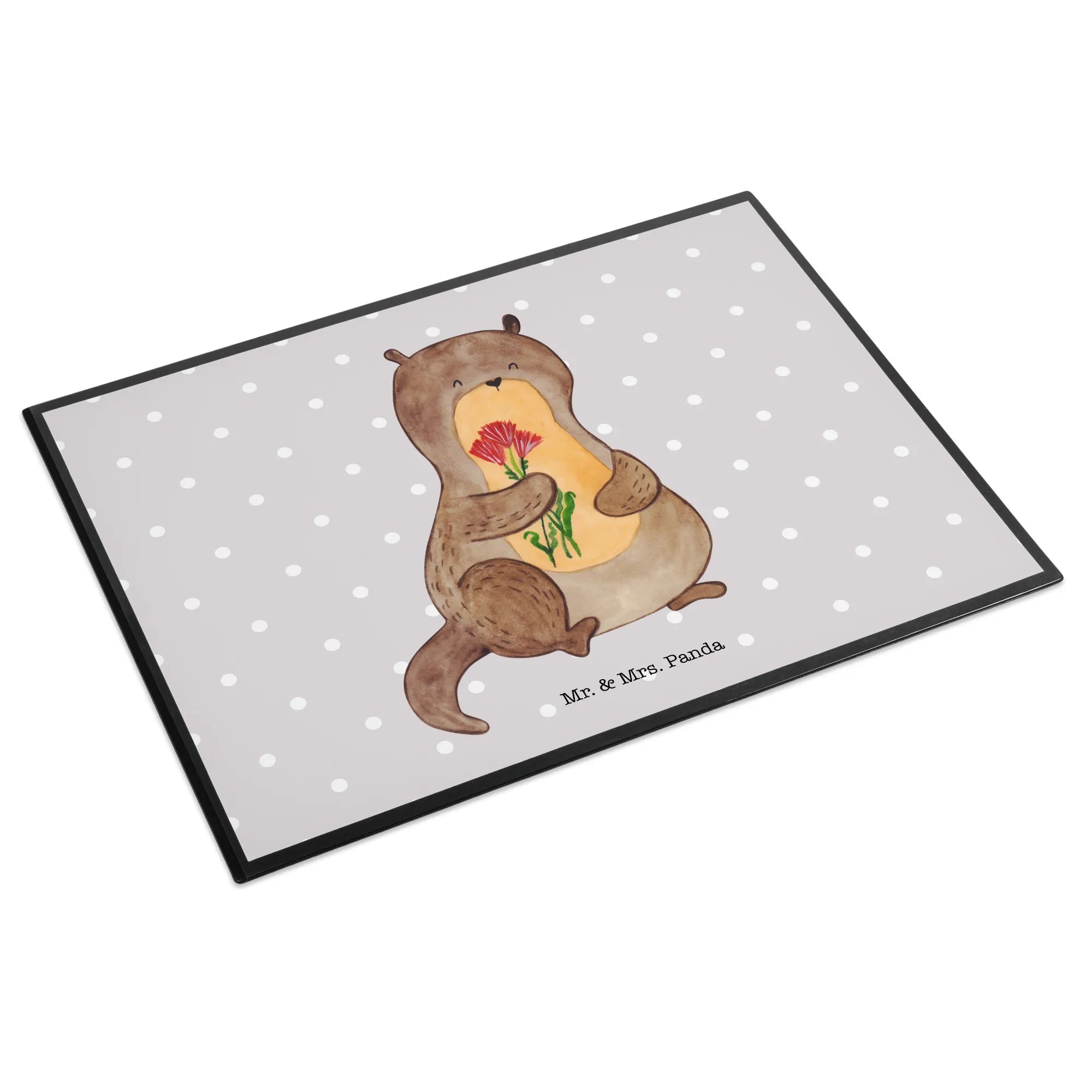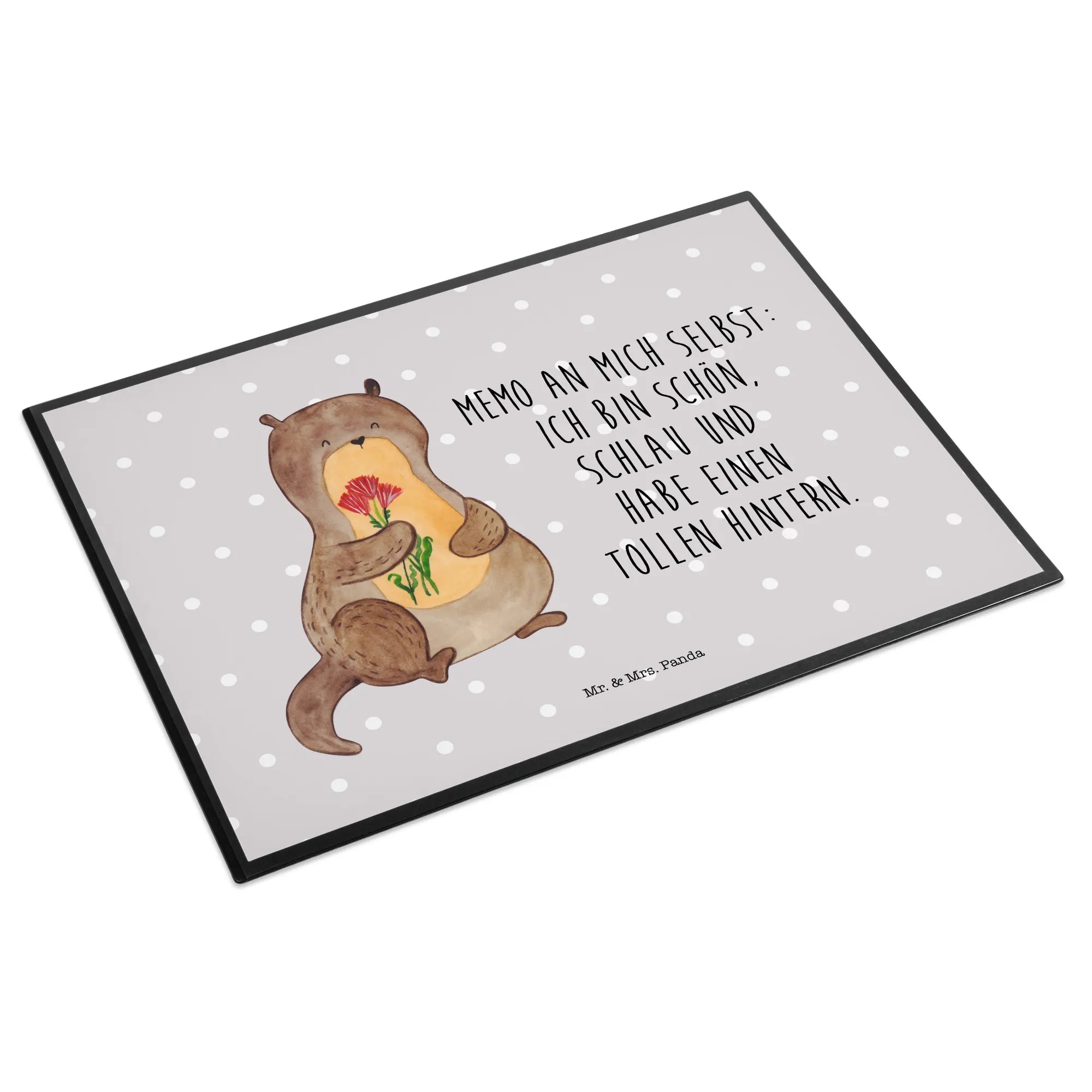 Schreibtischunterlage Otter Blumenstrauß - mit Spruch - Grau Pastell