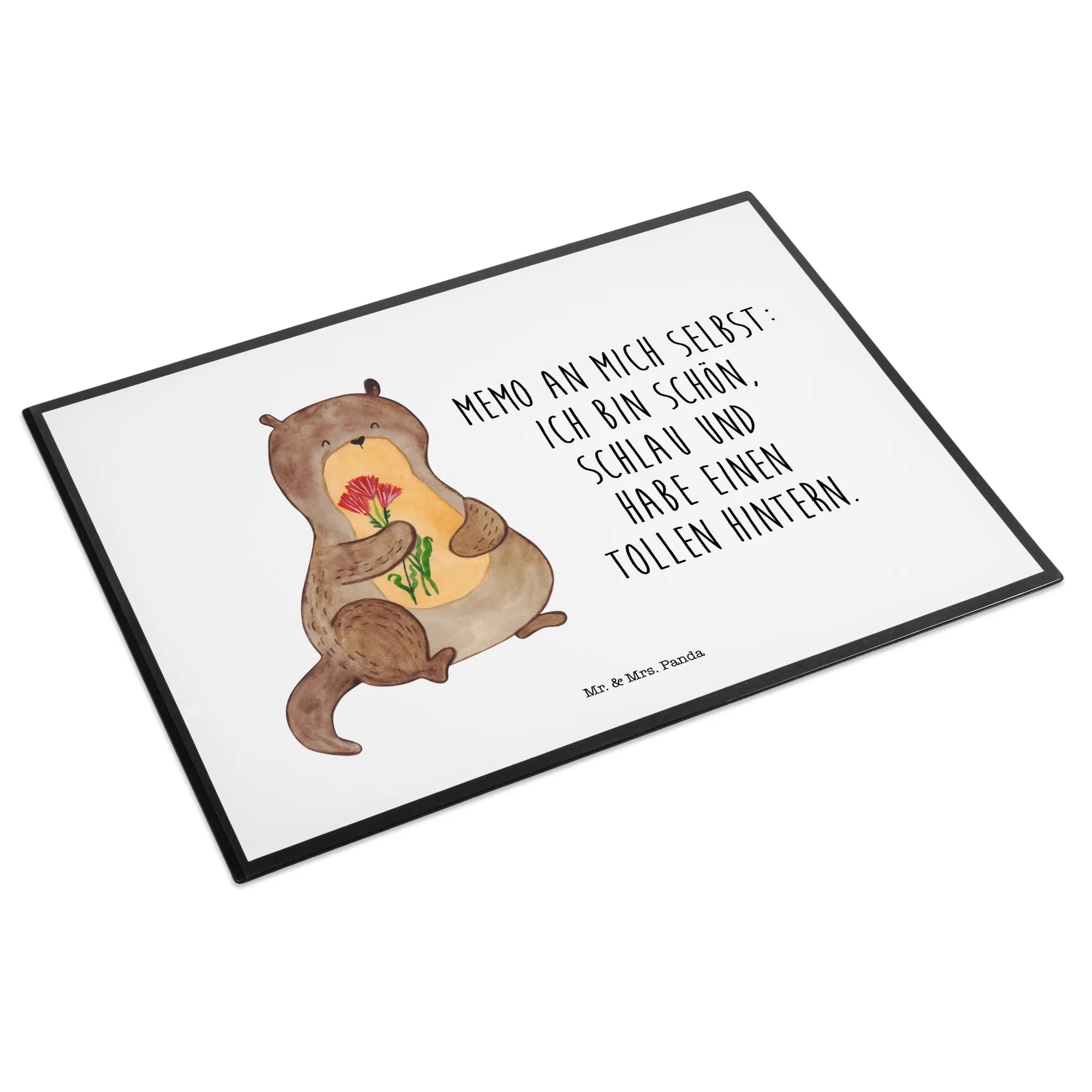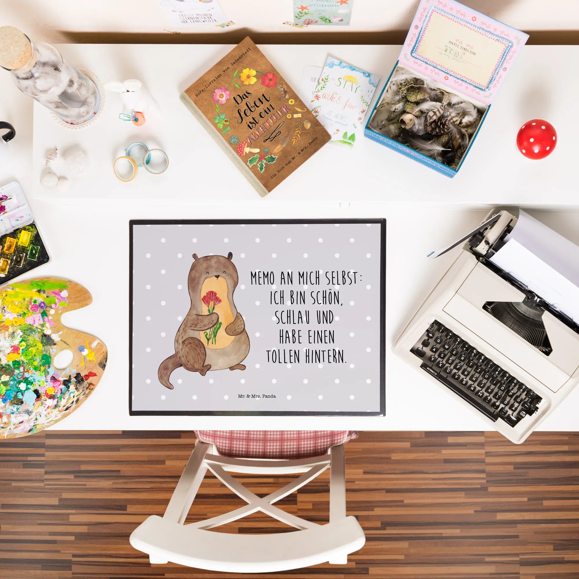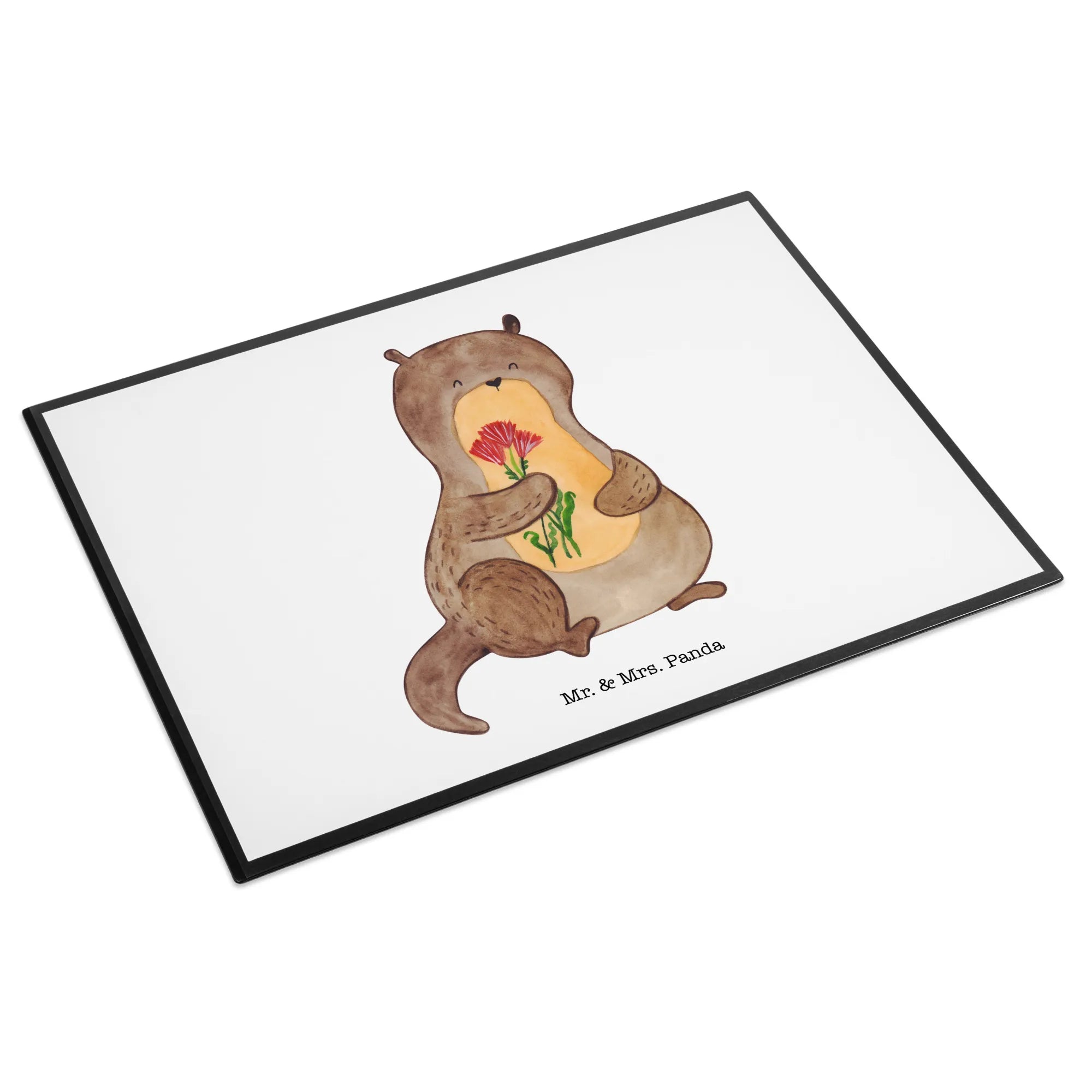 Schreibtischunterlage Otter Blumenstrauß - mit Spruch - Grau Pastell