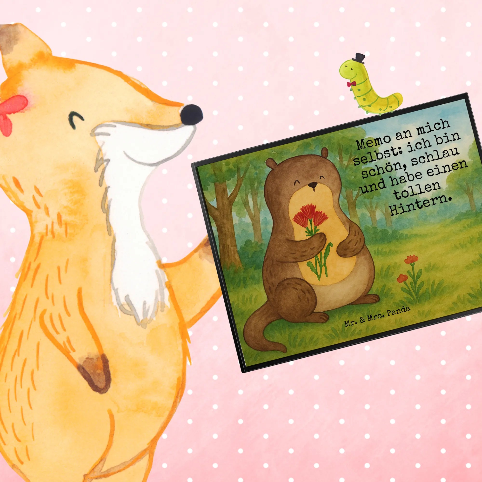 Vergiss nicht, dir selbst hin und wieder eine Portion Liebe zukommen zu lassen, genau wie unser freundlicher Otter mit seinem Blumenstrauß. Dieser kleine Seeotter, eingefangen in einem liebevollen Moment des Selbstbewusstseins mit Mr. & Mrs. Panda, ist ein Symbol der Selbstakzeptanz. Voller Stolz trägt er seinen Blumenstrauß, als Memo an sich selbst und an uns: 'Ich bin schön, schlau und habe einen tollen Hintern.' Es ist eine Aufforderung, sich selbst zu feiern, sich selbst Liebe und Anerkennung zu schenken. Die Kunst, sich selbst Komplimente zu machen, ist wichtig für ein positives Selbstbild und genau diese Botschaft möchten wir mit unserem Motiv vermitteln. Lass diesen entzückenden Otter dich daran erinnern, dass du genau so, wie du bist, vollkommen bist. Die Kombination aus der Verspieltheit des Otters und der Tiefe des Slogans kreiert ein Bild, das nicht nur das Auge erfreut, sondern auch das Herz berührt.