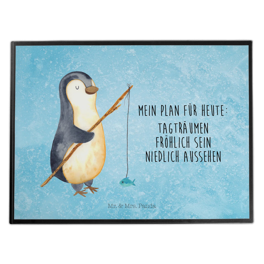 Schreibtischunterlage Pinguin Angler - mit Spruch - Eisblau