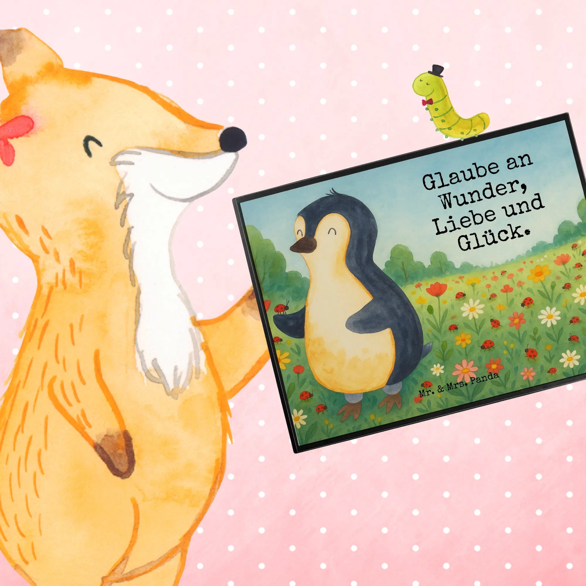 Mach deinen Schreibtisch zum Lieblingsplatz! Der niedliche Pinguin mit dem freudigen Marienkäfer auf seiner Flosse bringt frischen Wind und gute Laune in deinen Alltag. Der liebevoll gestaltete Spruch „Glaube an Wunder, Liebe und Glück.“ begleitet dich dezent beim Arbeiten, Lernen oder Basteln und zaubert dir immer wieder ein Lächeln ins Gesicht. 😊