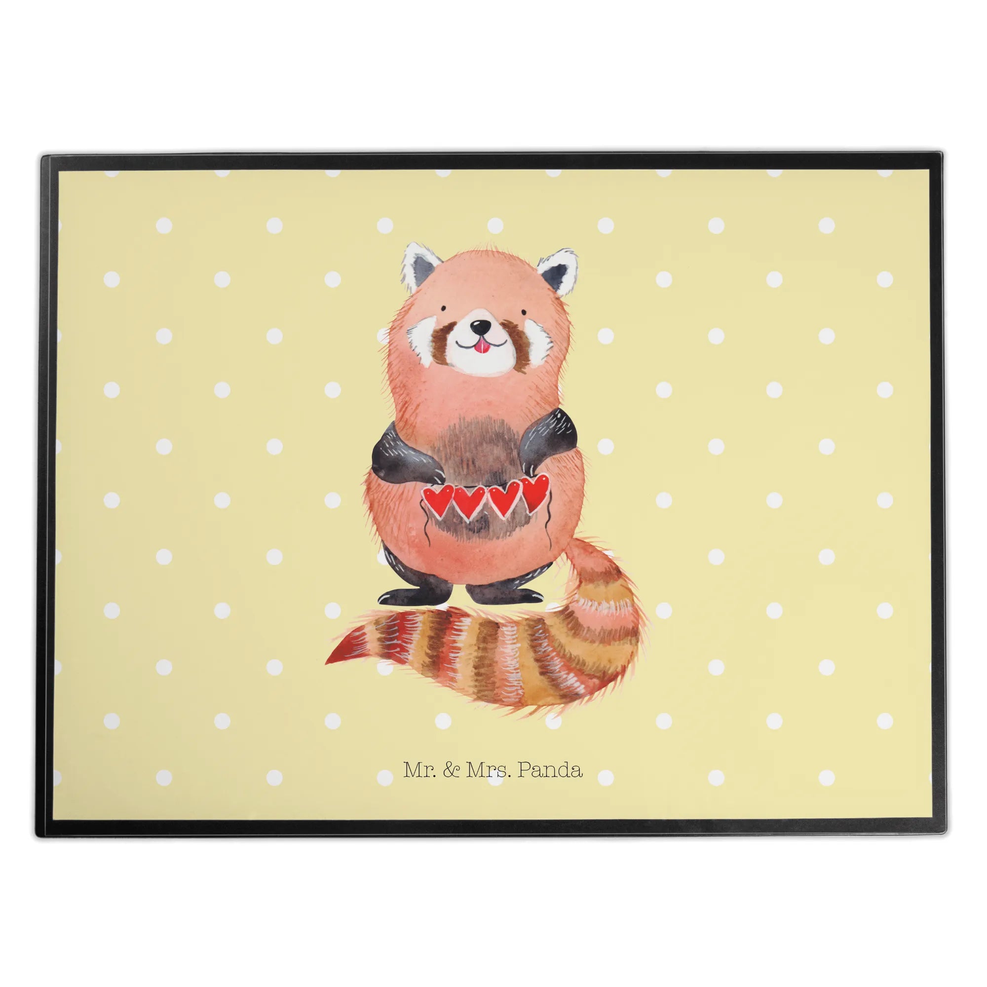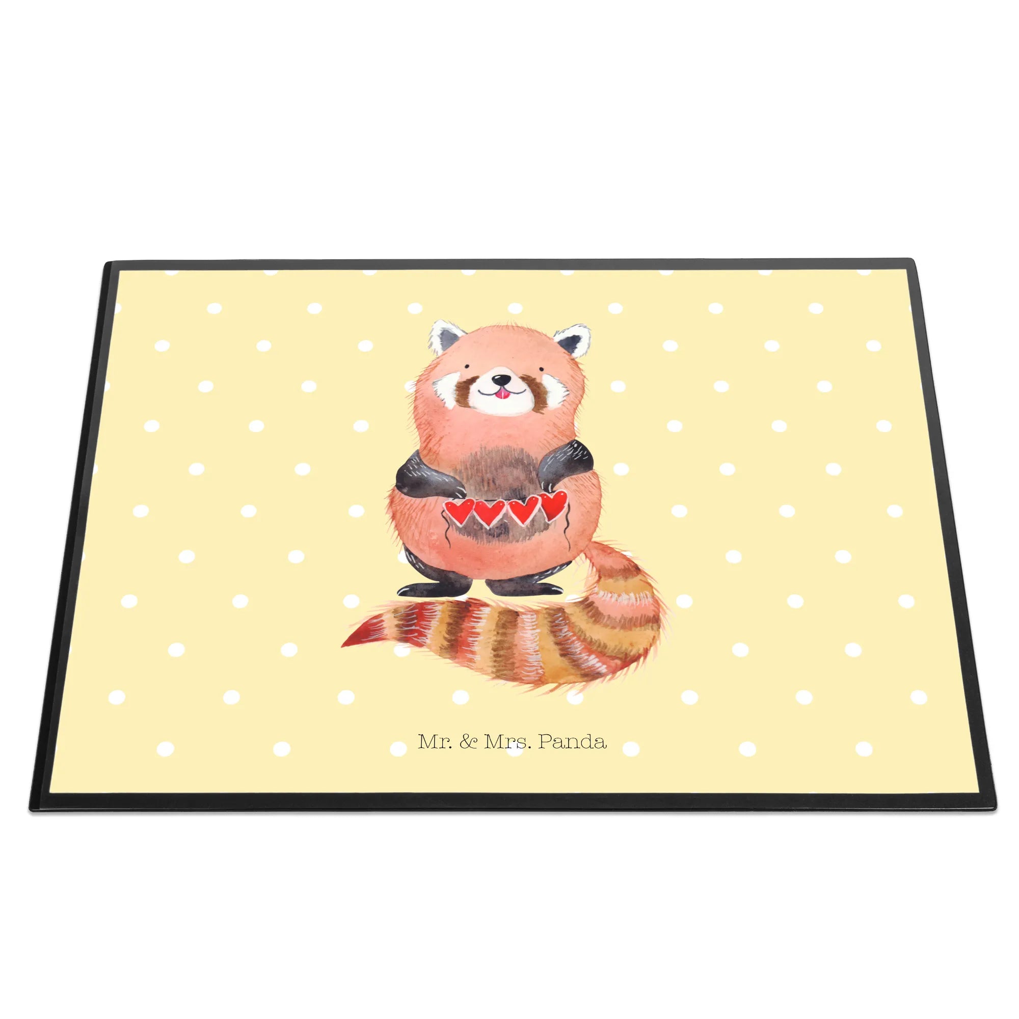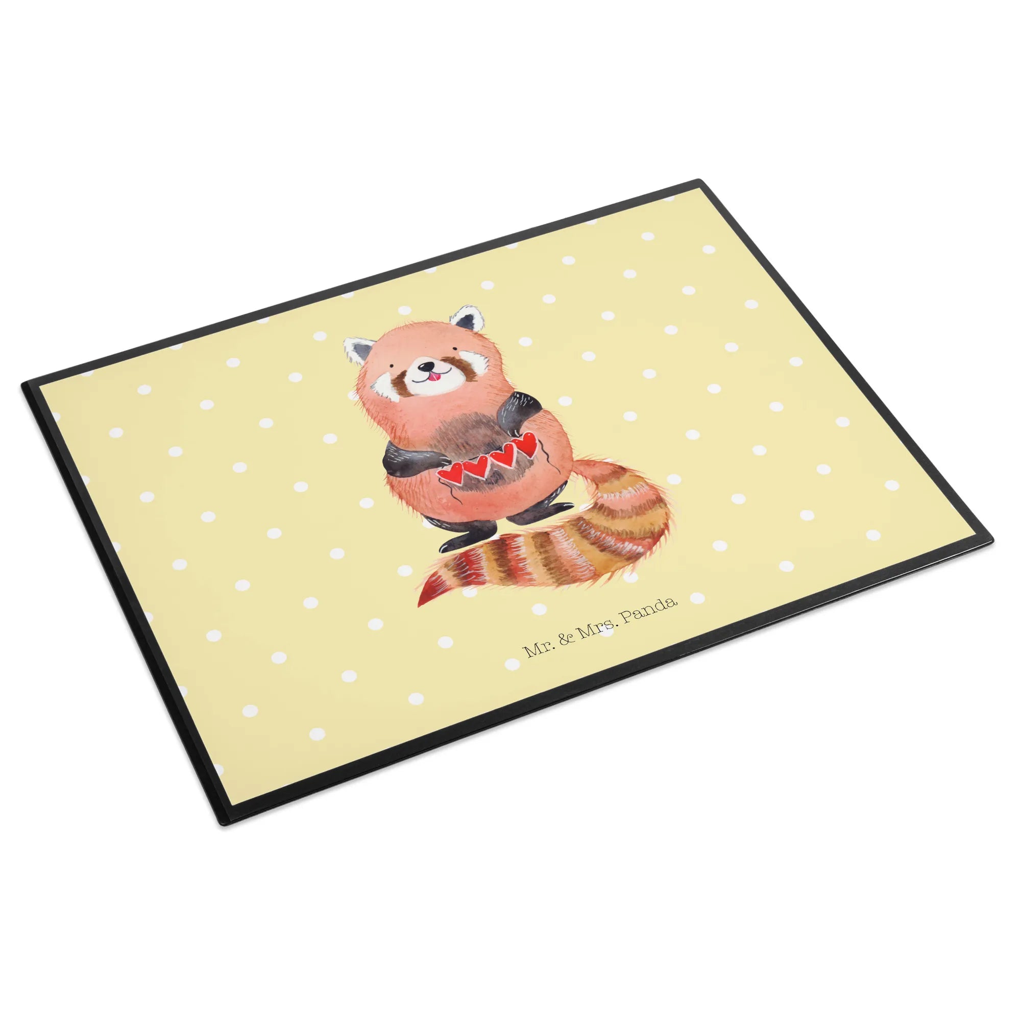 Entdecke die zauberhafte Schreibtischunterlage "Roter Panda" von Mr. & Mrs. Panda. Mit diesem farbenfrohen und detailreichen Motiv zauberst du gleich gute Stimmung in dein Büro, in die Schule oder ins Home Office! Der kuschelige Rote Panda, der liebevoll eine Herzgirlande hält, macht das Schreiben zu einem echten Vergnügen.