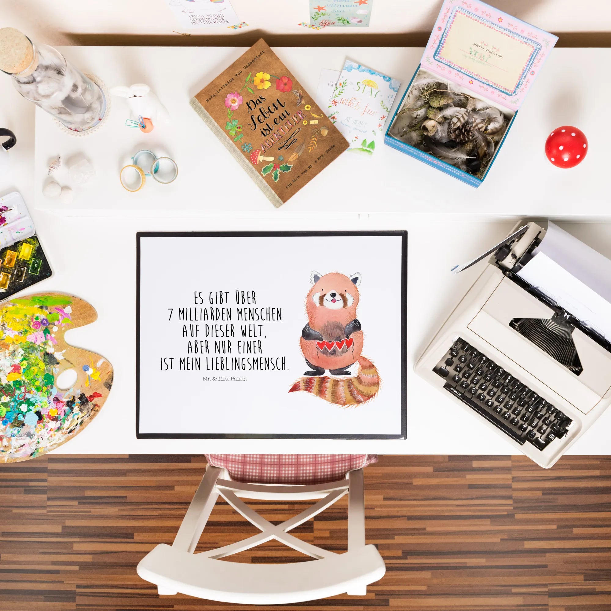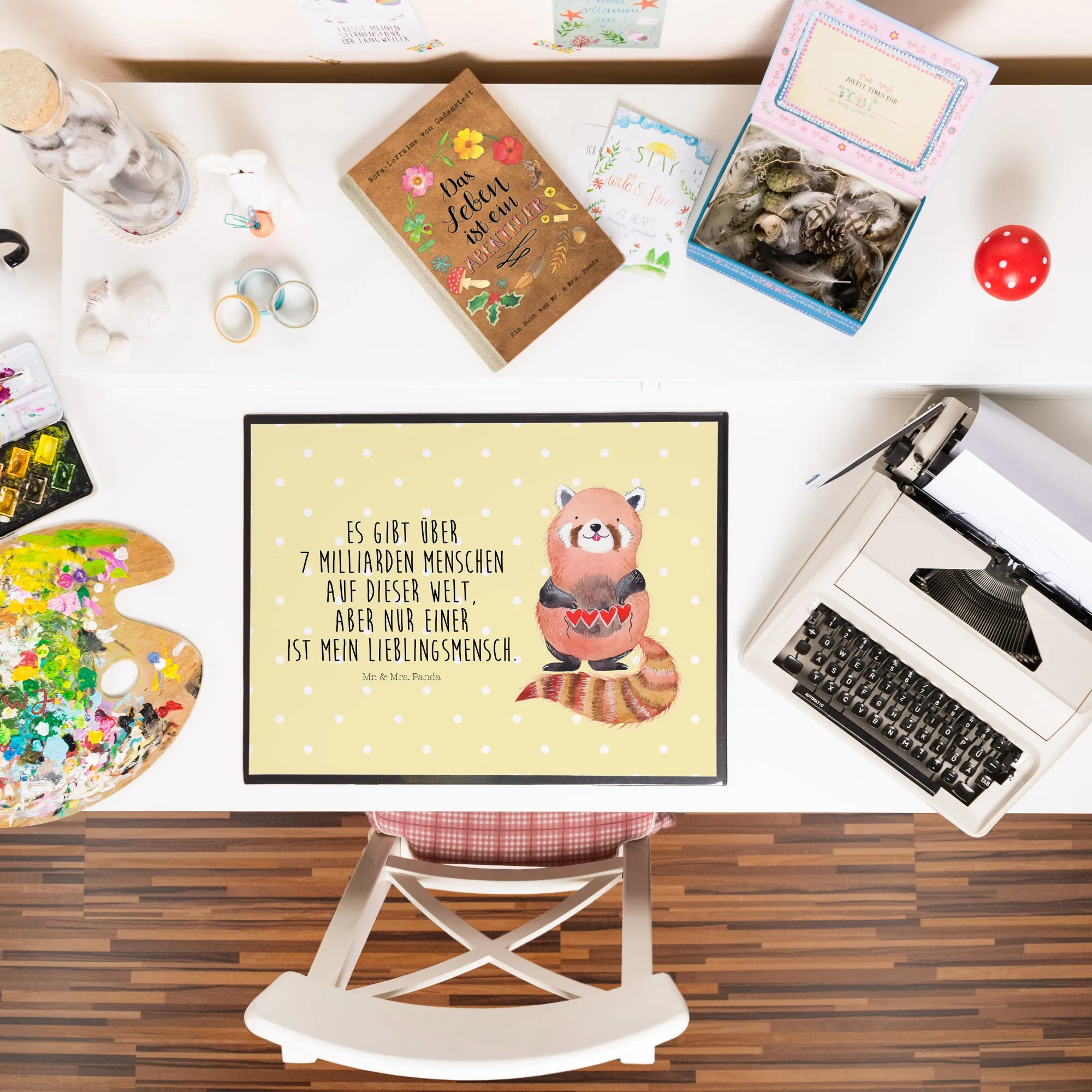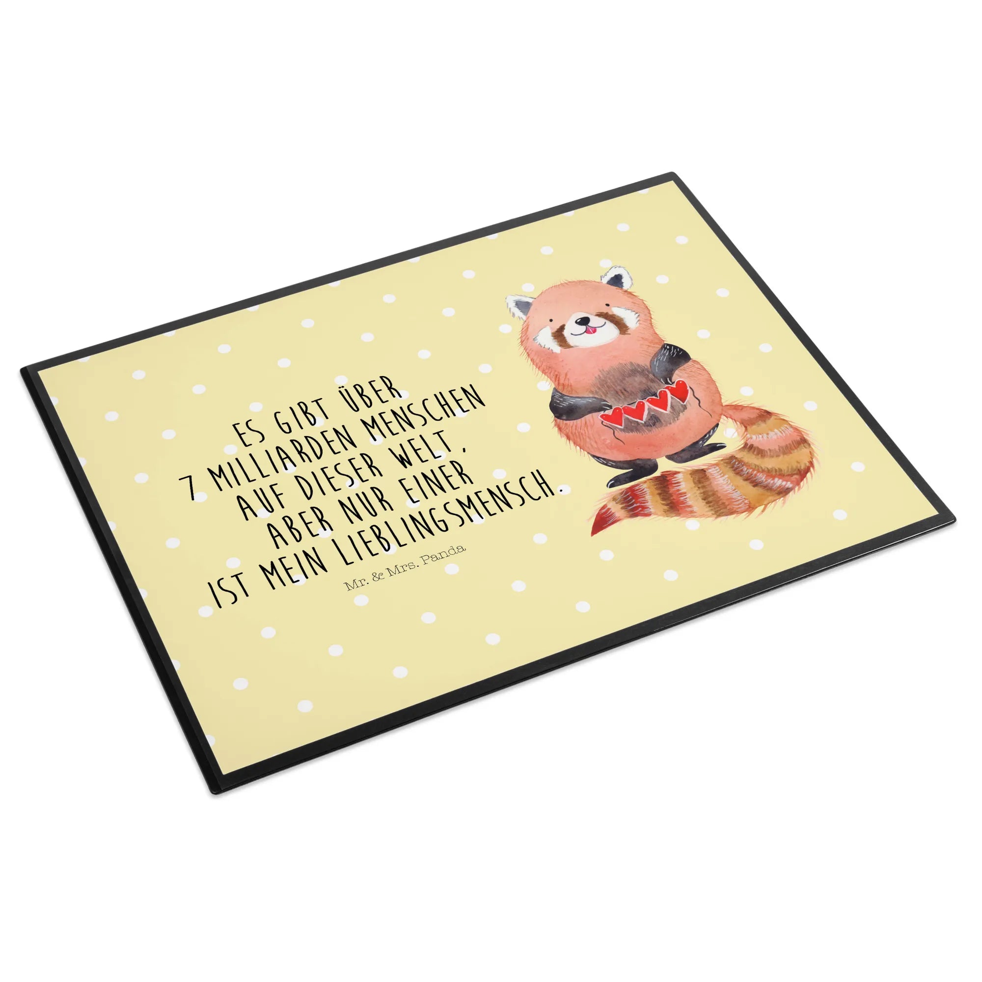 Entdecke die zauberhafte Schreibtischunterlage "Roter Panda" von Mr. & Mrs. Panda. Mit diesem farbenfrohen und detailreichen Motiv zauberst du gleich gute Stimmung in dein Büro, in die Schule oder ins Home Office! Der kuschelige Rote Panda, der liebevoll eine Herzgirlande hält, macht das Schreiben zu einem echten Vergnügen.