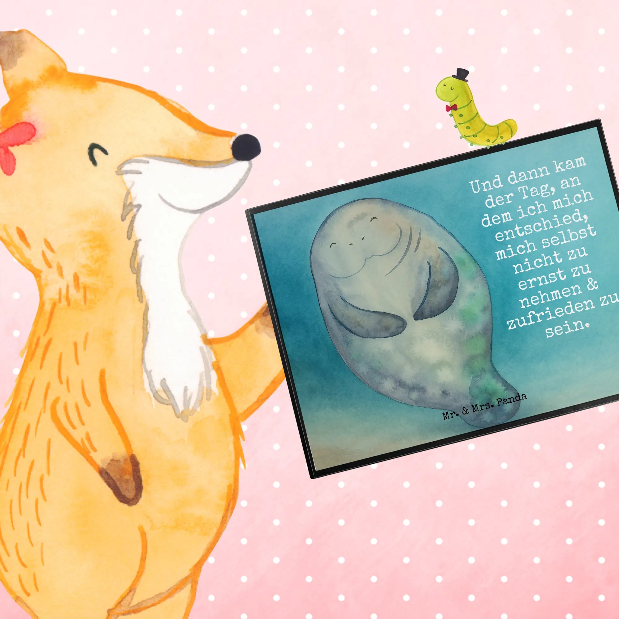 Die Seekuh strahlt pure Lebensfreude aus. Mit ihrem breiten, freundlichen Lächeln erinnert sie uns daran, dass das Leben voller schöner Momente ist. Ihre sanften Farben in Blau und Grau umhüllen uns wie eine warme Umarmung und laden dazu ein, mit Achtsamkeit im Hier und Jetzt zu leben. Diese charmante Seekuh steht für einen Neuanfang, den wir mit Selbstliebe und Respekt annehmen sollten. Der Slogan: 'Und dann kam der Tag, an dem ich mich entschied, mich selbst nicht zu ernst zu nehmen & zufrieden zu sein', sagt uns, dass Zufriedenheit der Schlüssel zu einem erfüllten Leben ist.