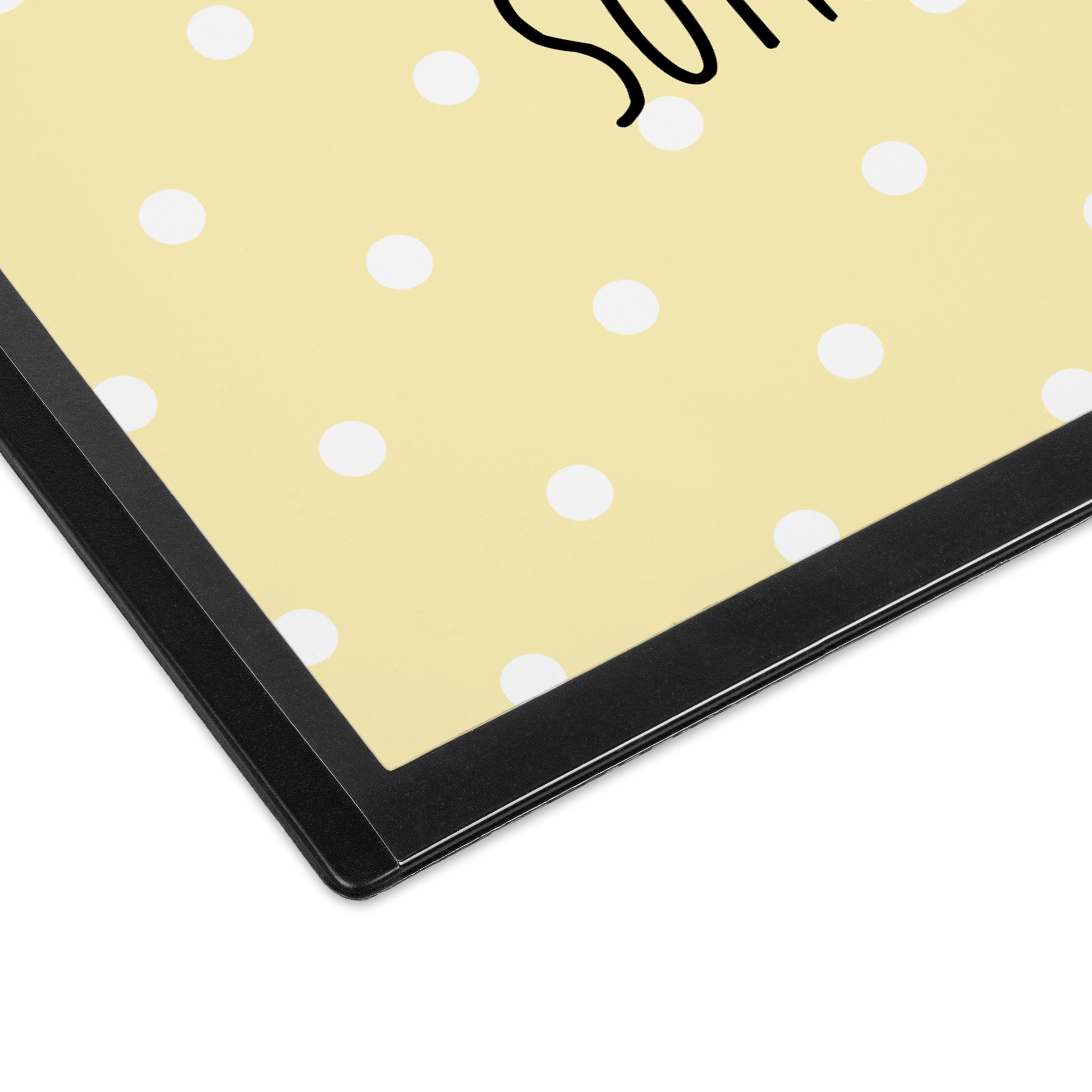 Die Schreibtischunterlage von Mr. & Mrs. Panda wird dein Arbeitsplatz neu gestalten! Sie misst 400 mm x 530 mm und besteht aus erstklassigem Zellkautschuk, der in Deutschland hergestellt wird. Sie ist mit fröhlichen Sprüchen und charmanten Mustern bedruckt, die gute Laune bei der Arbeit bringen. Diese matte Auflage schützt deinen Schreibtisch nicht nur vor Kratzern und Flüssigkeiten, sondern sorgt auch für ein angenehmes Schreibgefühl. Ob im Homeoffice, im Klassenzimmer oder im Büro – sie ist extrem vielseitig einsetzbar. Ein echtes Highlight ist die Einlegelasche, mit der du das Motiv schnell und unkompliziert wechseln kannst! Sie ist widerstandsfähig und rutschfest, was sie zu einem perfekten Begleiter für den Alltag macht. Die Reinigung? Ganz einfach, sie kann ohne Probleme mit einem feuchten Tuch abgewischt werden! Hol dir diese praktische und schöne Schreibtischunterlage nach Hause!