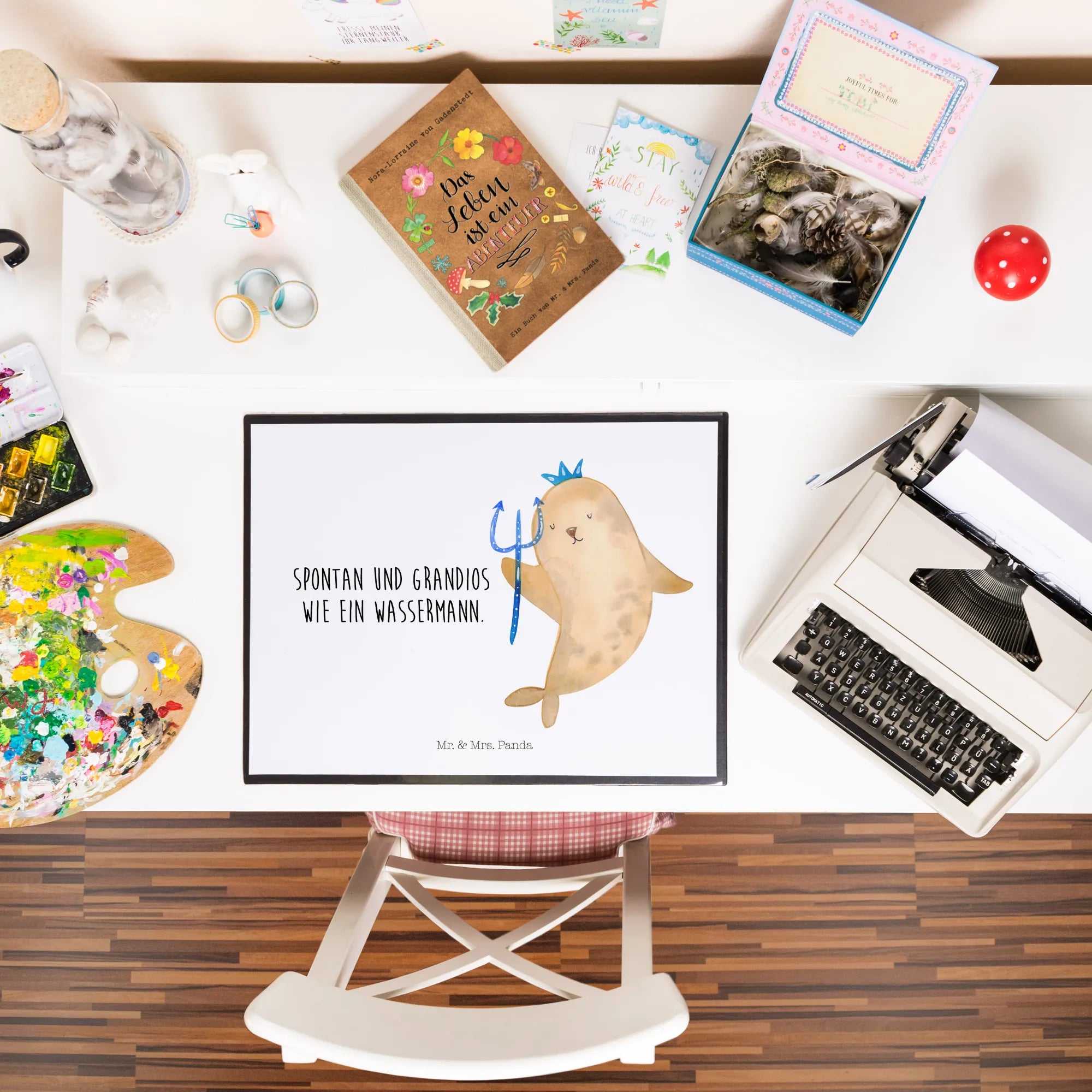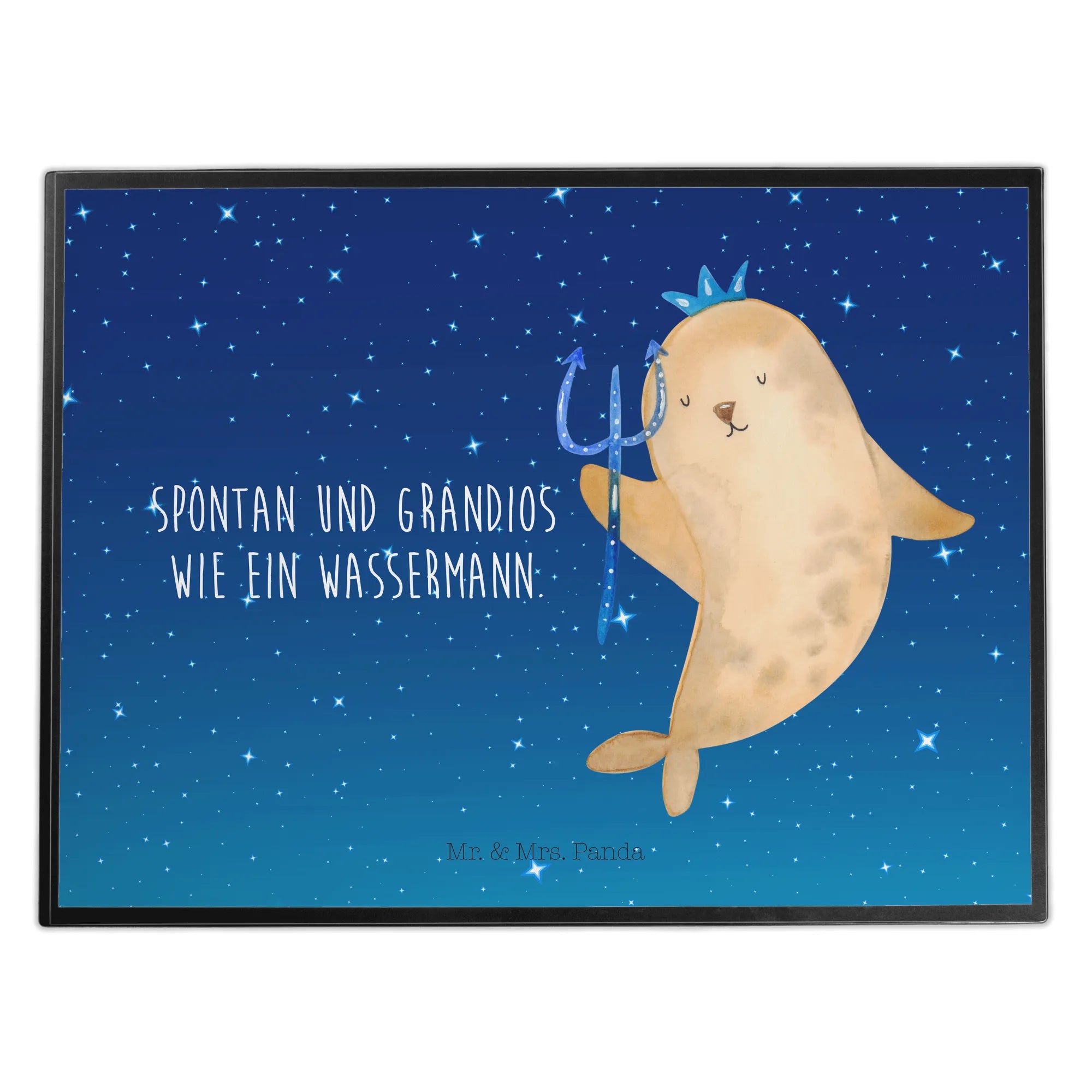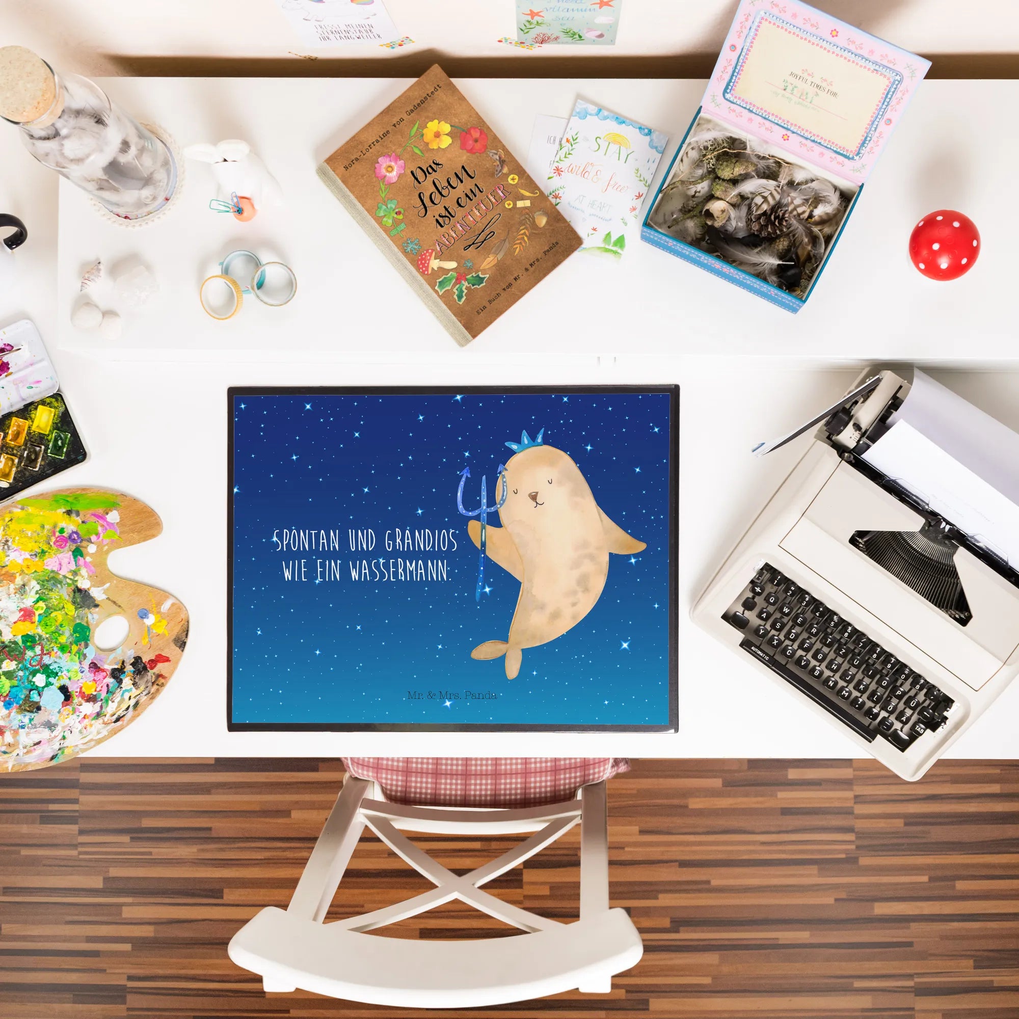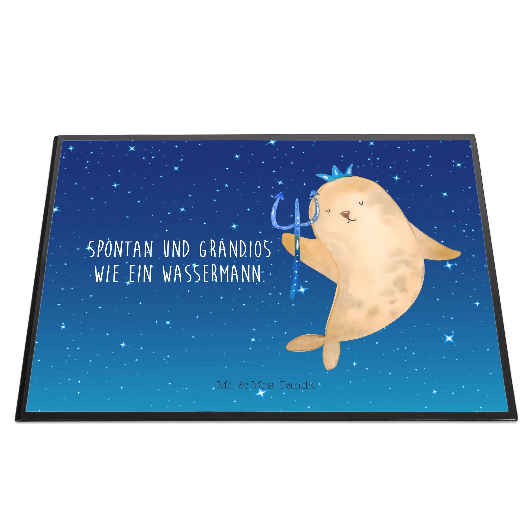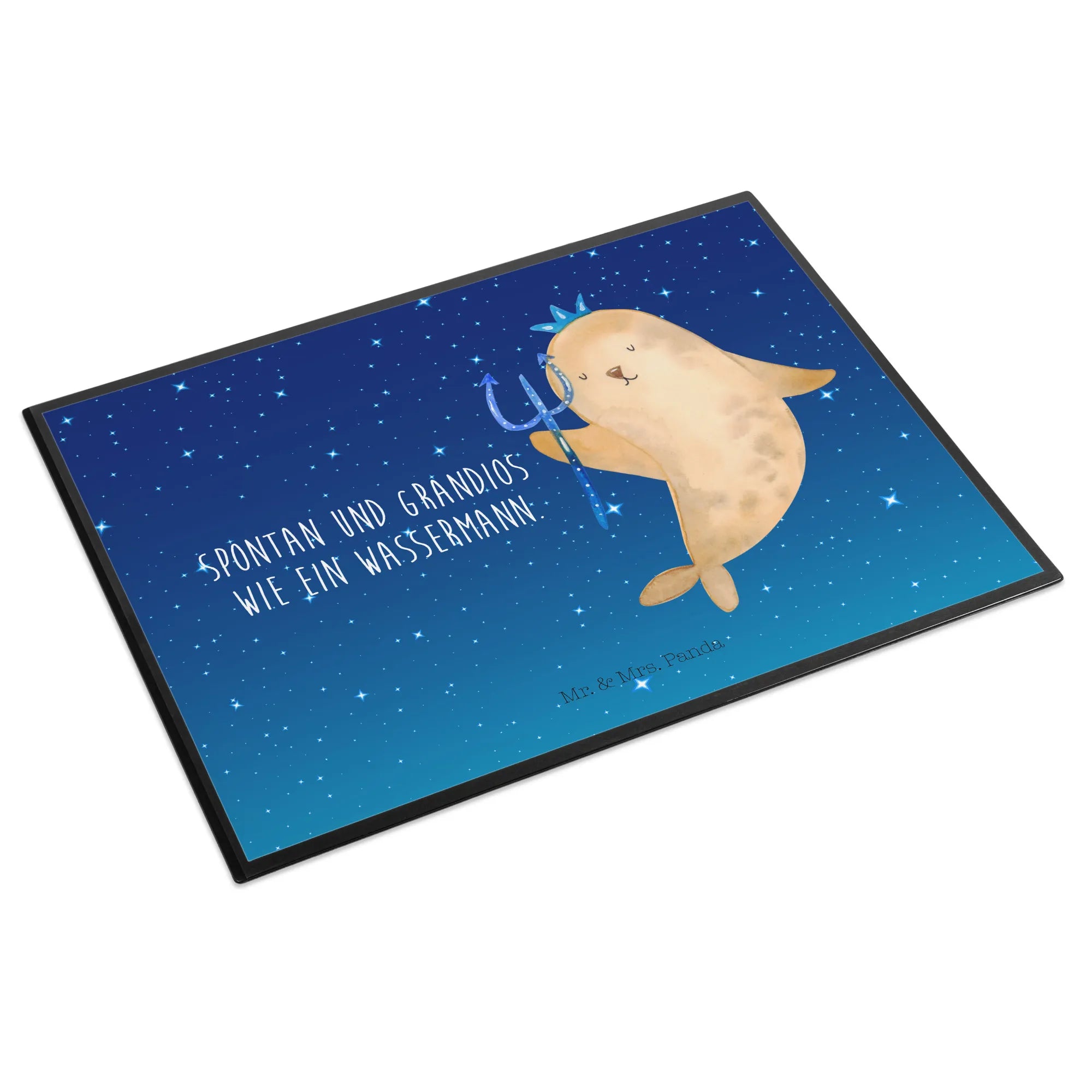 Entdecke die einzigartige Schreibtischunterlage mit dem Motiv "Sternzeichen Wassermann" von Mr. & Mrs. Panda! Diese wunderschöne und stilvolle Schreibtischauflage sorgt nicht nur für einen Schutz deiner Arbeitsfläche, sondern bringt auch ein fröhliches Flair in jedes Büro, Home Office oder Klassenzimmer.