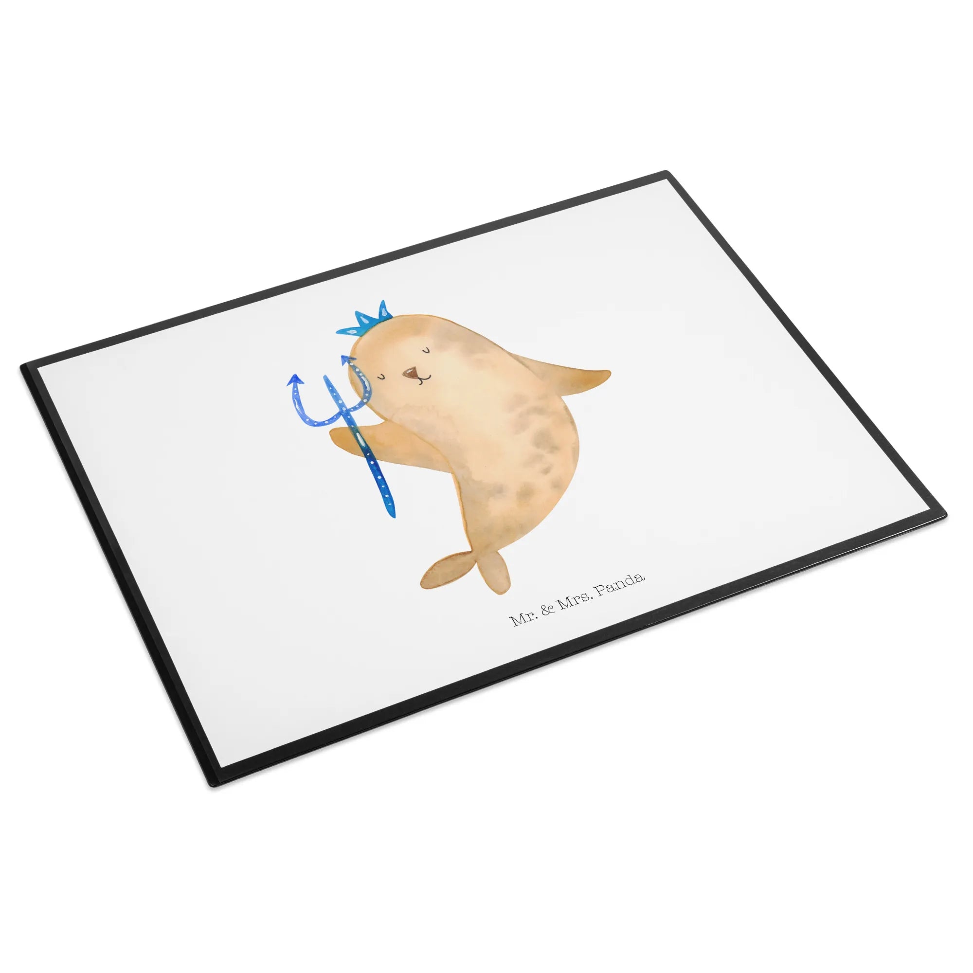 Mit den Maßen 400 mm x 530 mm passt sie auf jeden Schreibtisch und bietet ausreichend Platz für Notizen, Schreibutensilien und mehr. Die robusten und rutschfesten Materialien aus hochwertigem Zellkautschuk 'Made in Germany' garantieren ein angenehmes Schreibgefühl. Das besondere Motiv zeigt eine süße Robbe mit einer Krone und einem Zepter, begleitet von dem witzigen Slogan: "Spontan und grandios wie ein Wassermann."