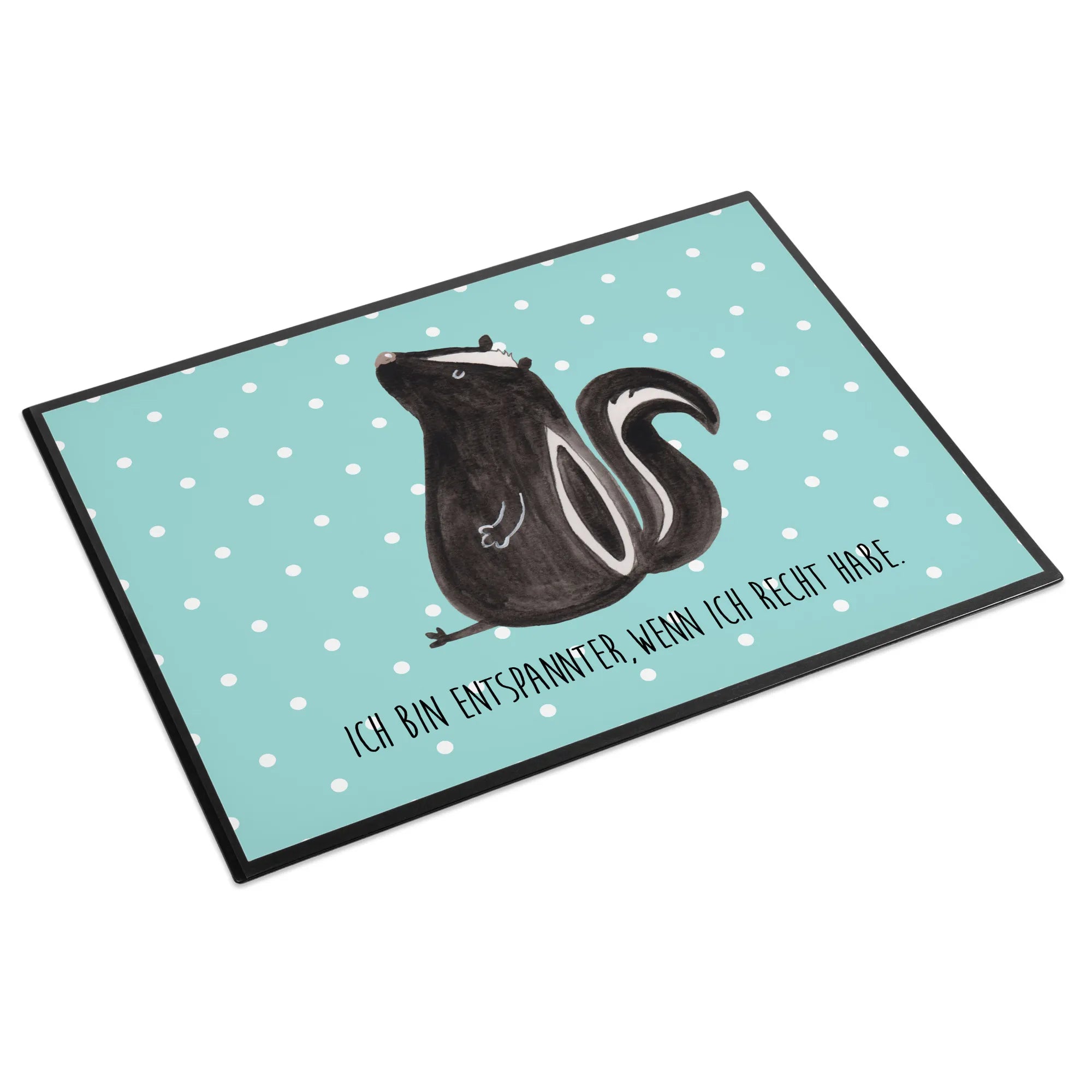 Entdecke die zauberhafte Schreibtischunterlage mit dem süßen Motiv des sitzenden Stinktiers aus der Stinktier - Kollektion von Mr. & Mrs. Panda!